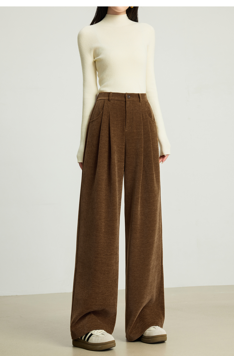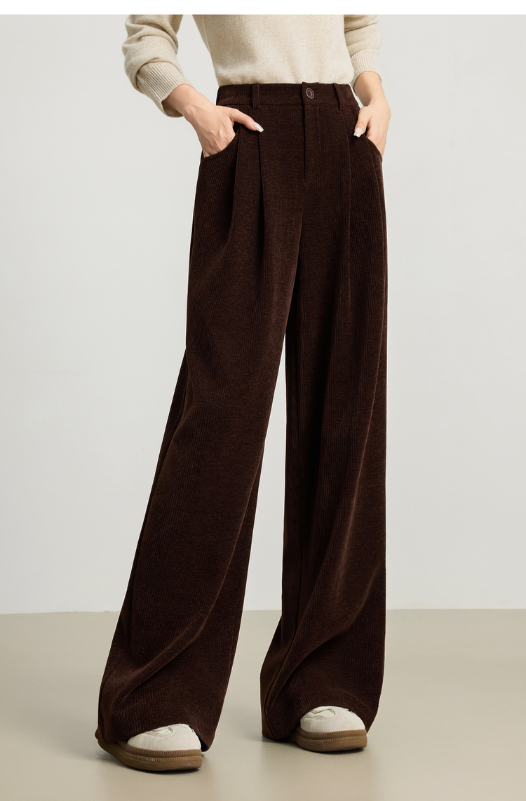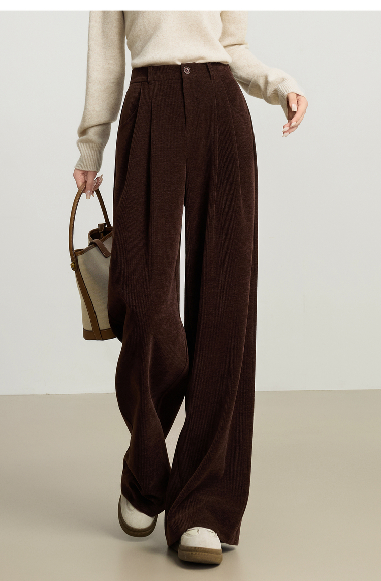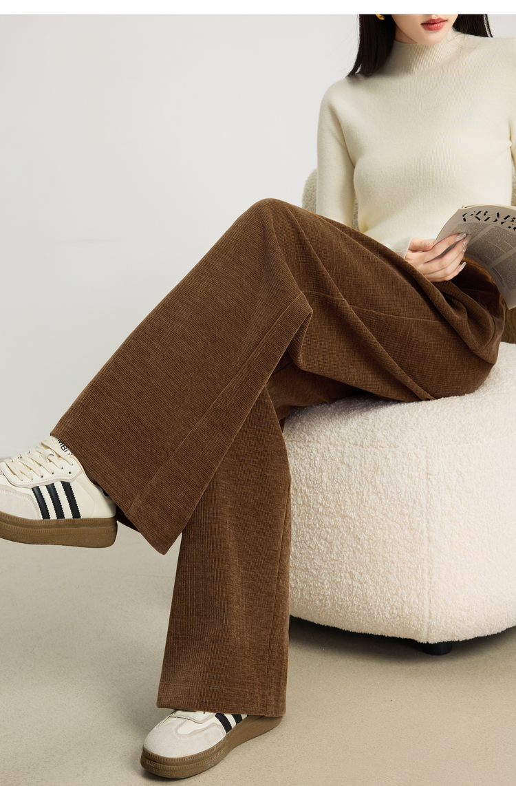 【10/23新品】熙世界【雪尼尔灯芯绒裤】老钱风休闲阔腿裤女冬季厚款直筒长裤子