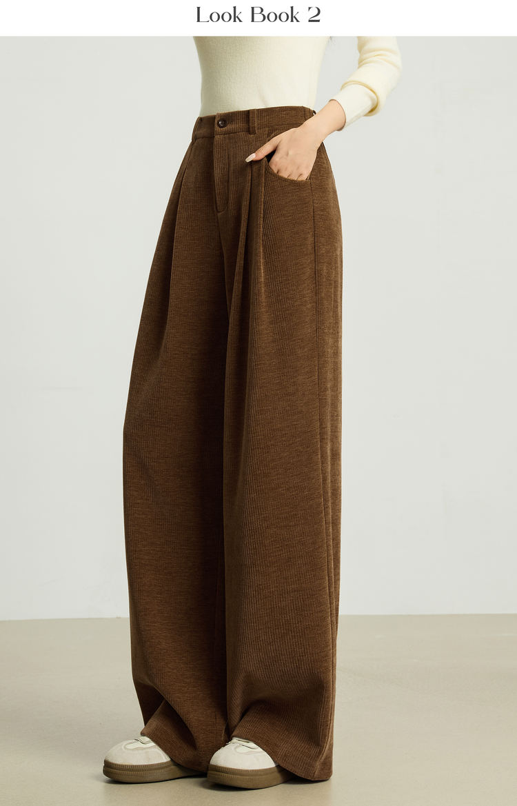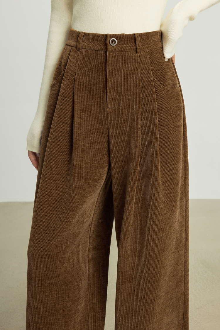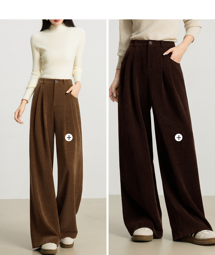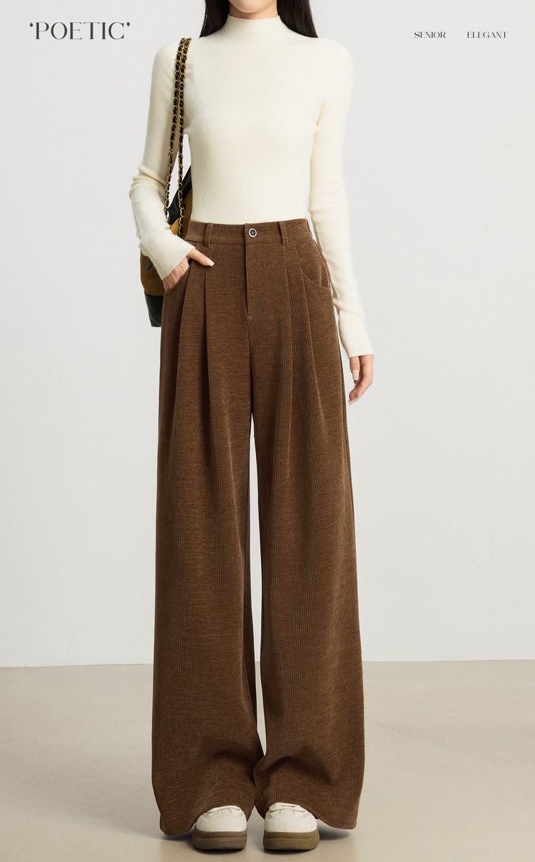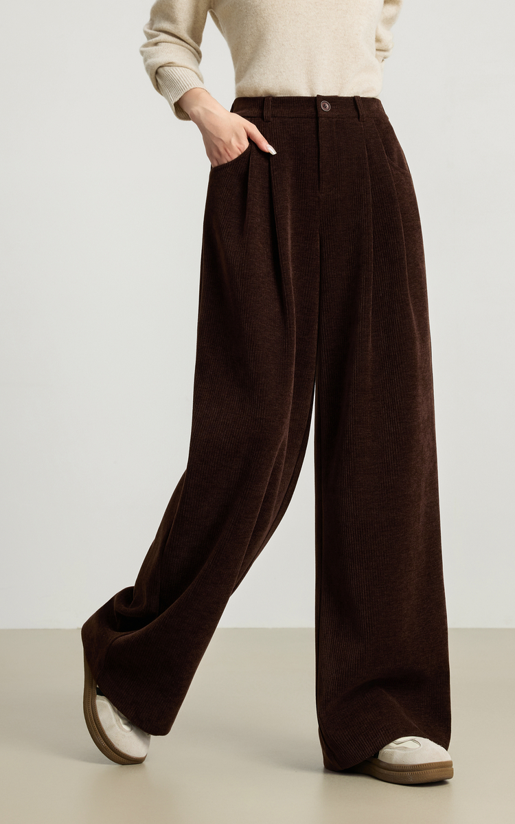 【10/23新品】熙世界【雪尼尔灯芯绒裤】老钱风休闲阔腿裤女冬季厚款直筒长裤子