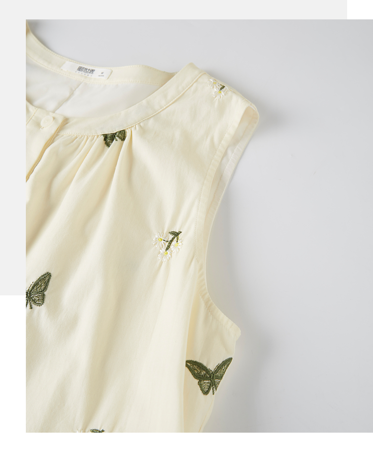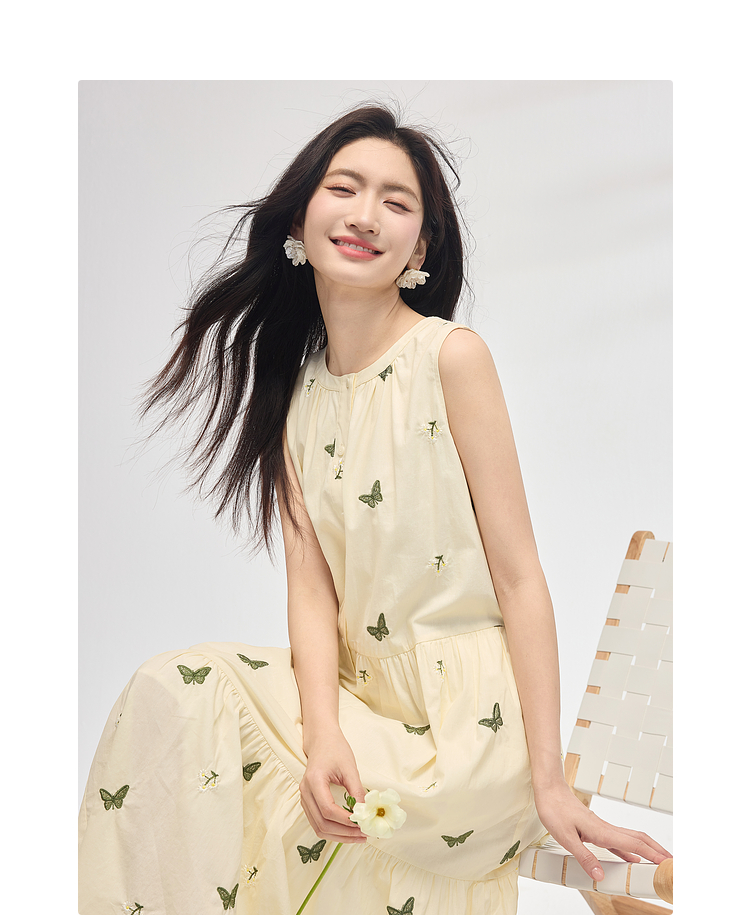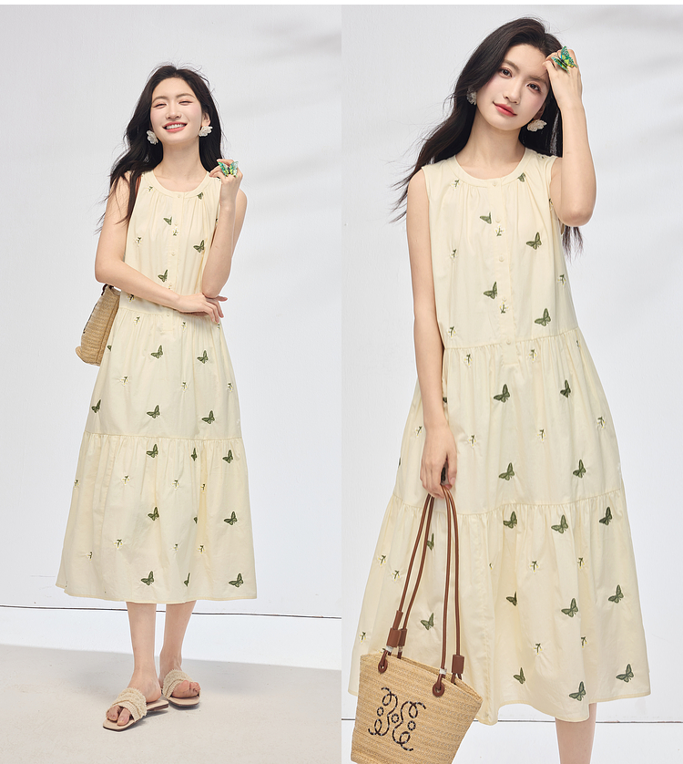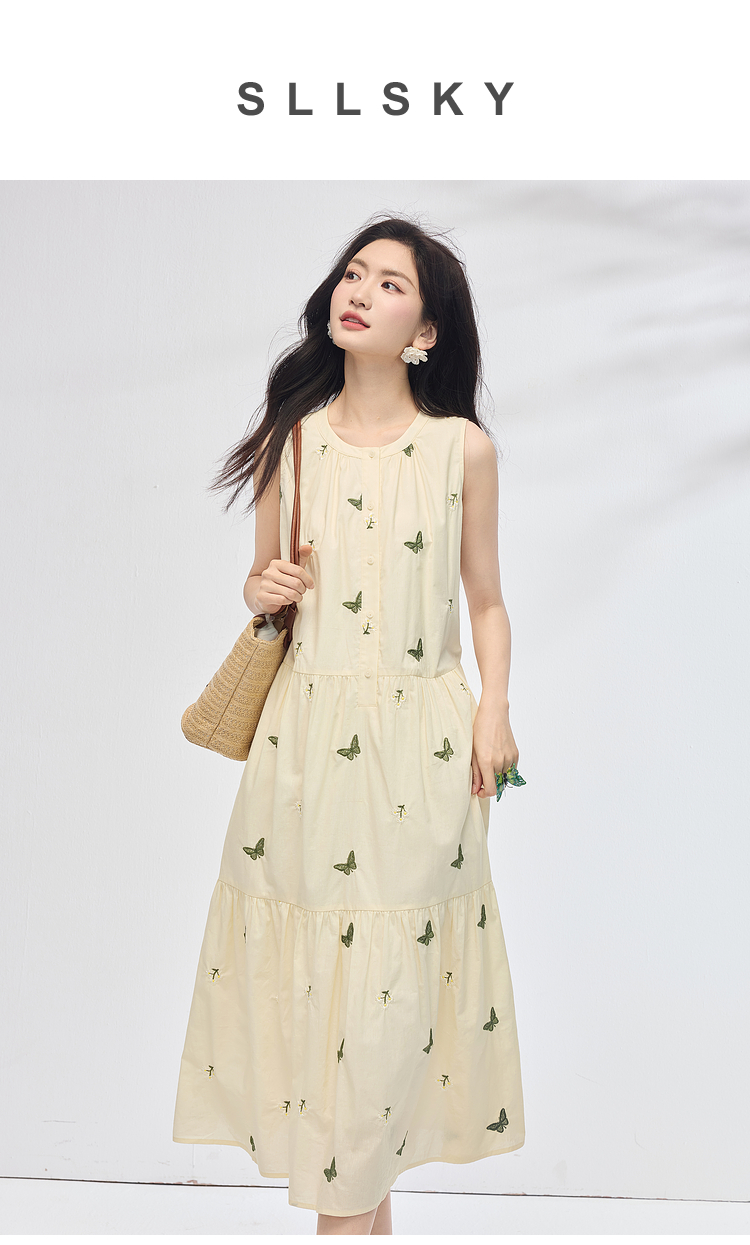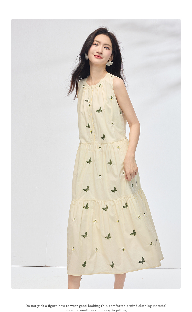 【专属特价】熙世界蝴蝶刺绣无袖连衣裙女夏2025新款优雅气质圆领a字背心长裙