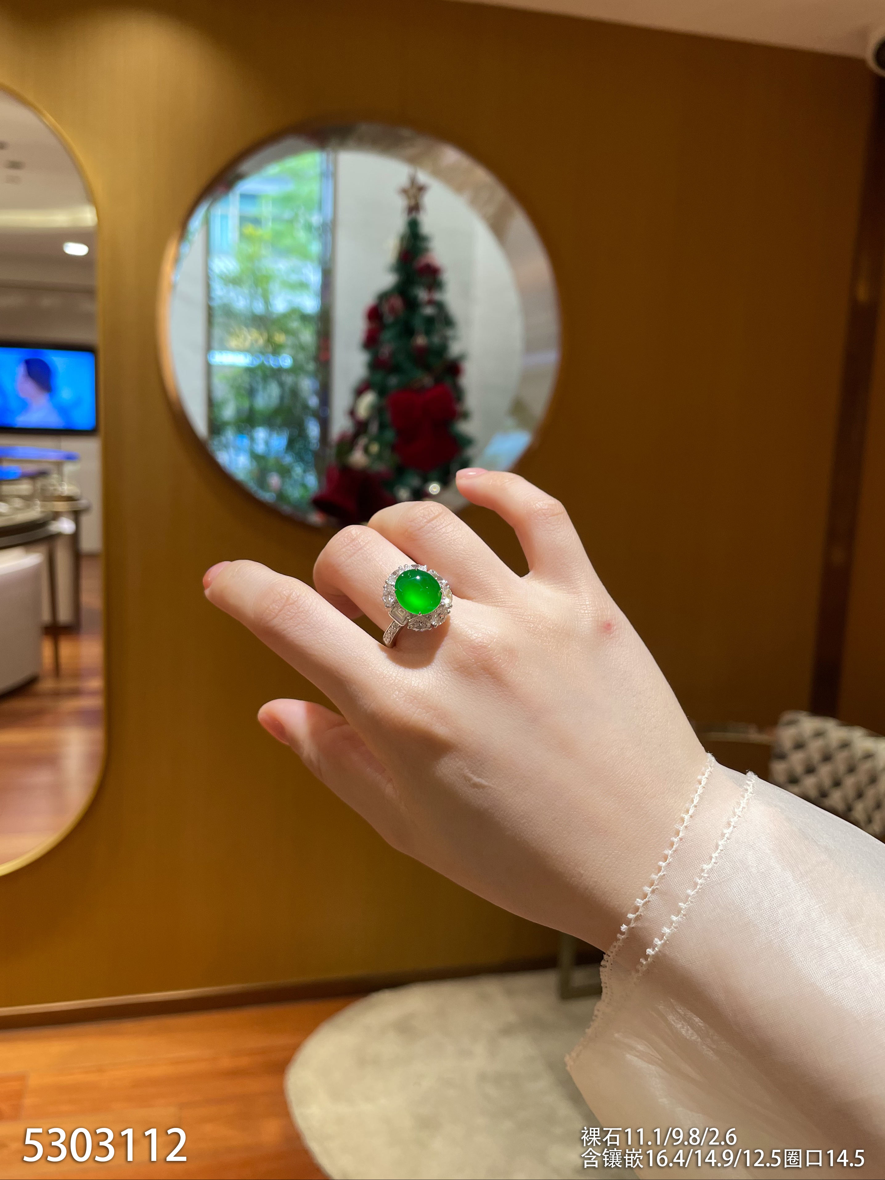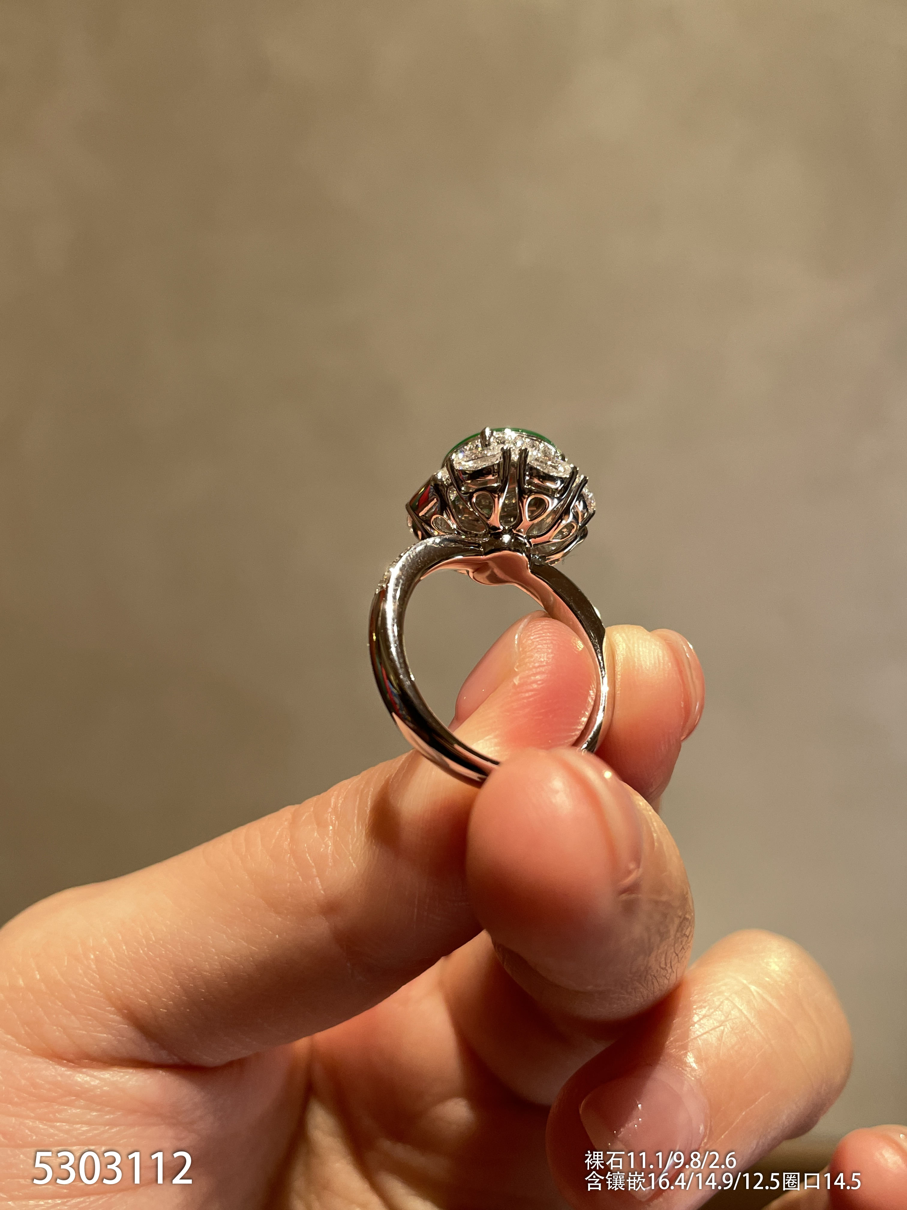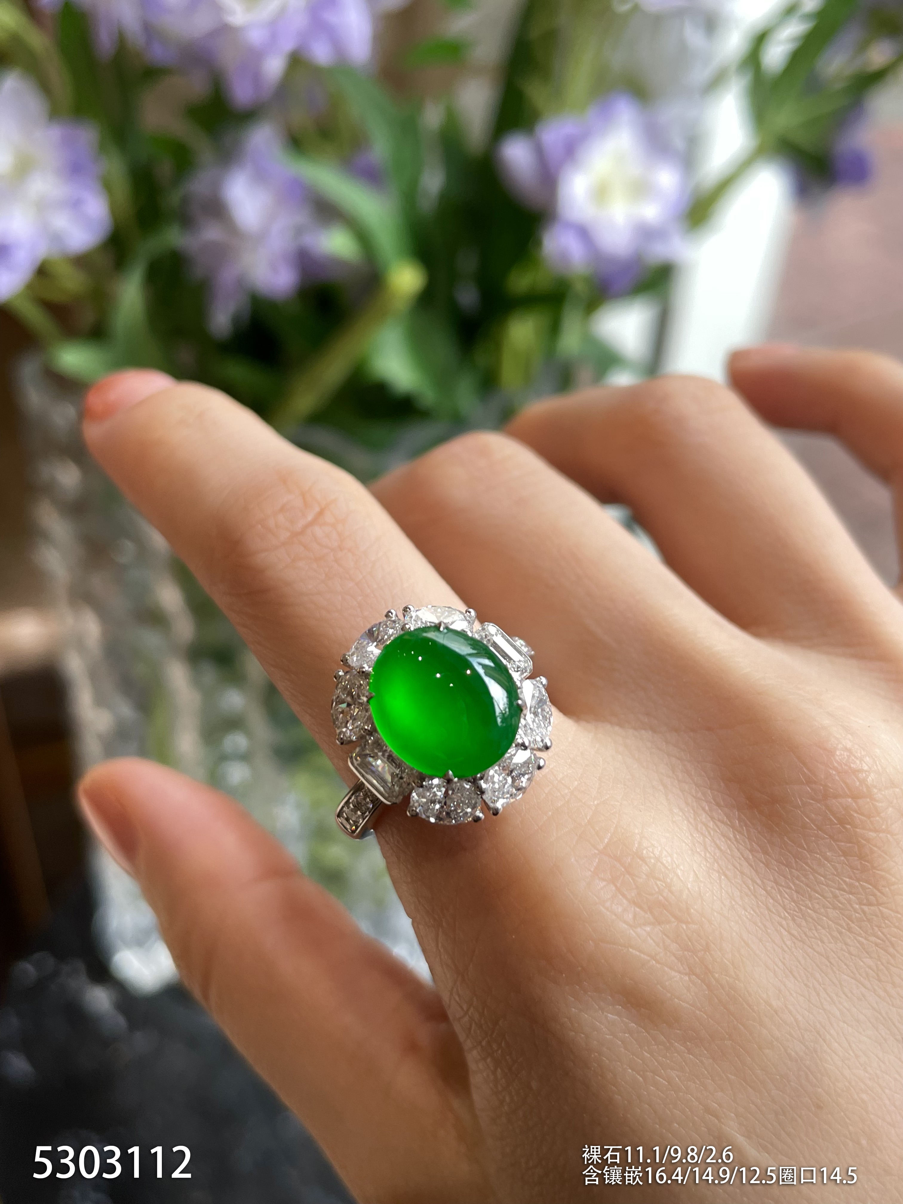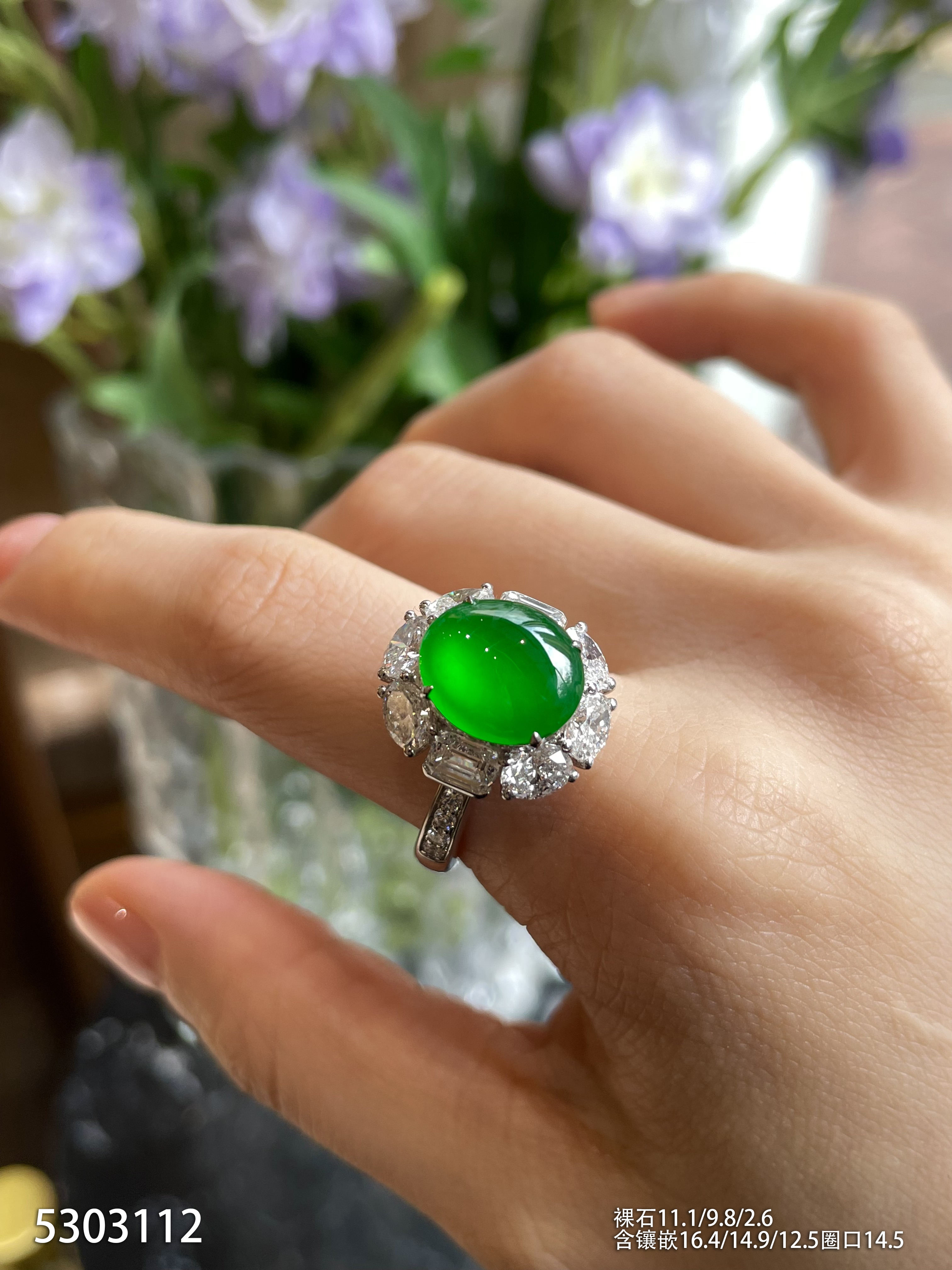 120-1232908,玻璃种木那艳绿蛋面戒指,具体价格微信咨询