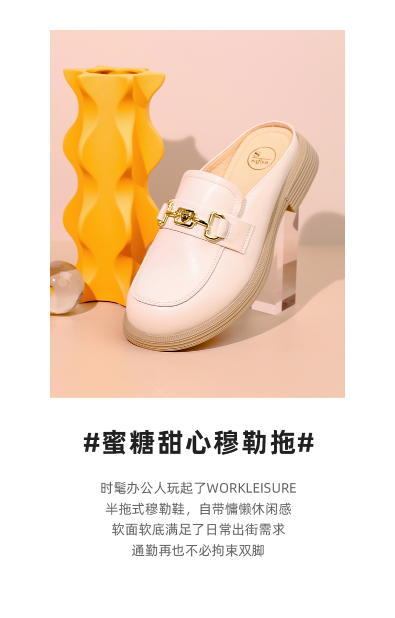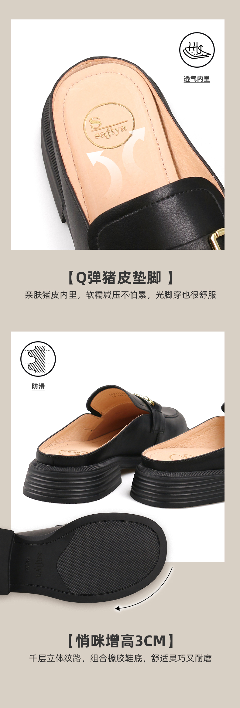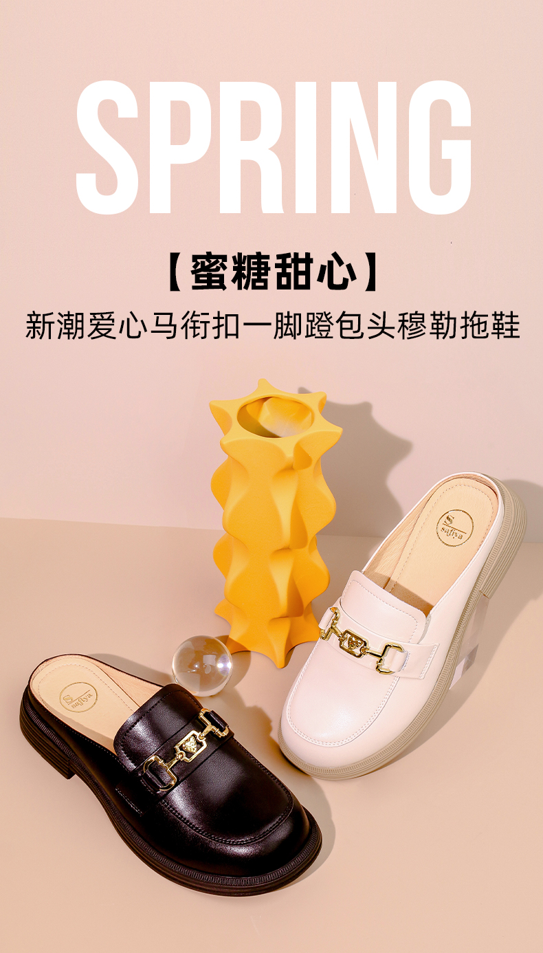 Safiya/索菲娅 新潮爱心马衔扣2023年春季新款一脚蹬包头穆勒拖鞋 SF31110029