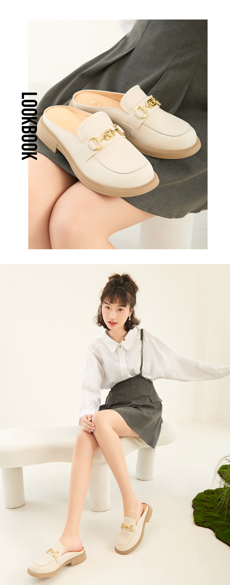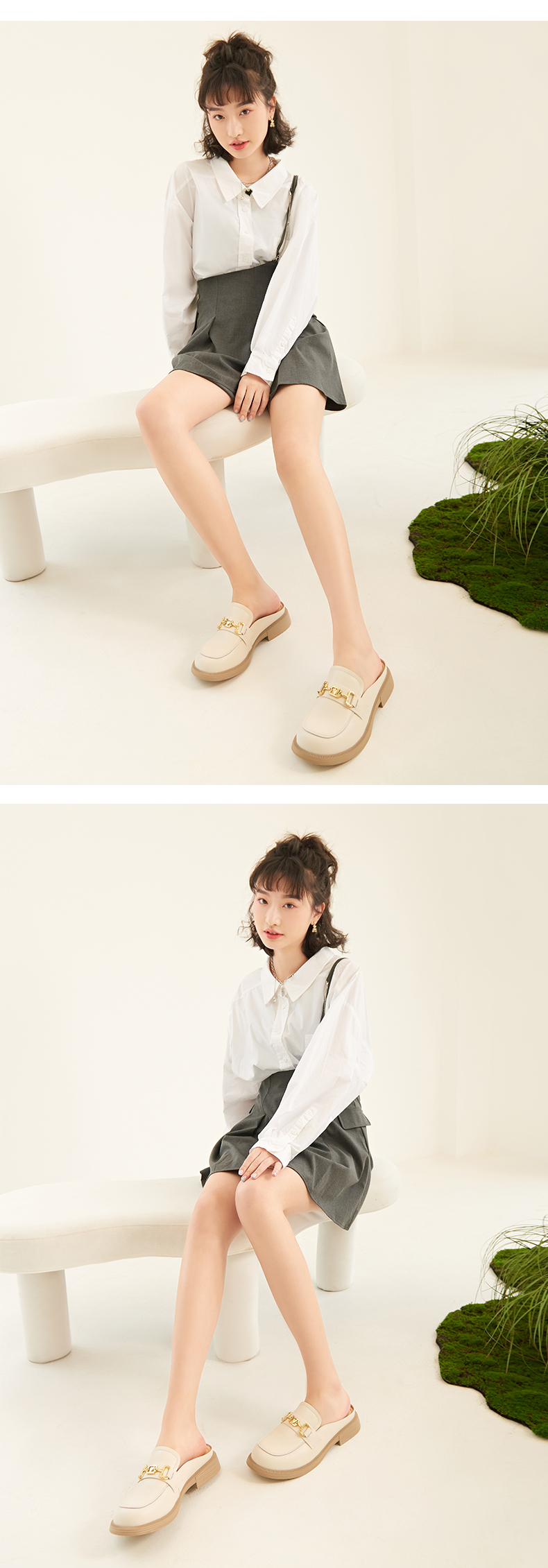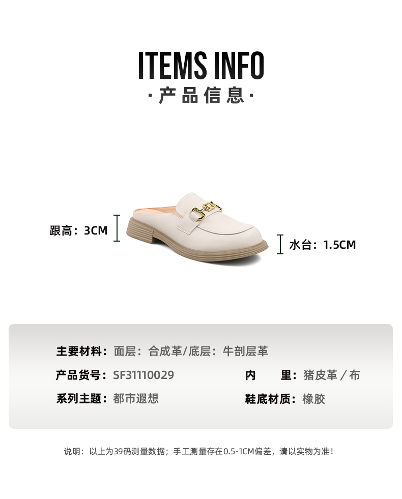 Safiya/索菲娅 新潮爱心马衔扣2023年春季新款一脚蹬包头穆勒拖鞋 SF31110029
