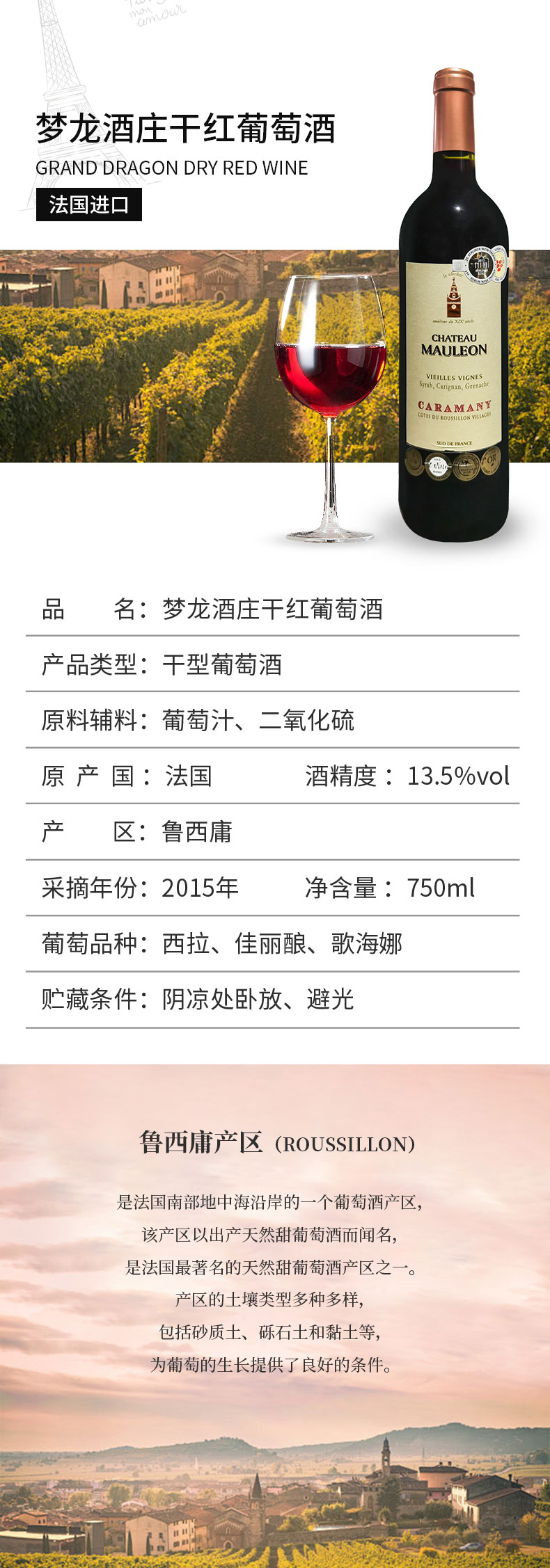 法国进口梦龙酒庄干红葡萄酒750ml