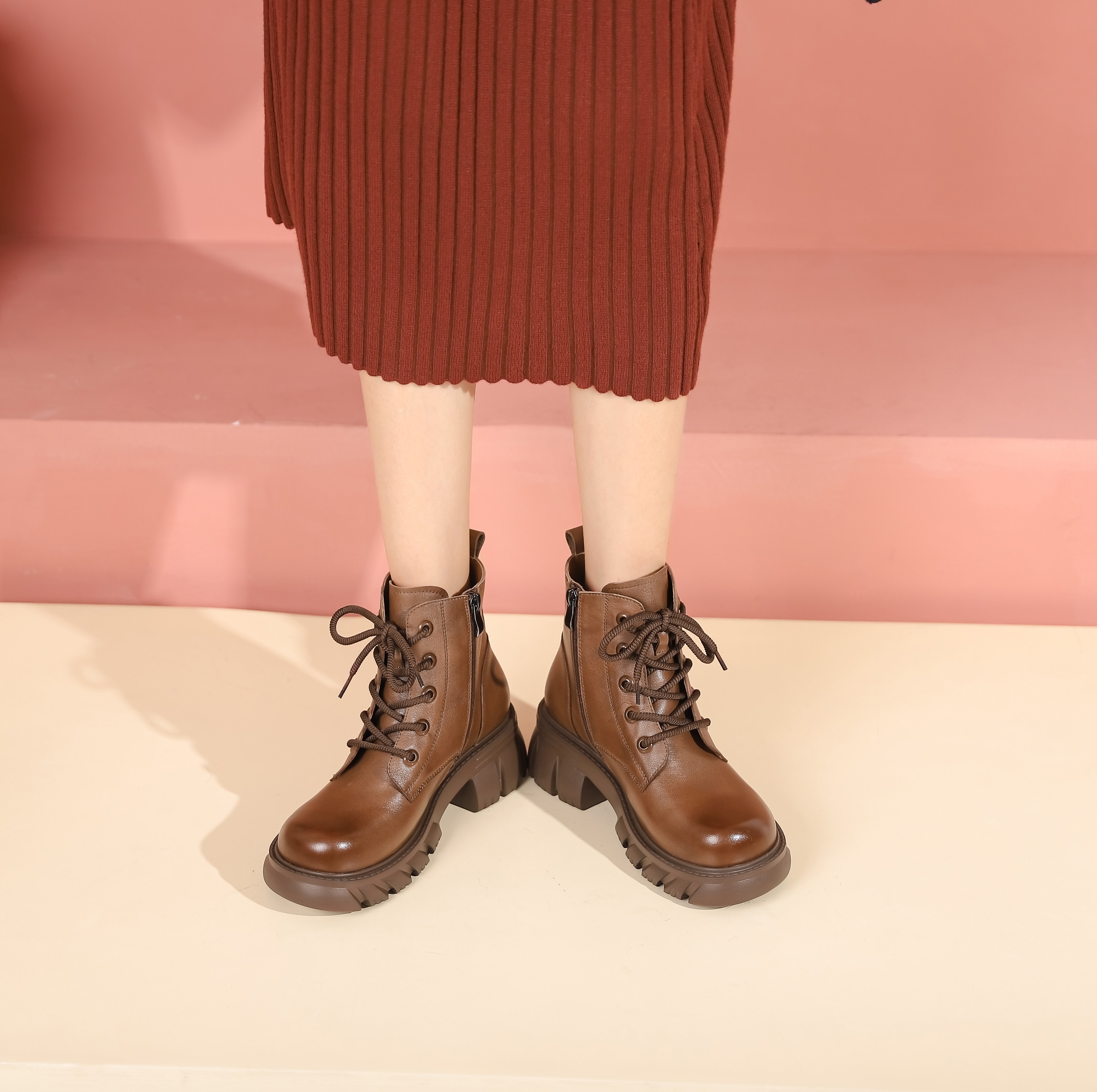 西村名物冬季新款超轻防滑厚底增高系带马丁靴T22DS44981
