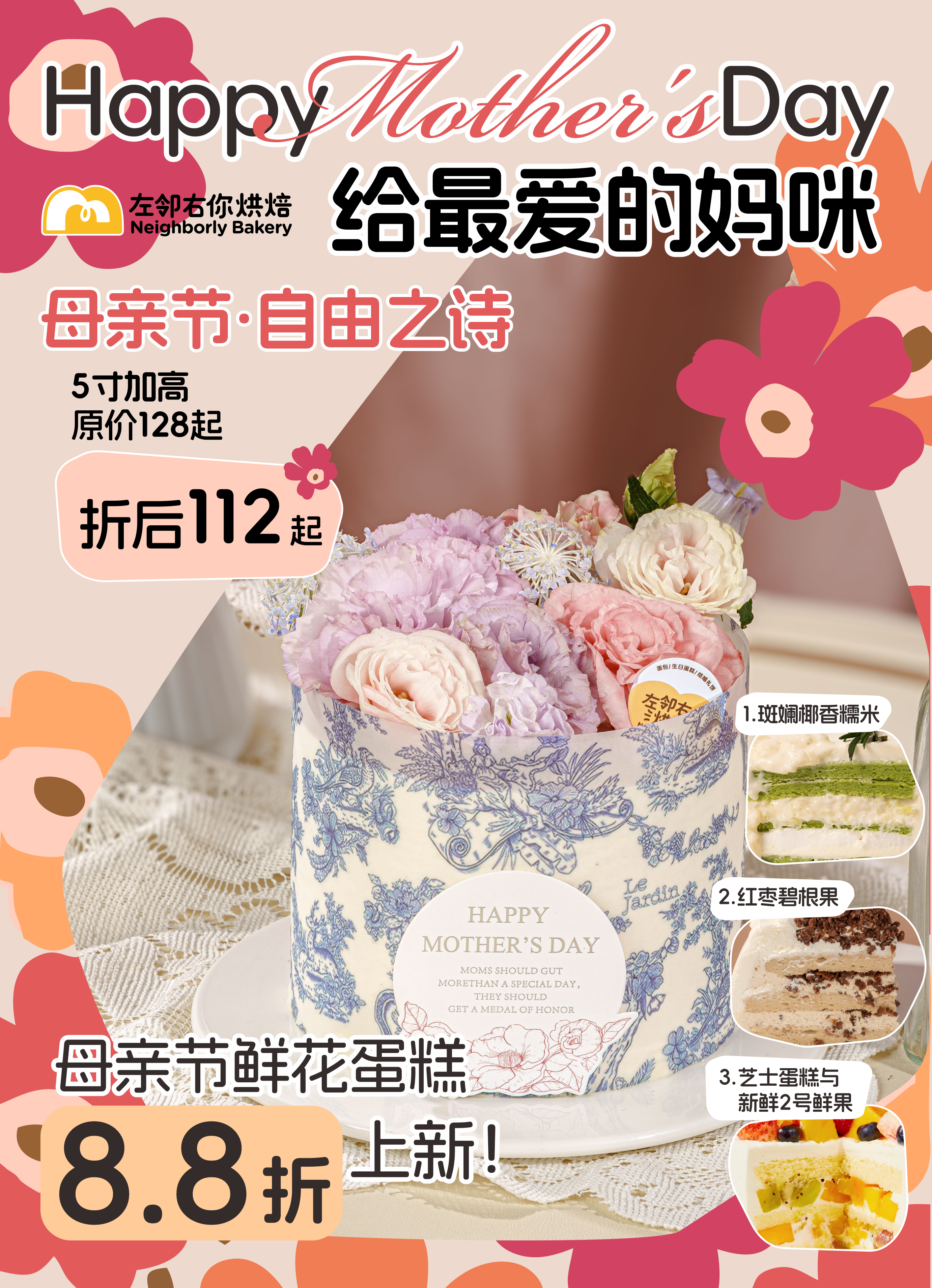 【下架勿动】母亲节·自由之诗 3种口味 鲜花蛋糕