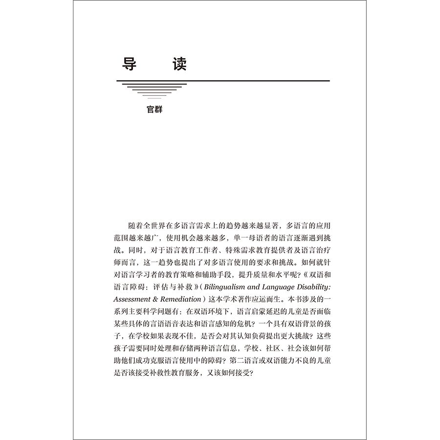 双语和语言障碍:评估与补救 新锐经典的语言学力作