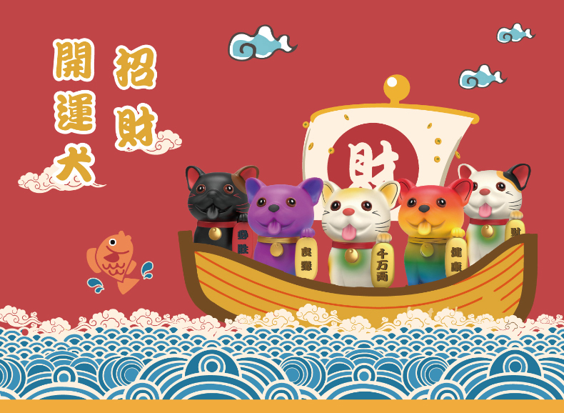 巧克力熊招财开运犬盲盒DG-1868玩具礼物潮流桌面摆件手办