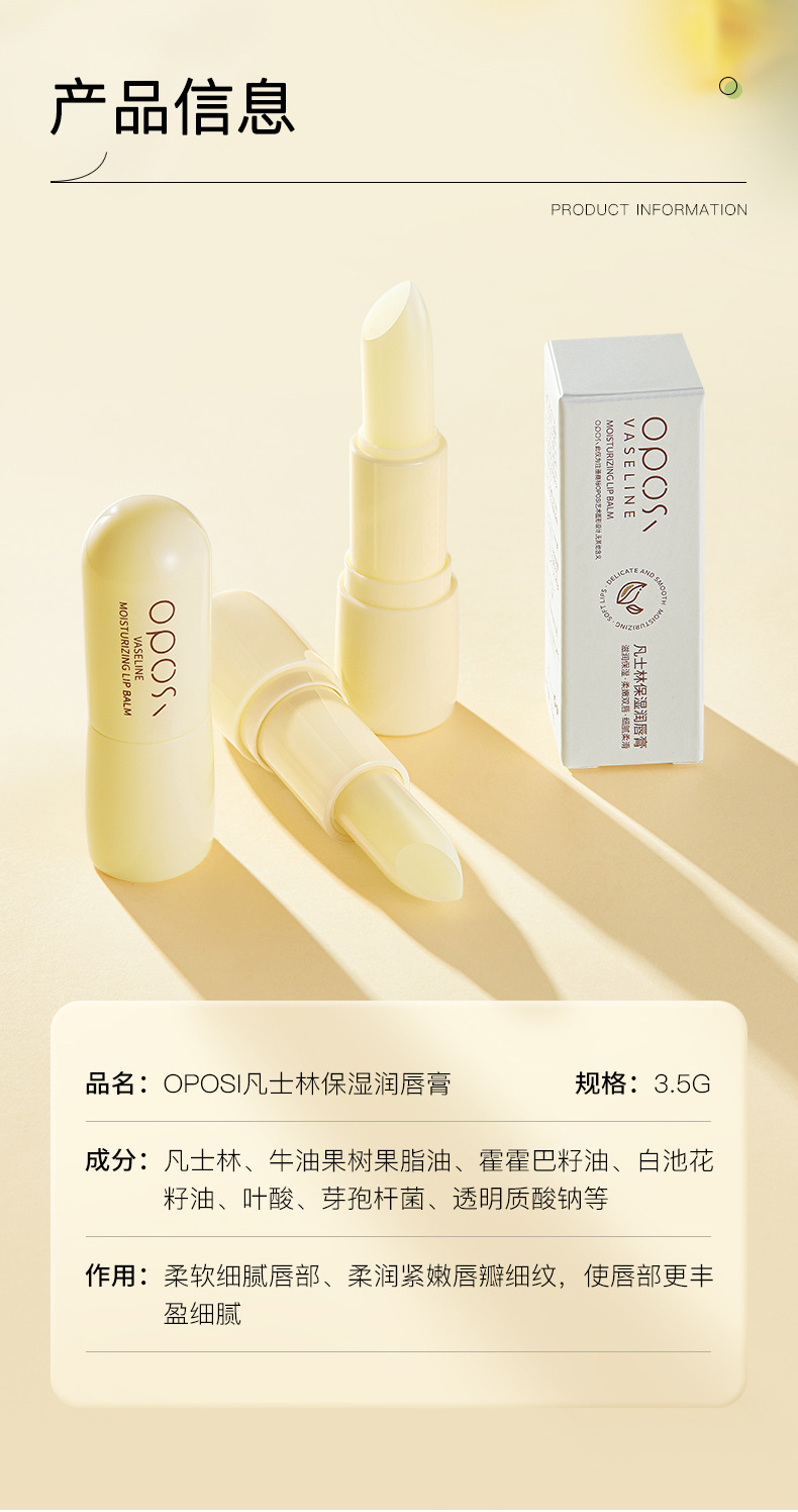 「买二送一!OPOSI凡士林保湿润唇膏」一抹水润润唇膏3.5g 滋润打底干燥破皮 去死皮淡唇纹唇裂唇膏美妆