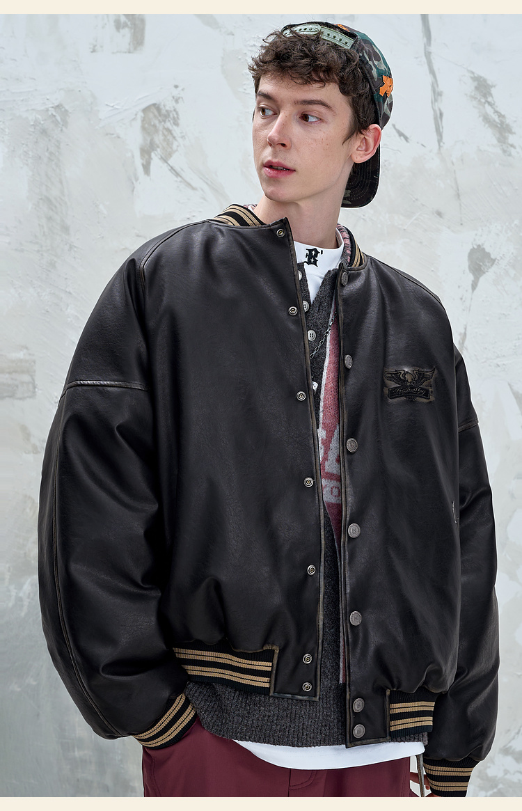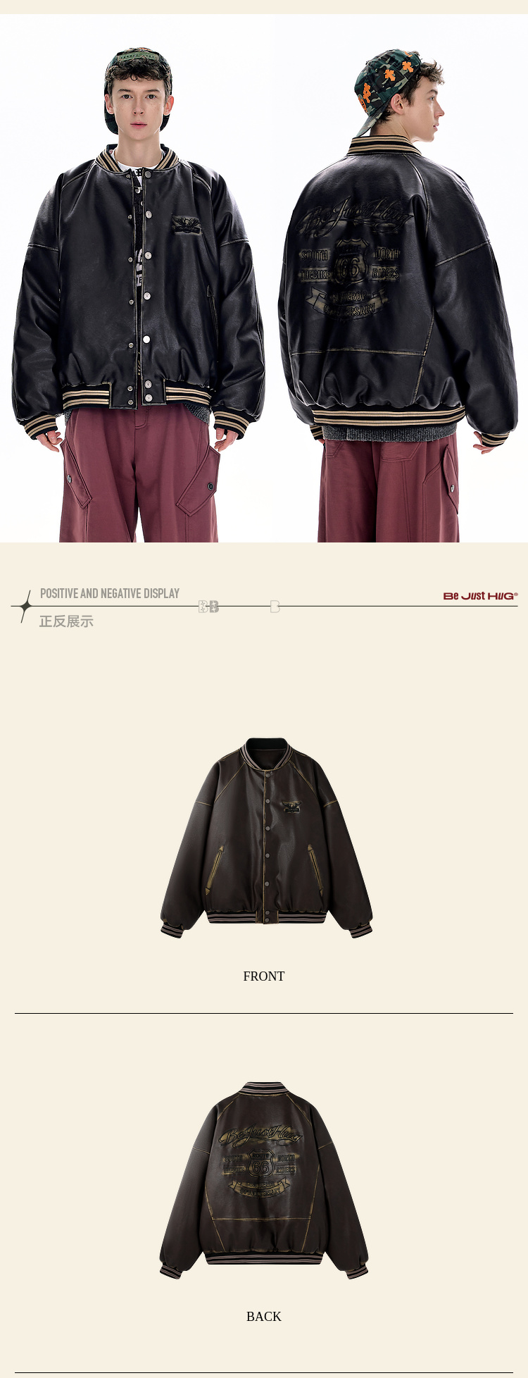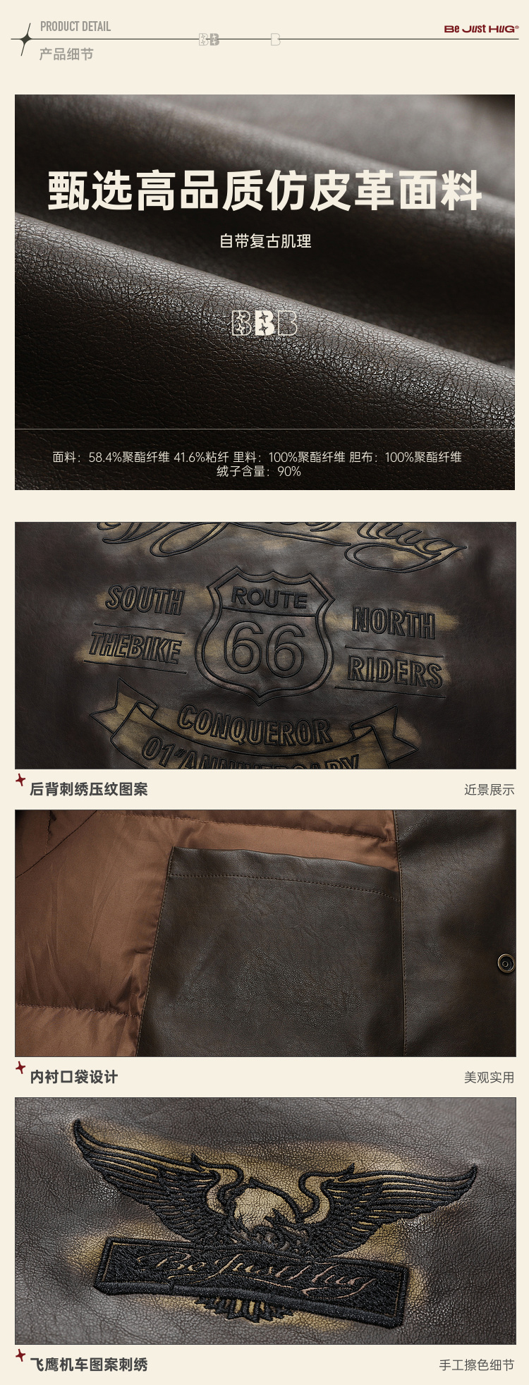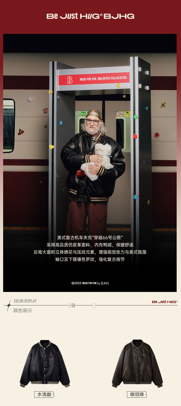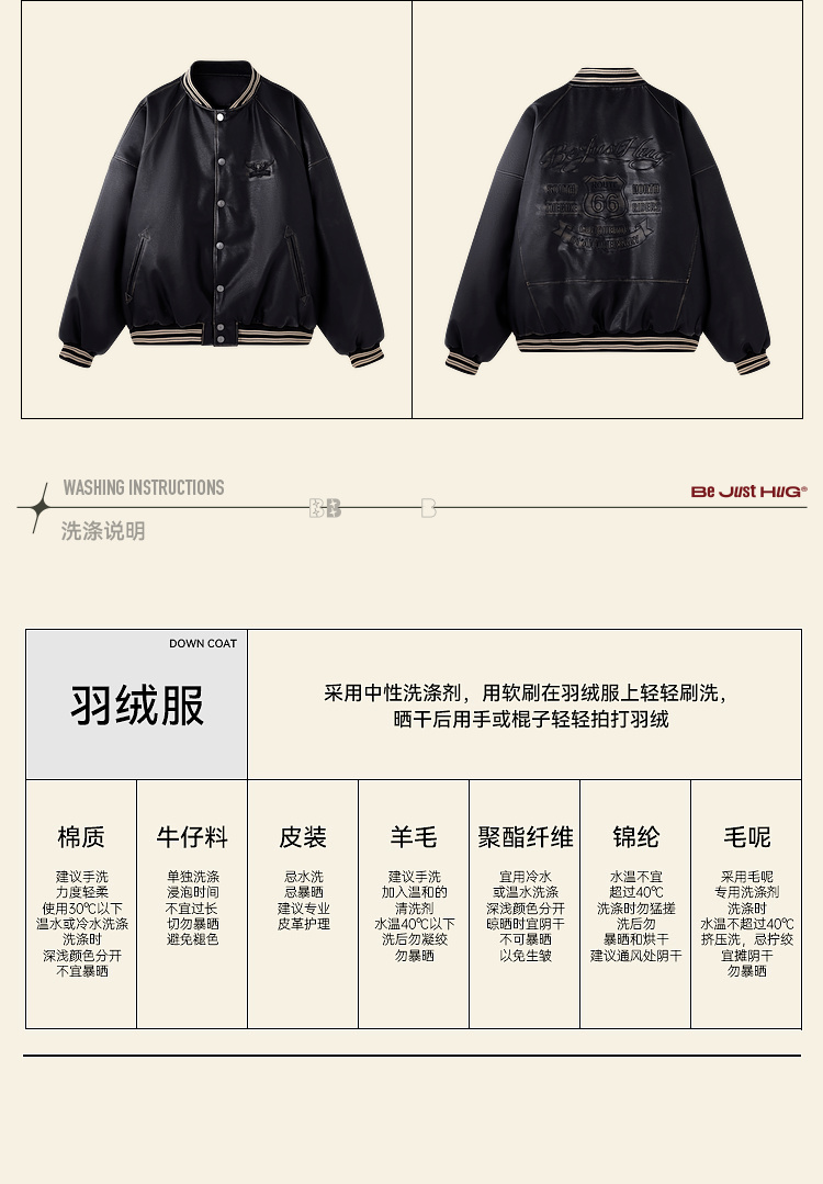 BJHG不计后果机车风羽绒服男女款冬季外套美式复古运动棒球羽绒服