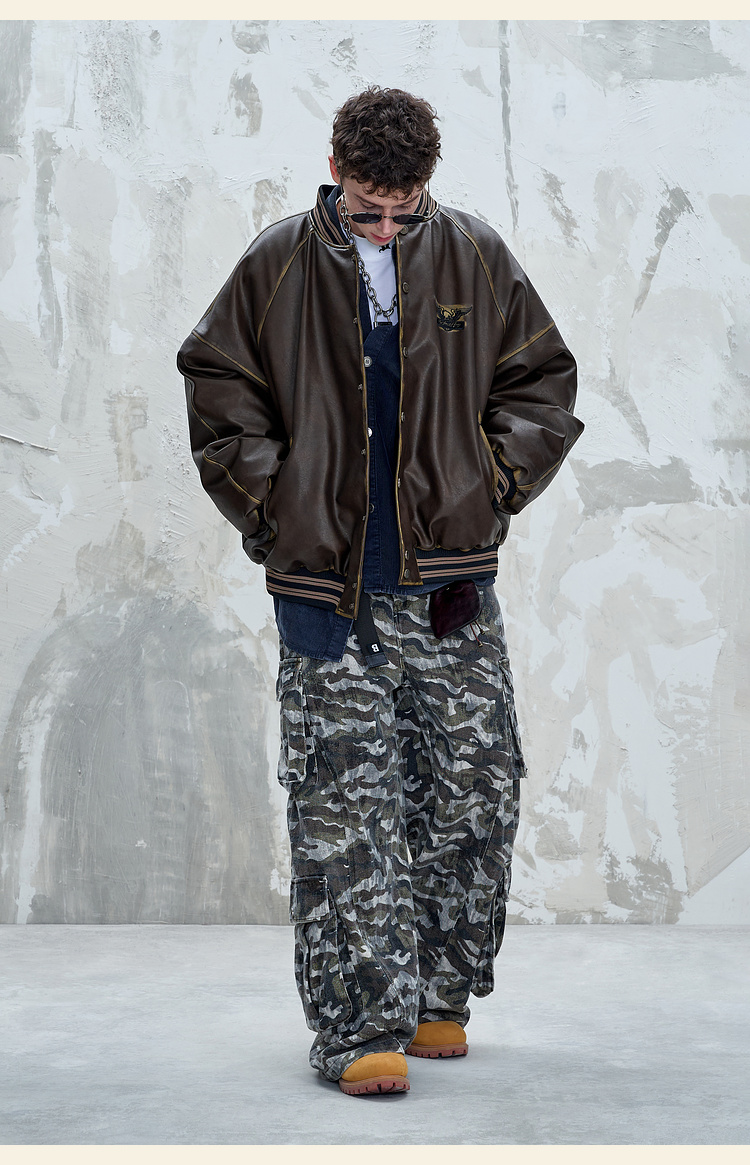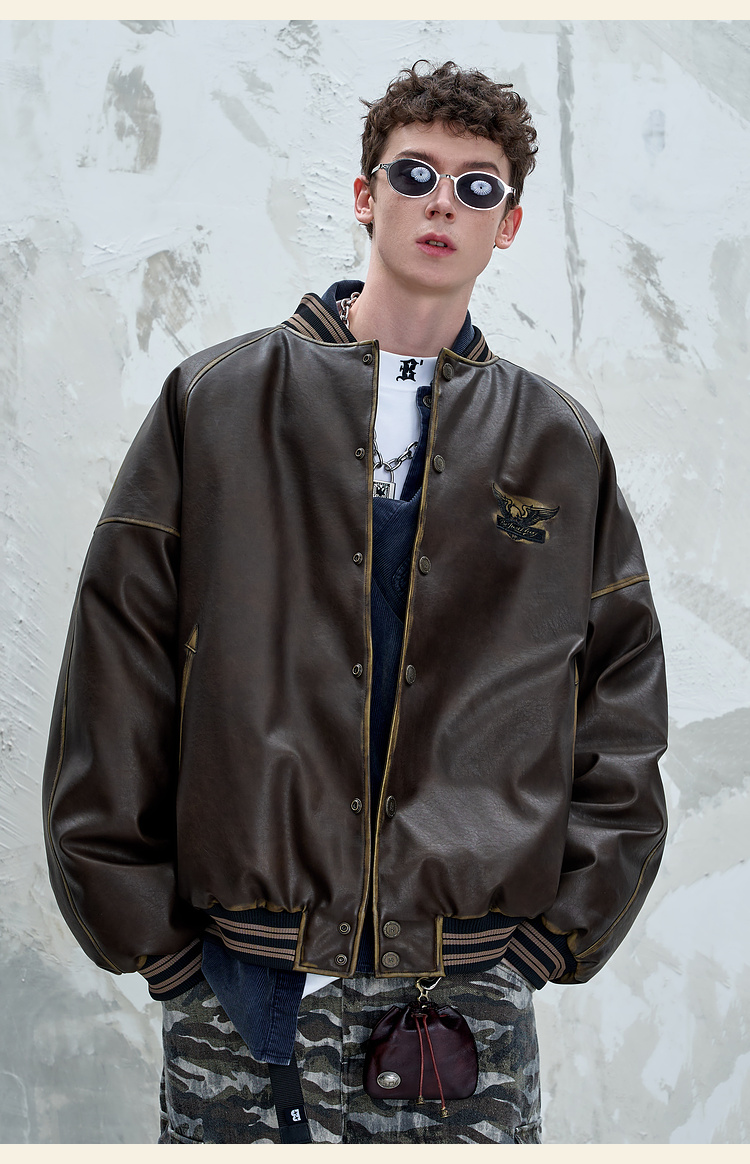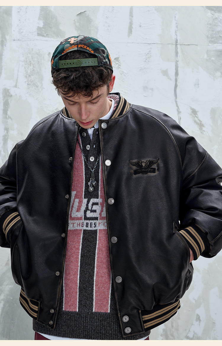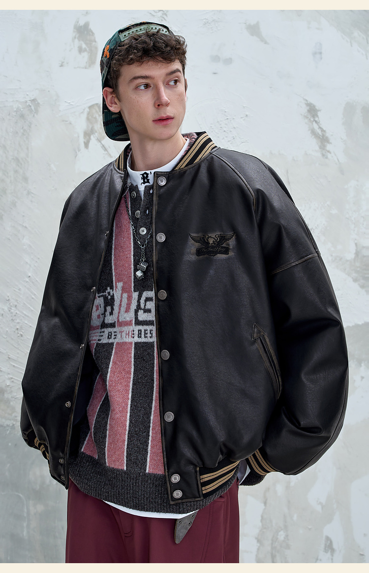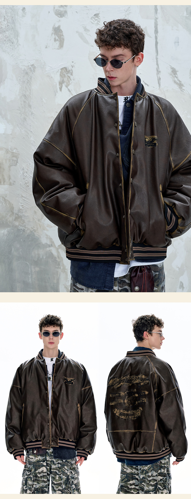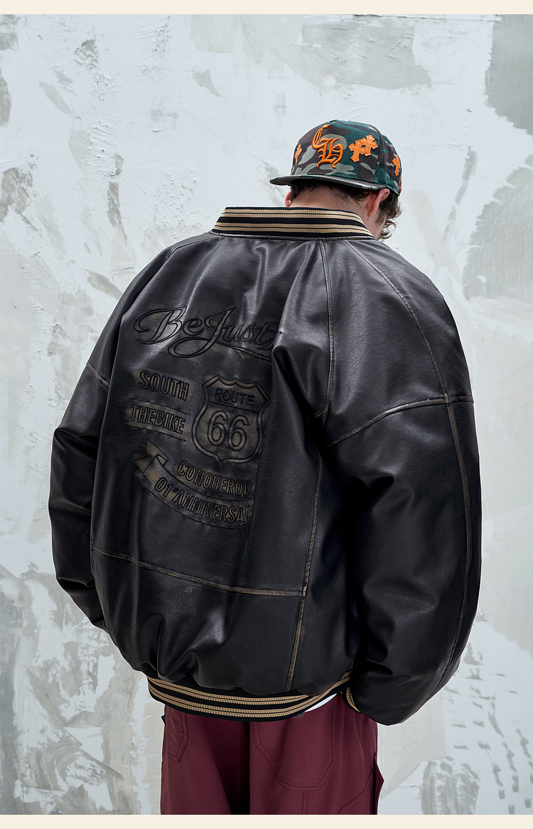 BJHG不计后果机车风羽绒服男女款冬季外套美式复古运动棒球羽绒服