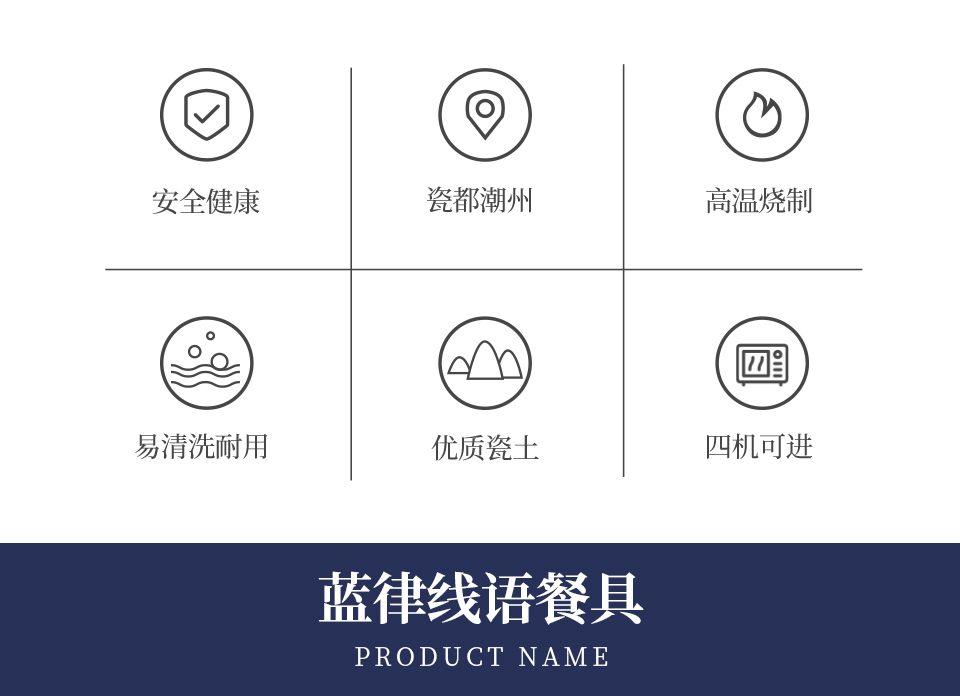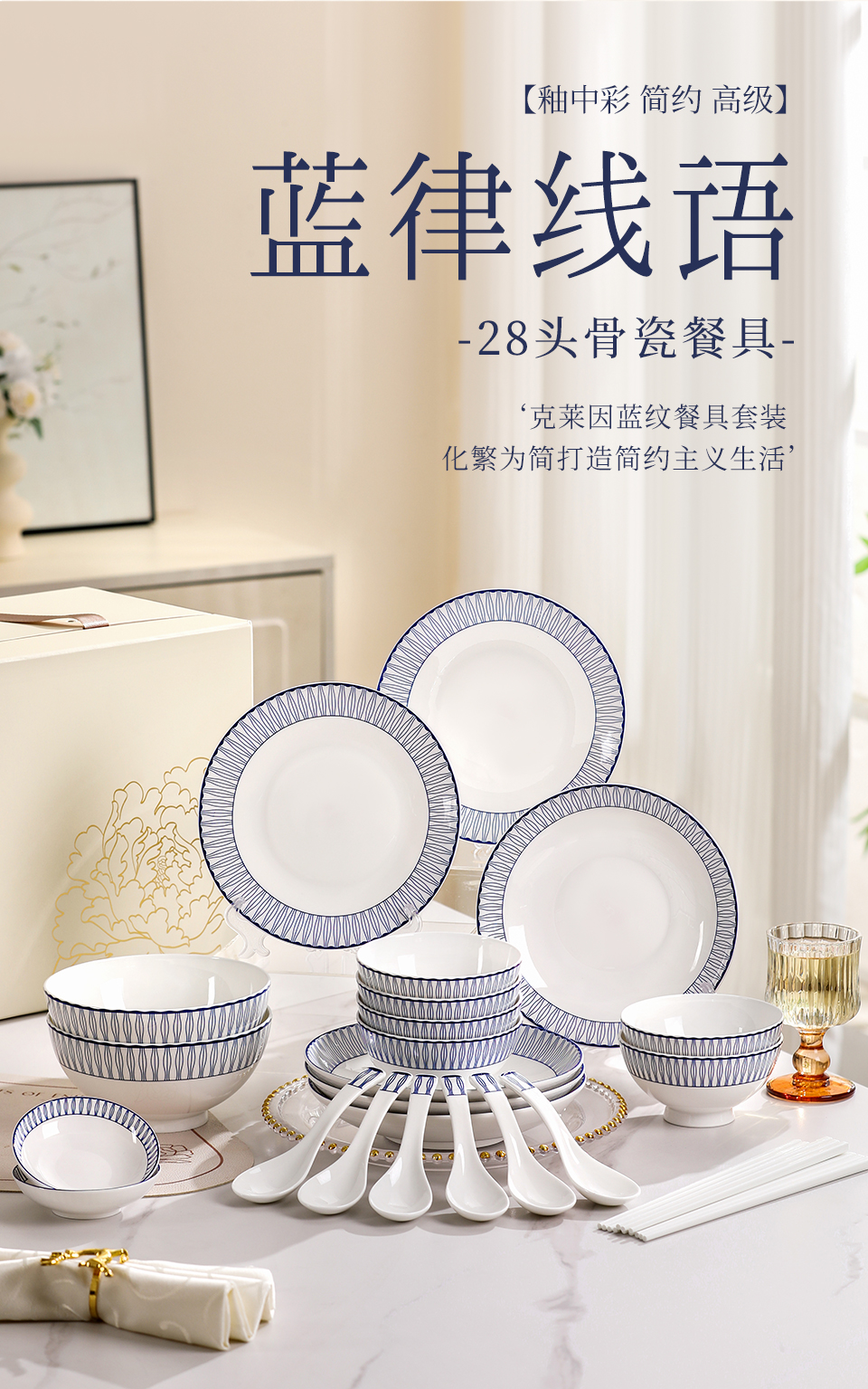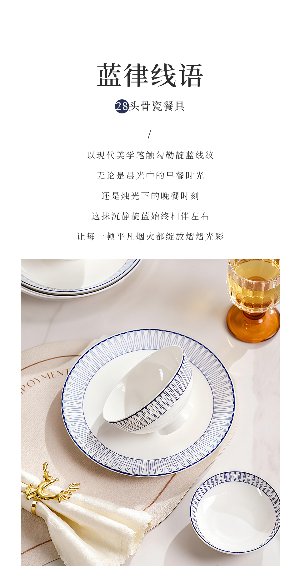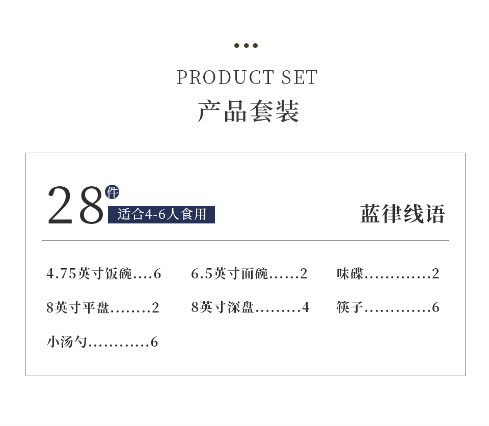 28头蓝律线语骨瓷釉中餐具