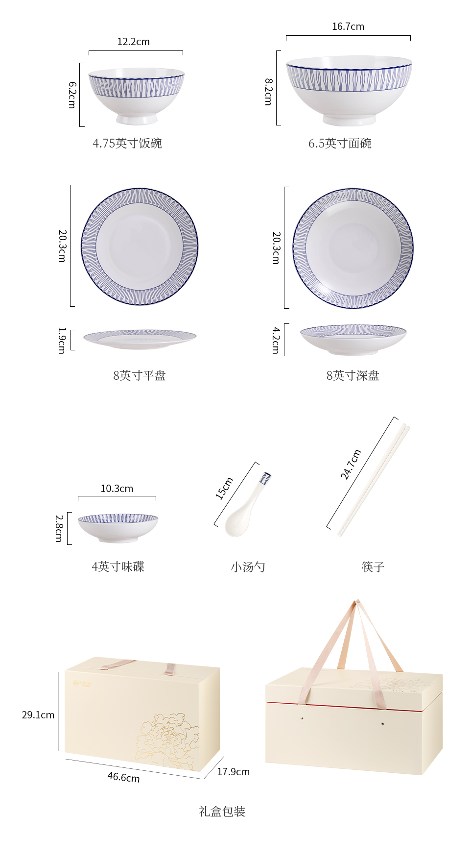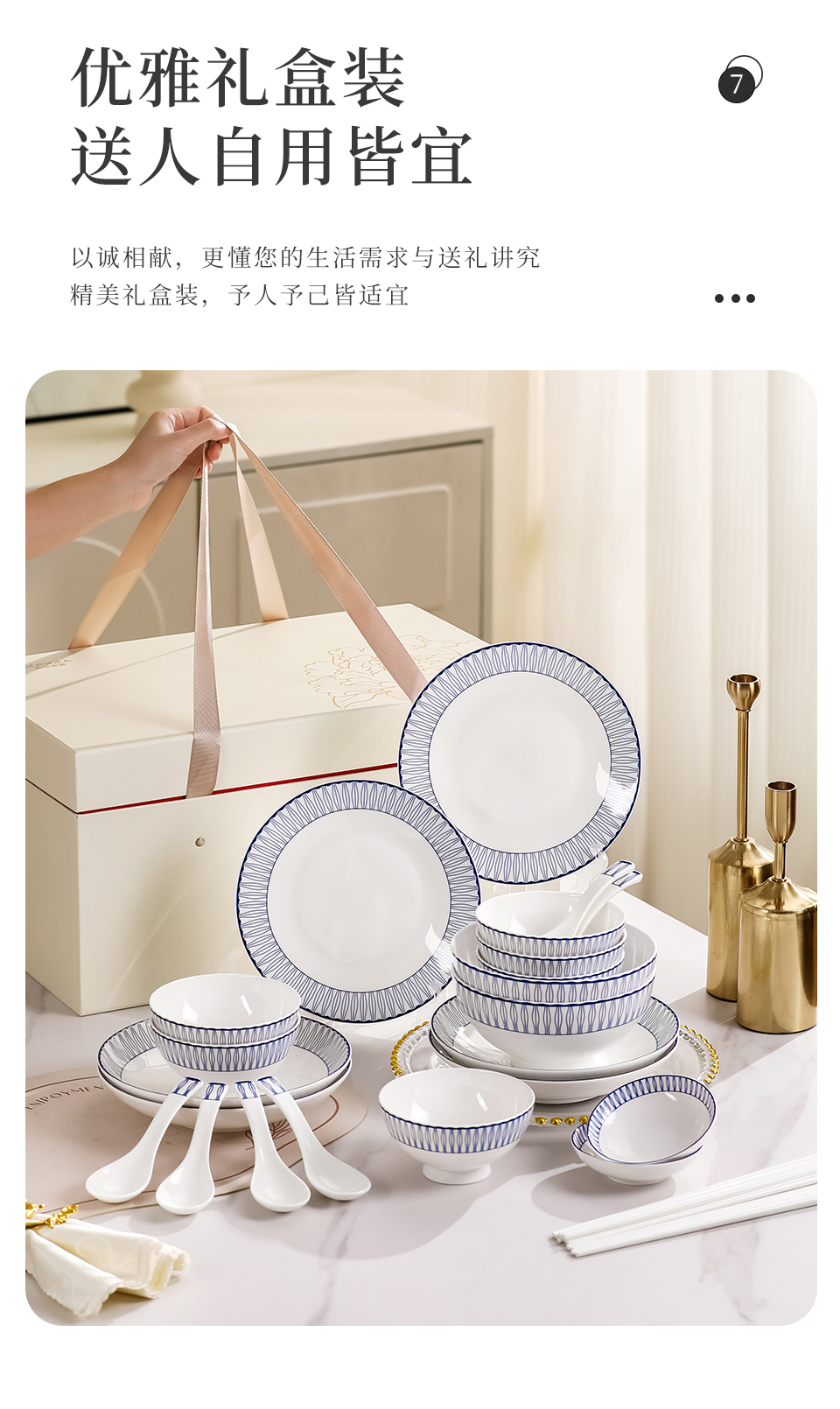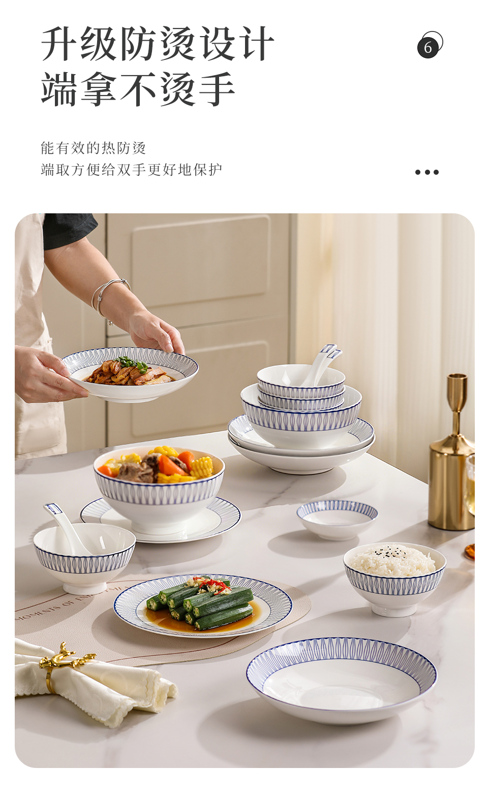 28头蓝律线语骨瓷釉中餐具