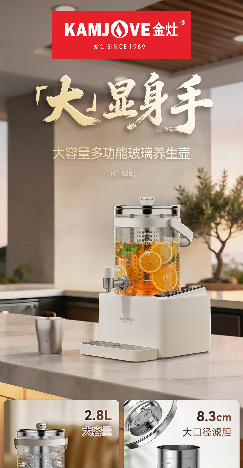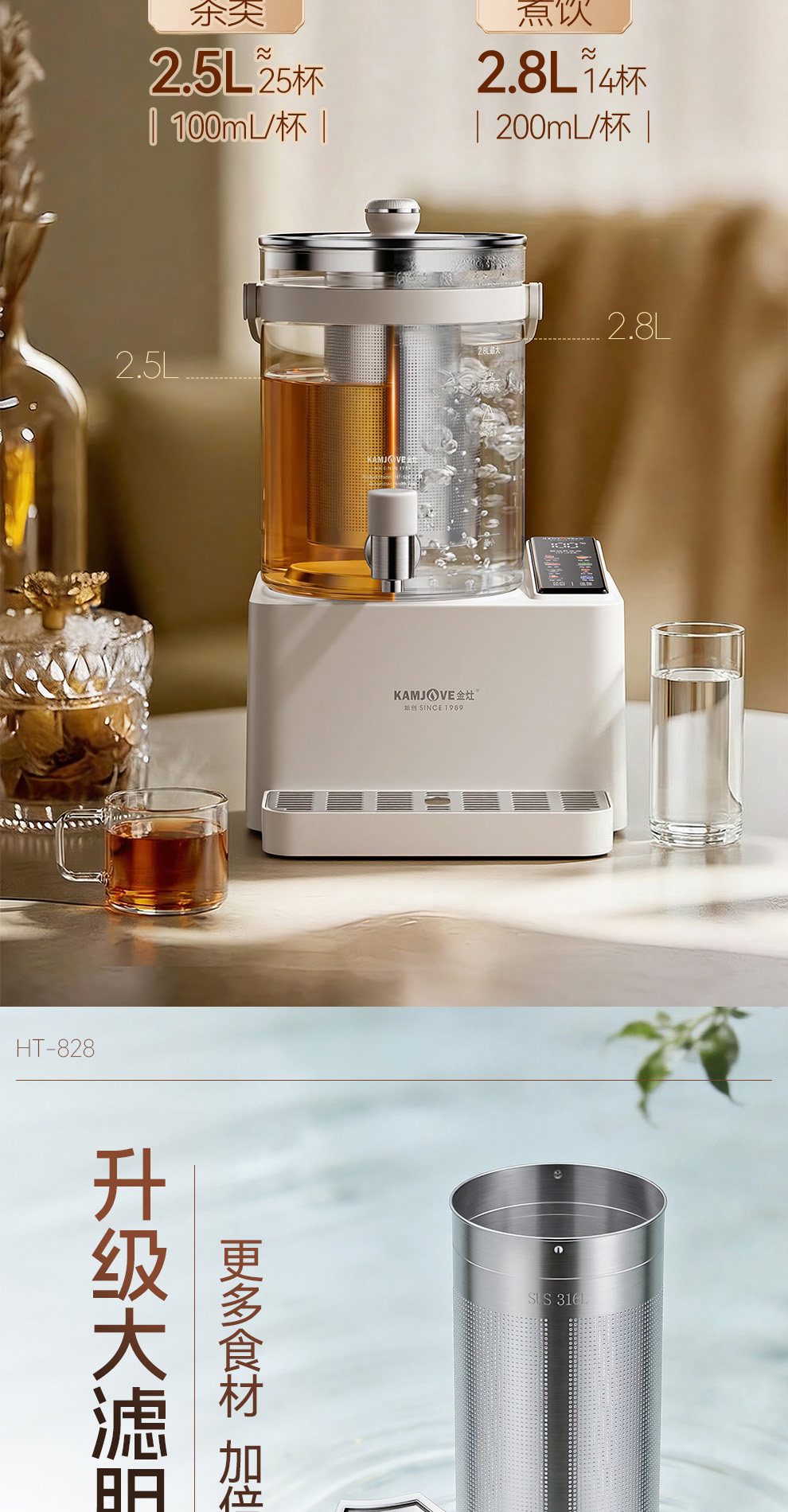 金灶HT-828水龙头养生壶2026新款多功能煮茶壶恒温大容量电热水壶