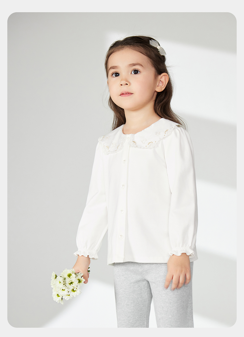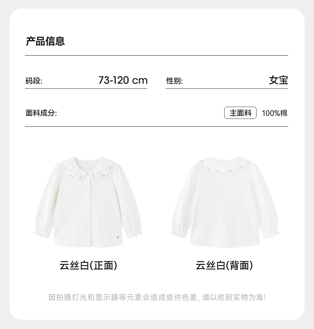 英氏儿童衬衫春夏纯棉长袖女童衬衫2025新款儿童上衣YRCAJ1R044A