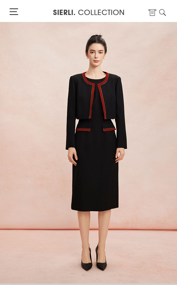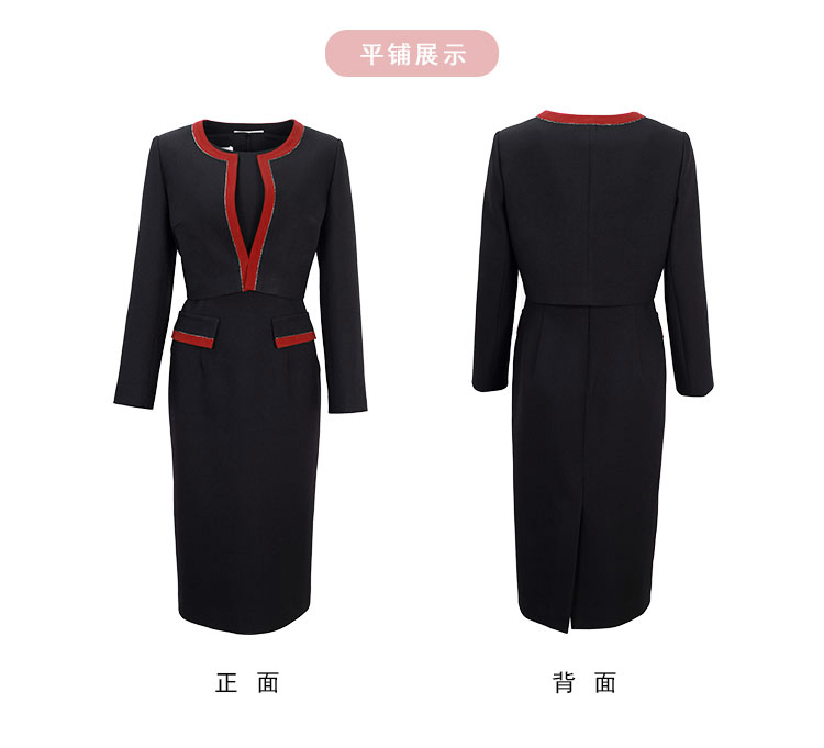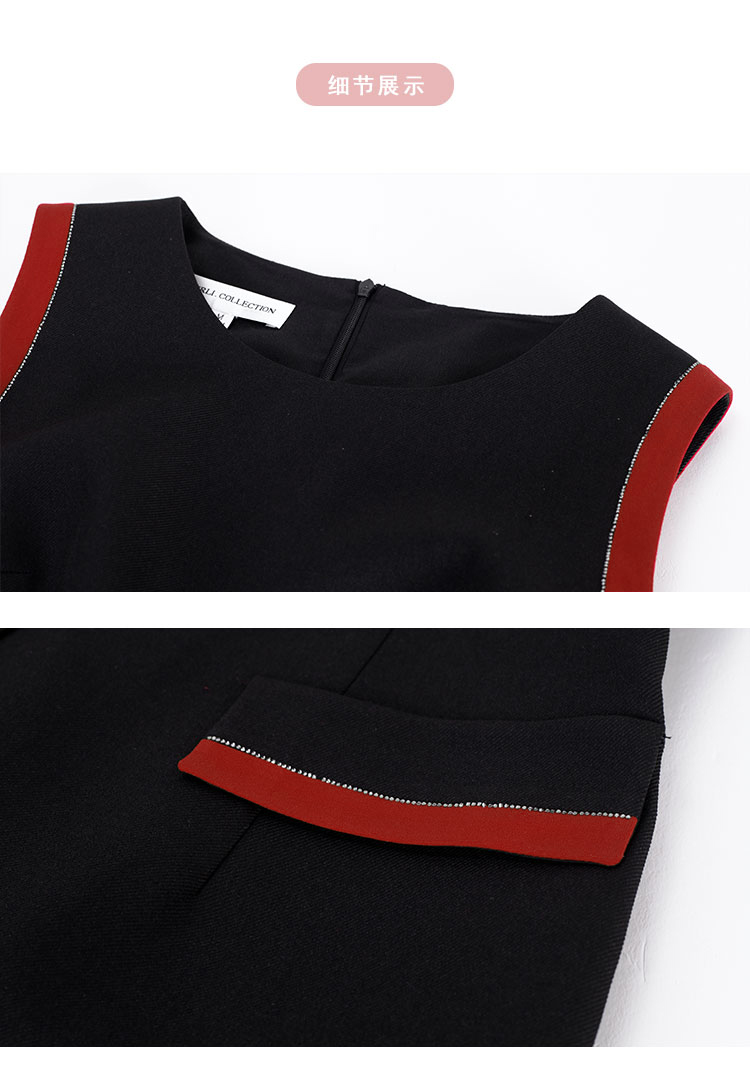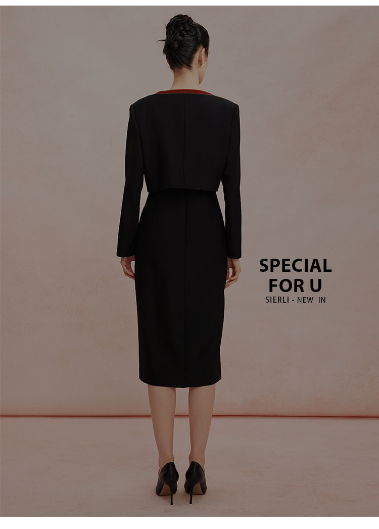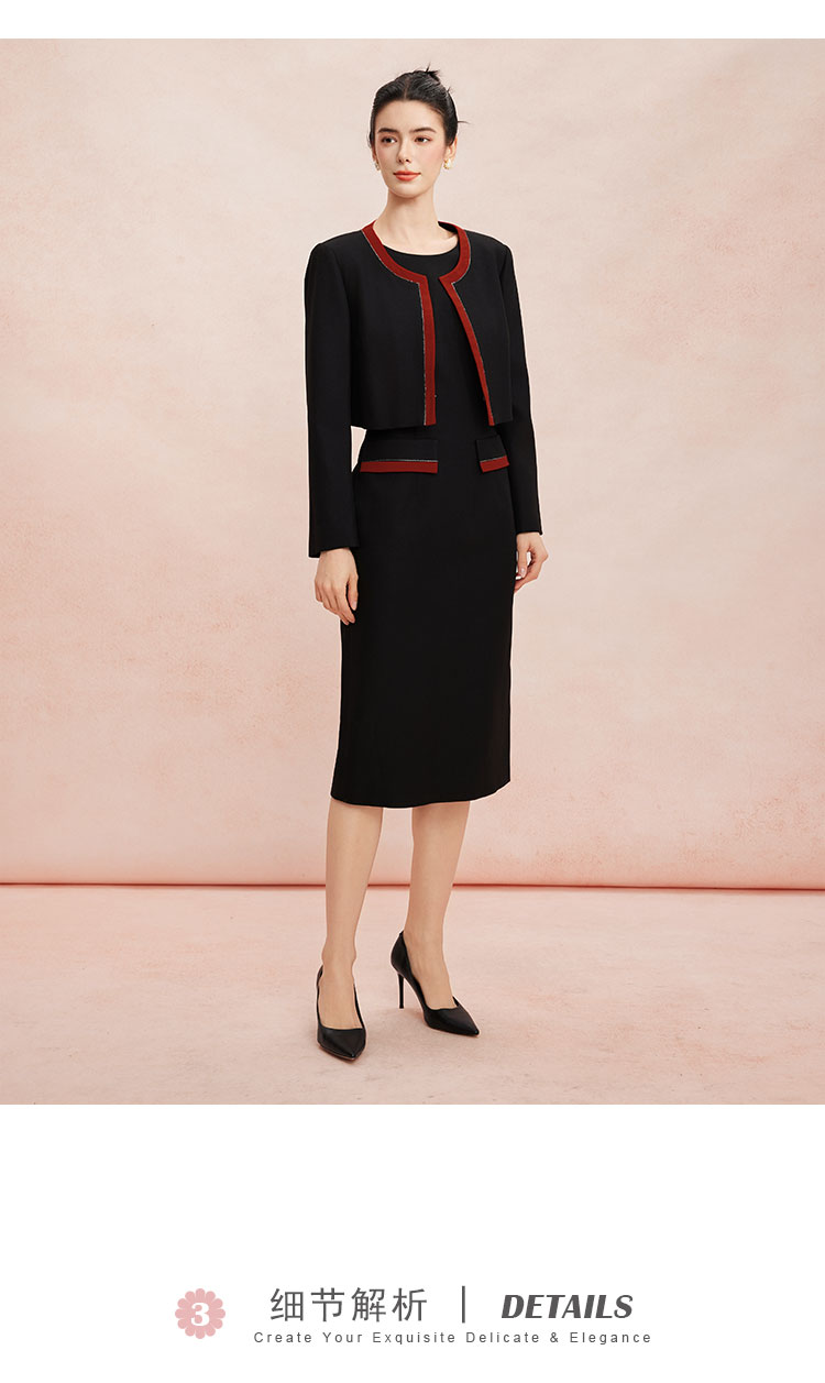 RE8A3斯尔丽春上新撞色修身圆领烫钻两件套外套+连衣裙