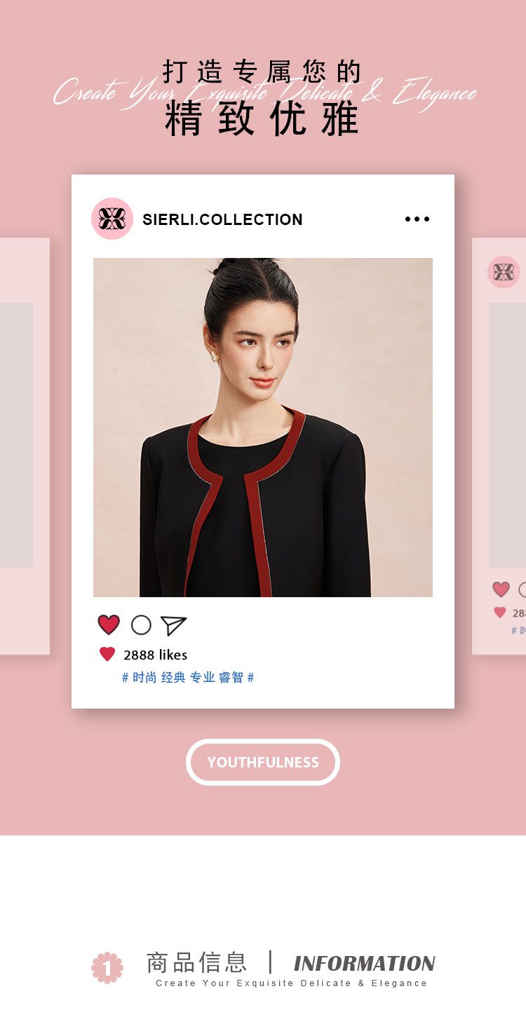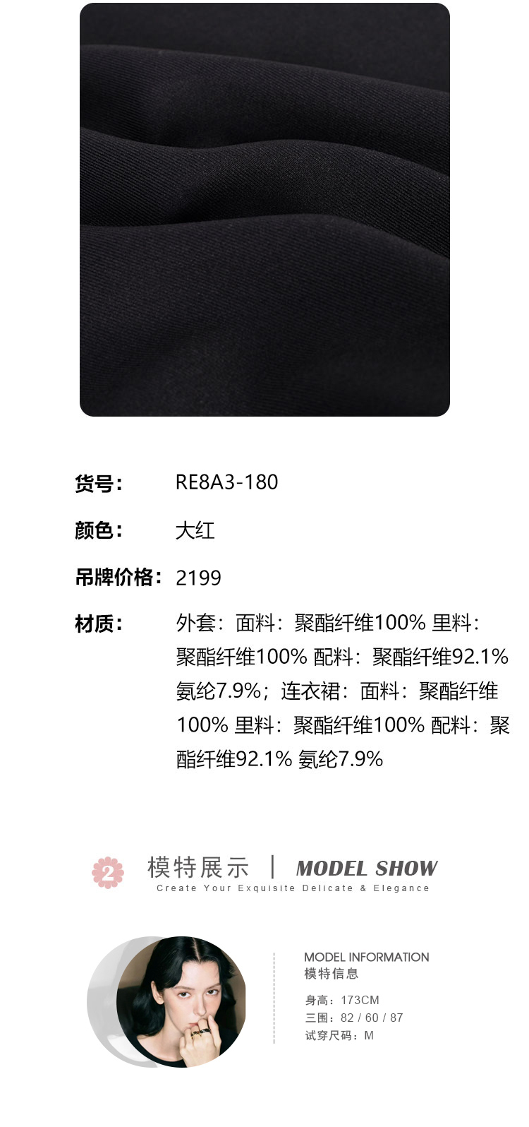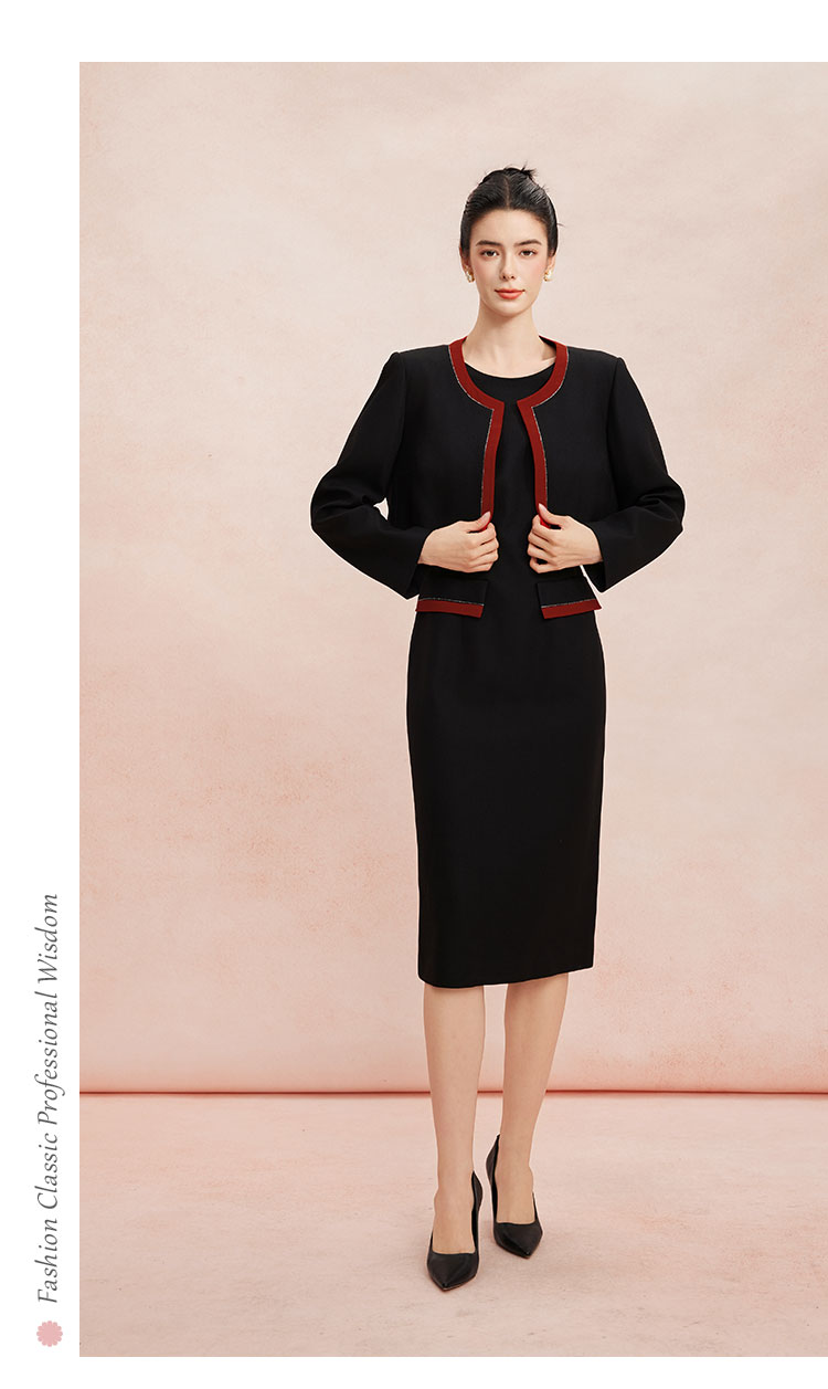RE8A3斯尔丽春上新撞色修身圆领烫钻两件套外套+连衣裙