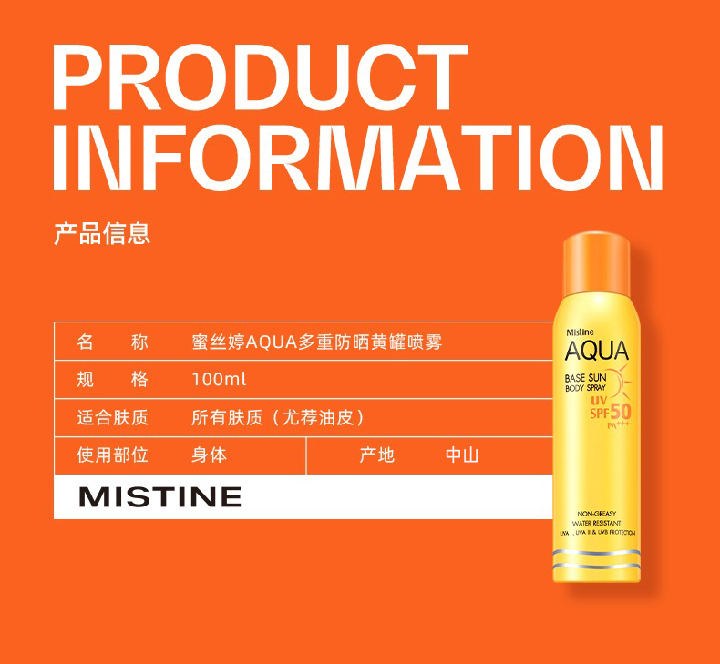 Mistine蜜丝婷小黄瓶防晒喷雾/1瓶(100ml)