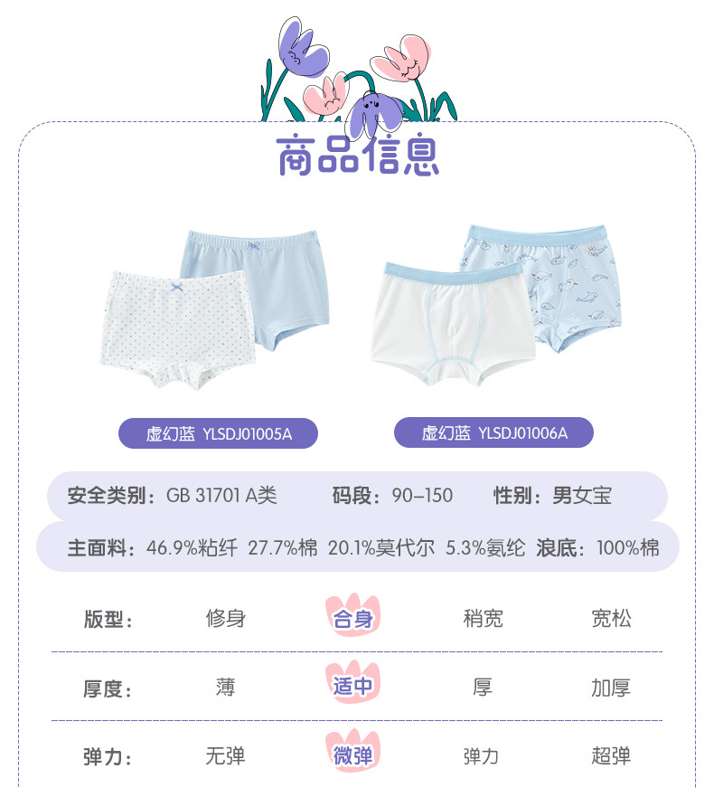 英氏男童女童内裤舒麻四角裤透气平角裤2件装YLSDJ01005A01 01006
