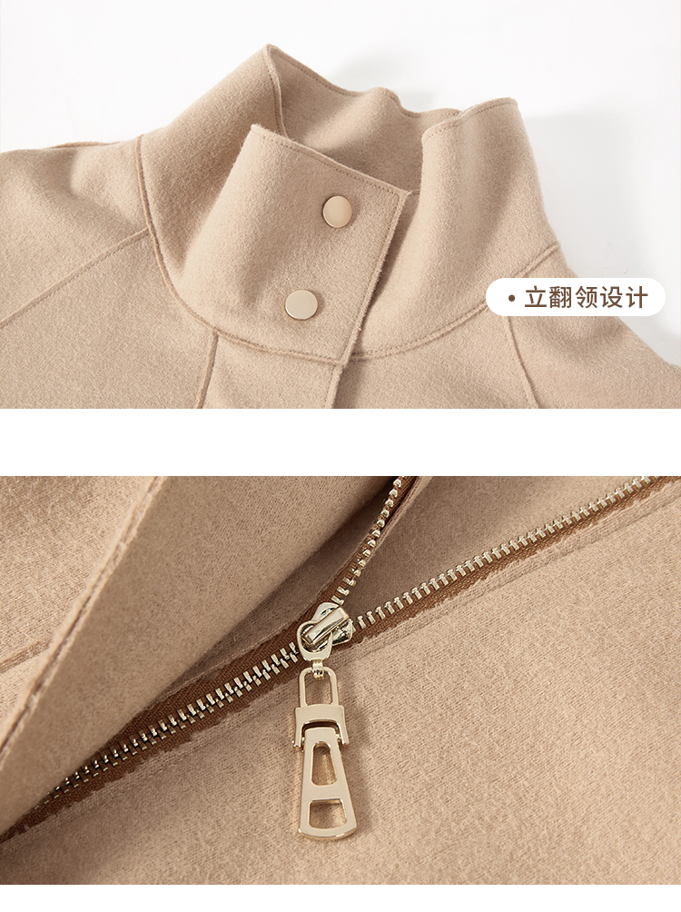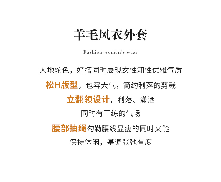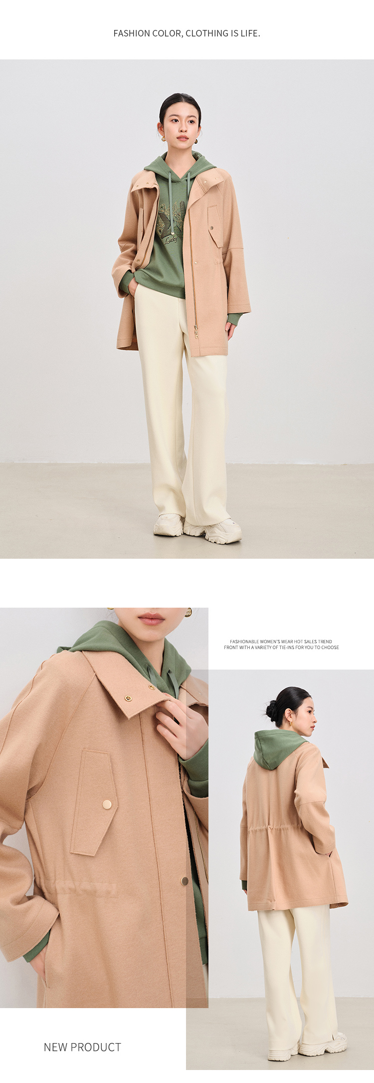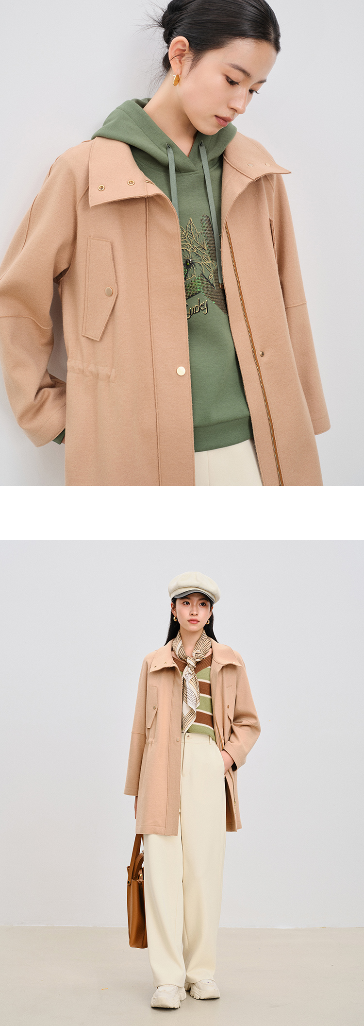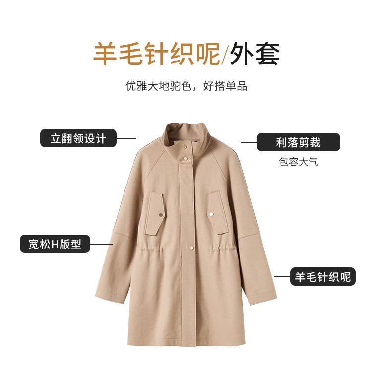 【商场同款】CNJ4978“随性风衣外套”气质卡其色 羊毛针织呢外套 松弛H版型 立翻领设计 干练利落 腰部抽绳 通勤风衣