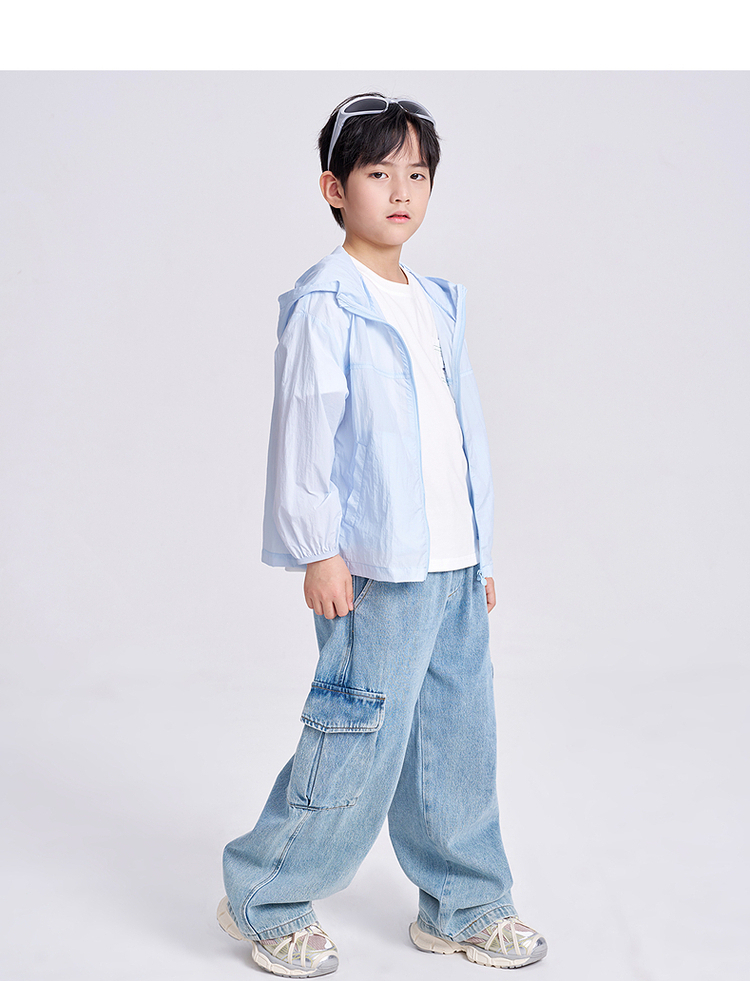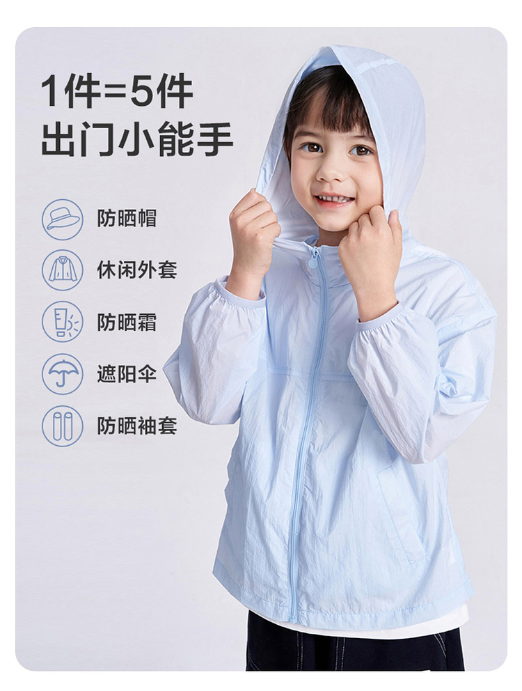 笛莎千与2025夏新款男女童户外轻量连帽防晒服外套