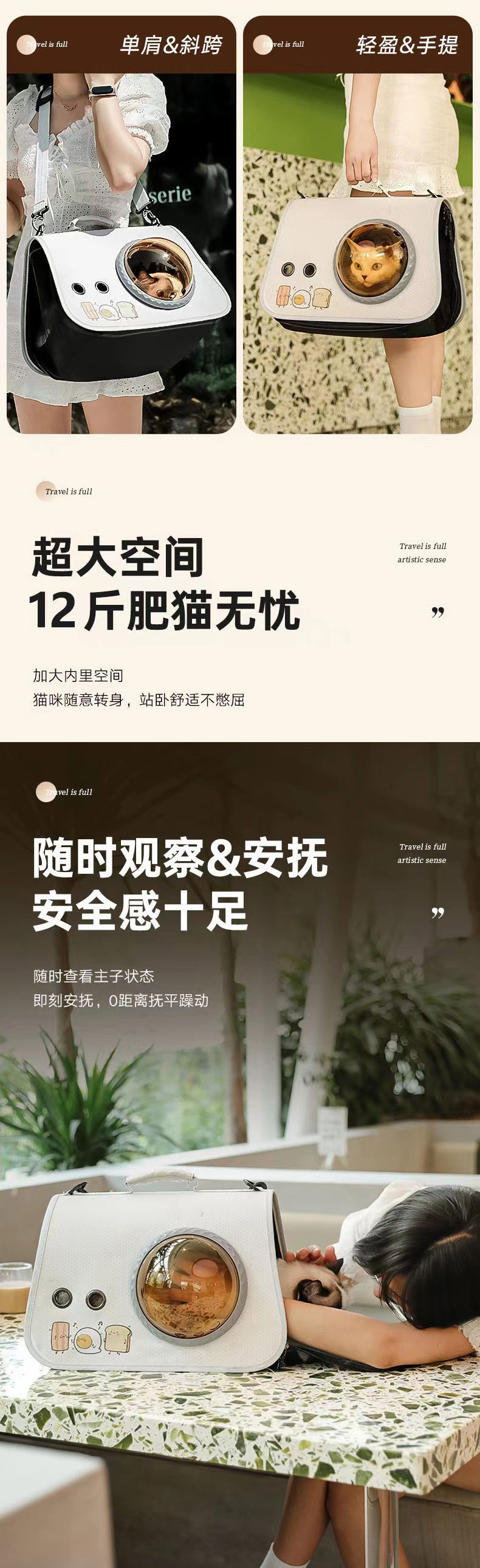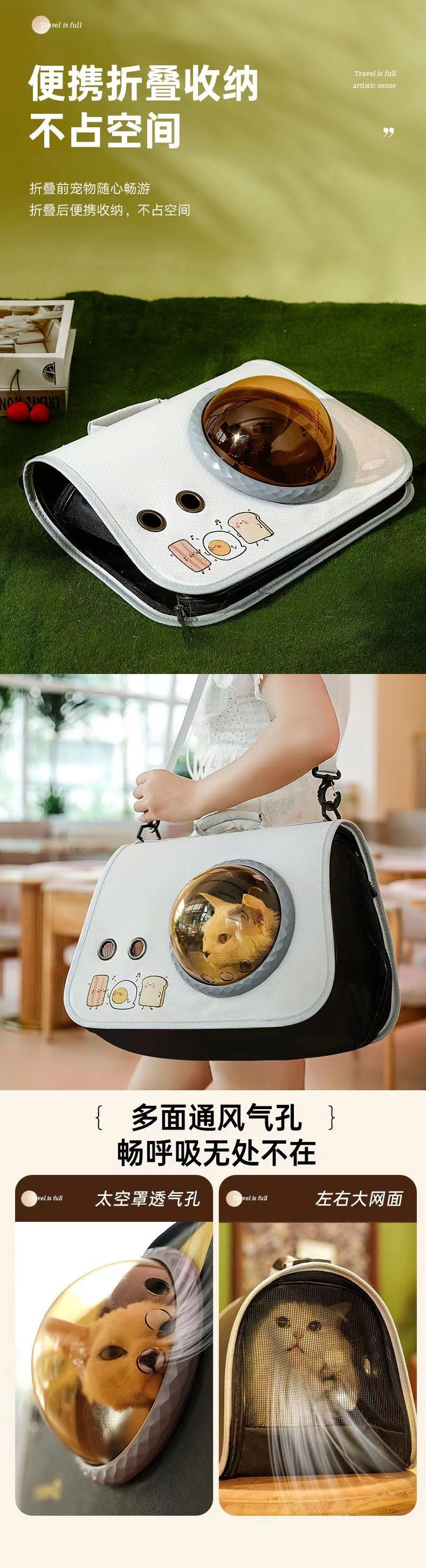 新款印花双肩手提猫包 可折叠大容量高颜值 太空舱背包