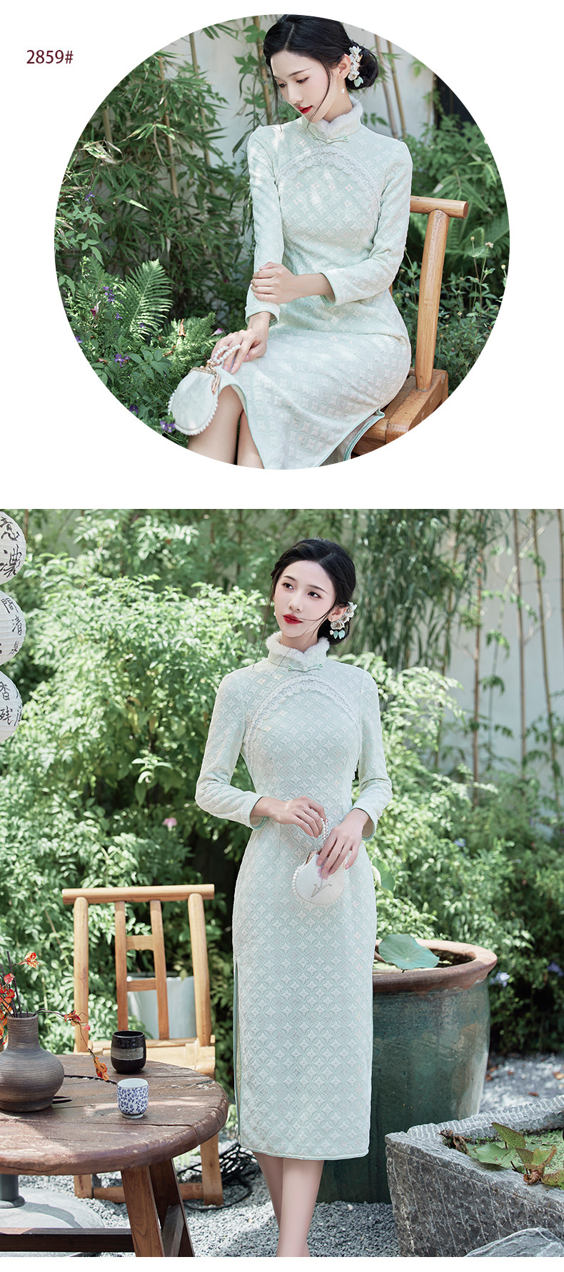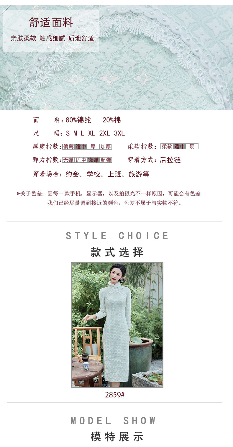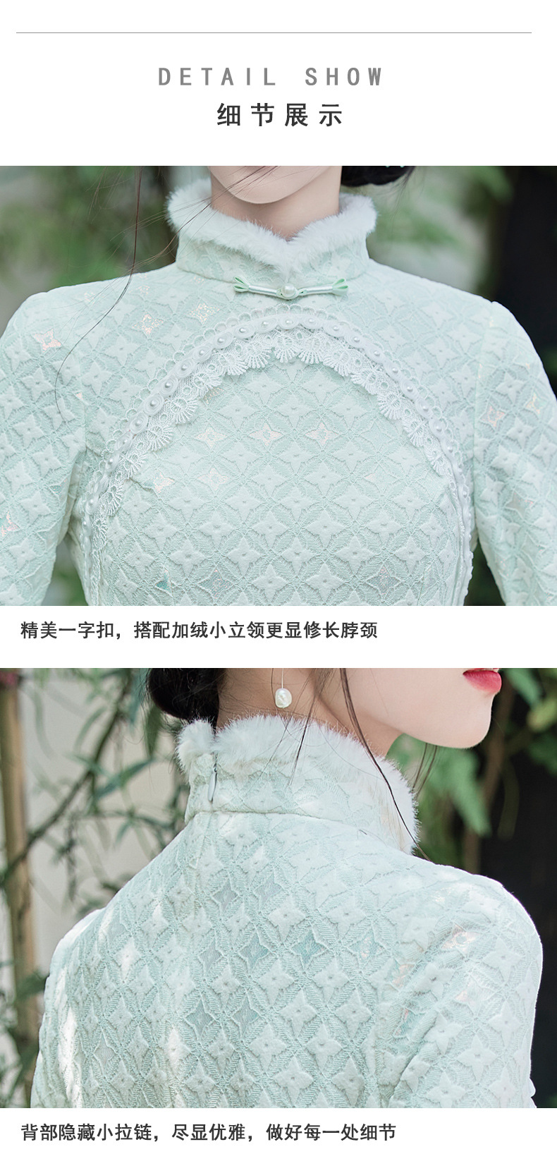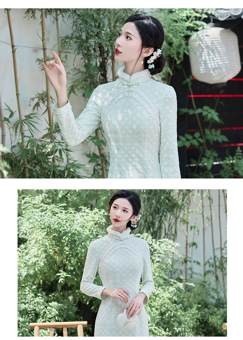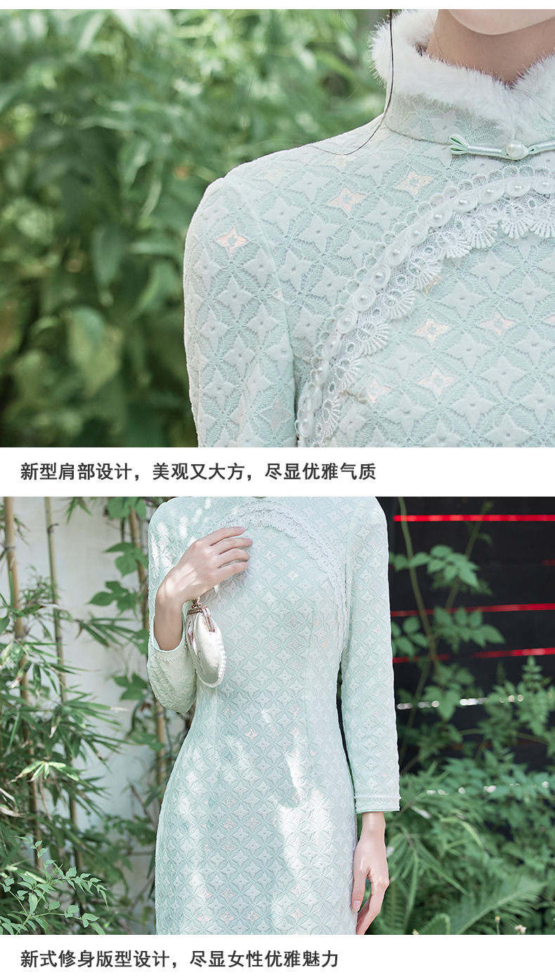 优雅气质,冬季新款锦棉提花毛领旗袍知性蕾丝花边日常宴会走秀旗袍BS-2859