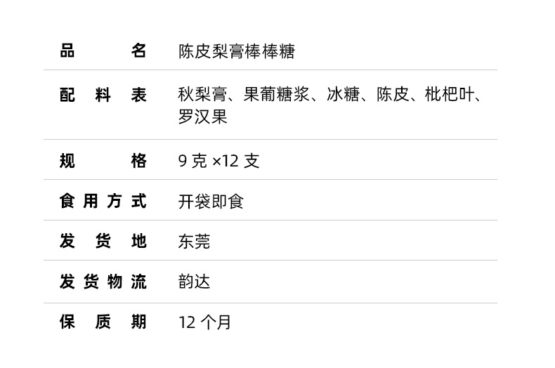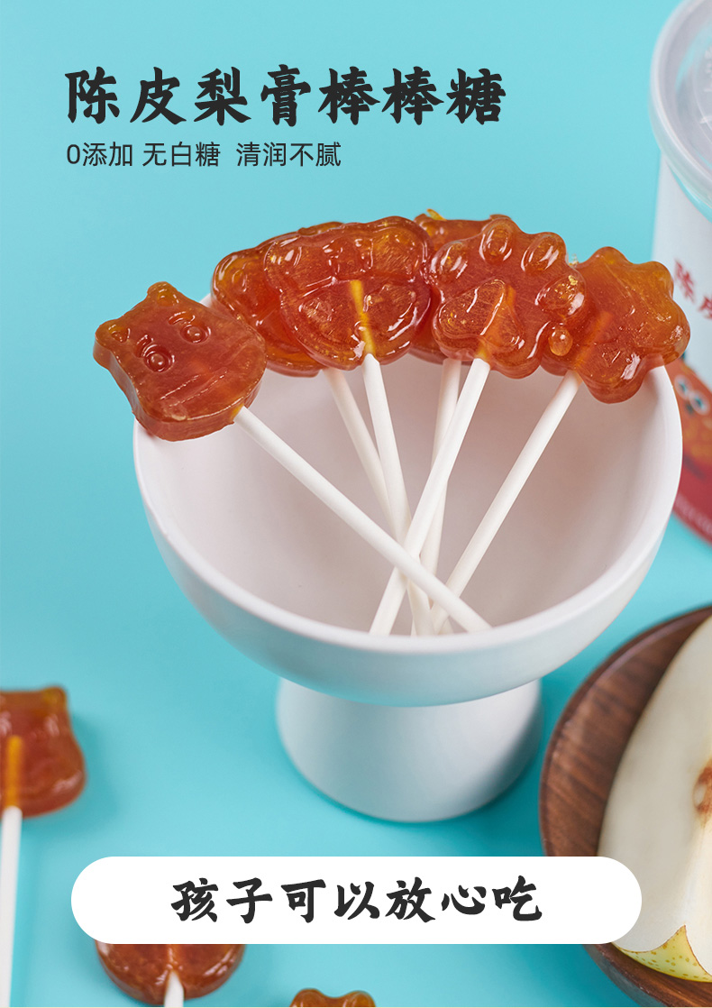 陈皮梨膏棒棒糖 用新会8个陈皮 金川梨膏棒棒糖儿童休闲零食9克*12支/罐