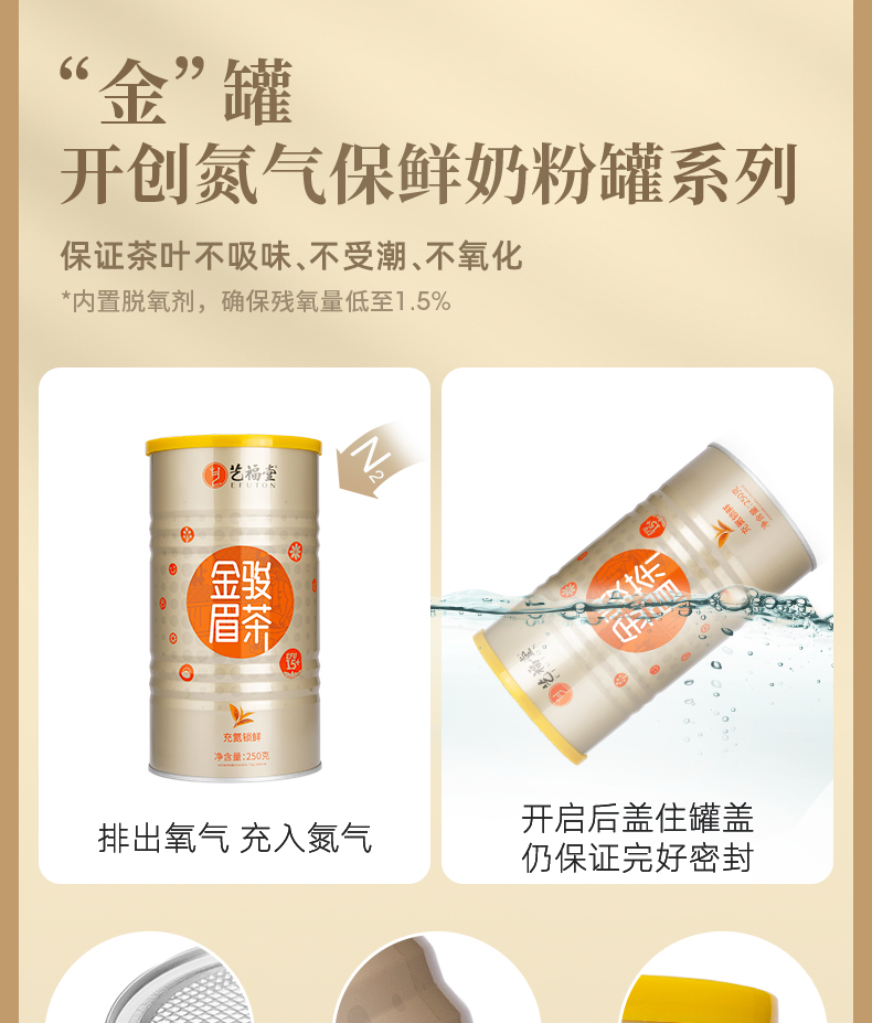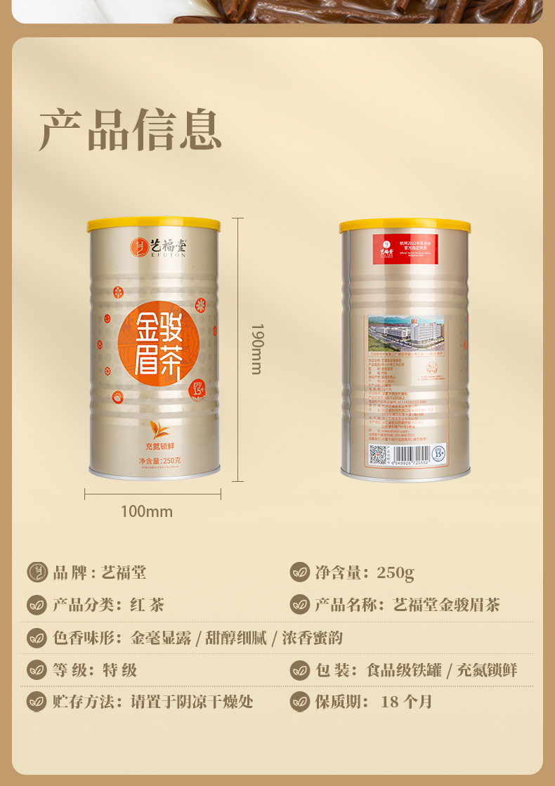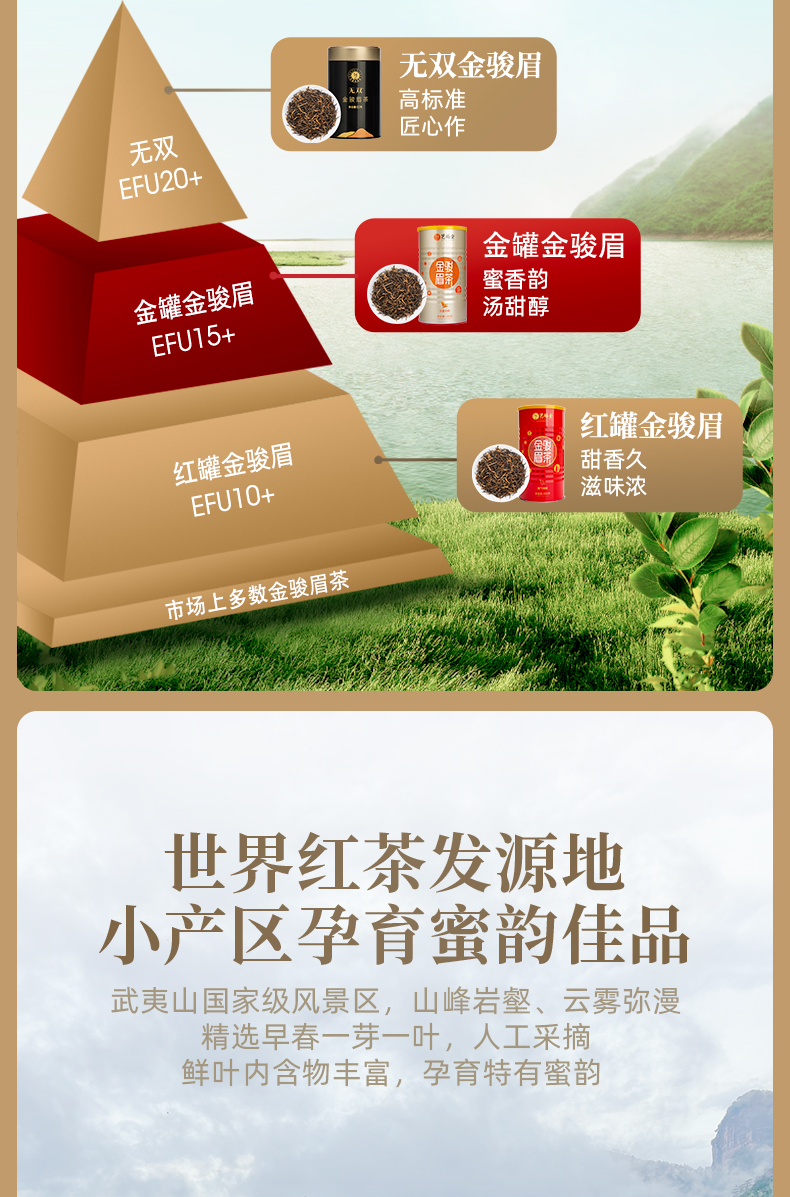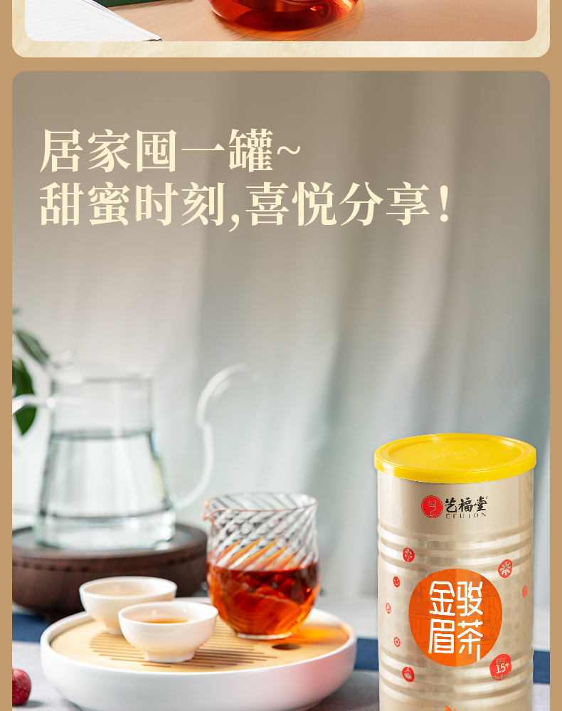 【下单减48,第2件半价送青瓷罐】艺福堂 茶叶 红茶 特级 EFU15+ 金骏眉 250g/罐
