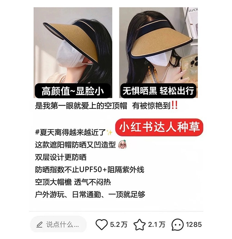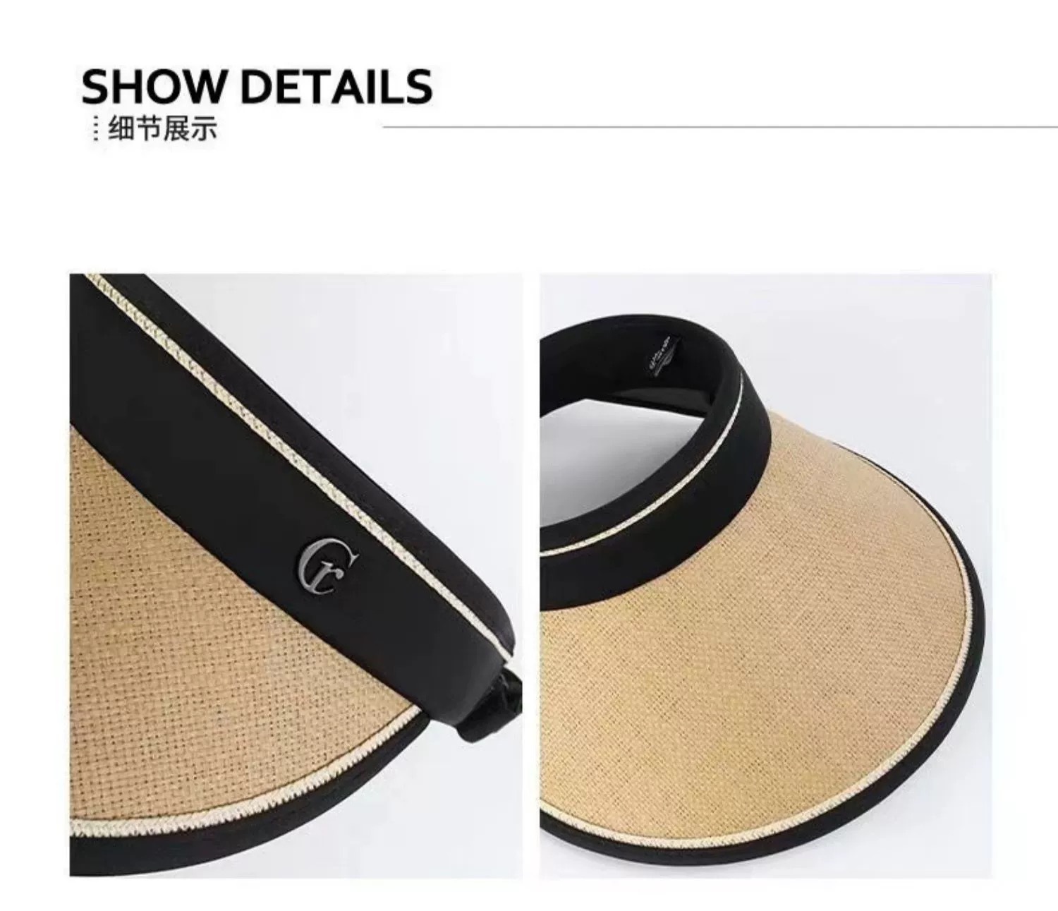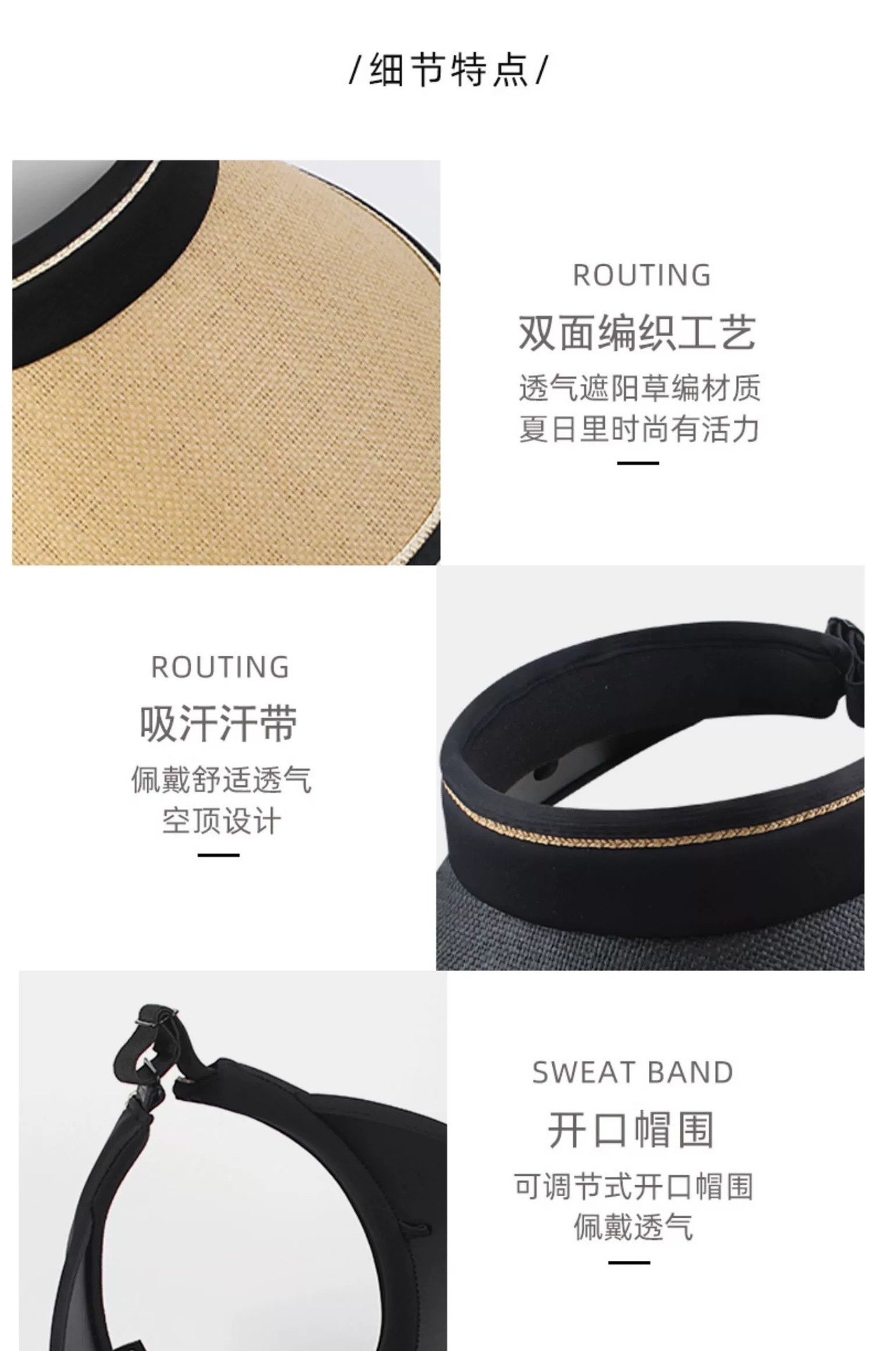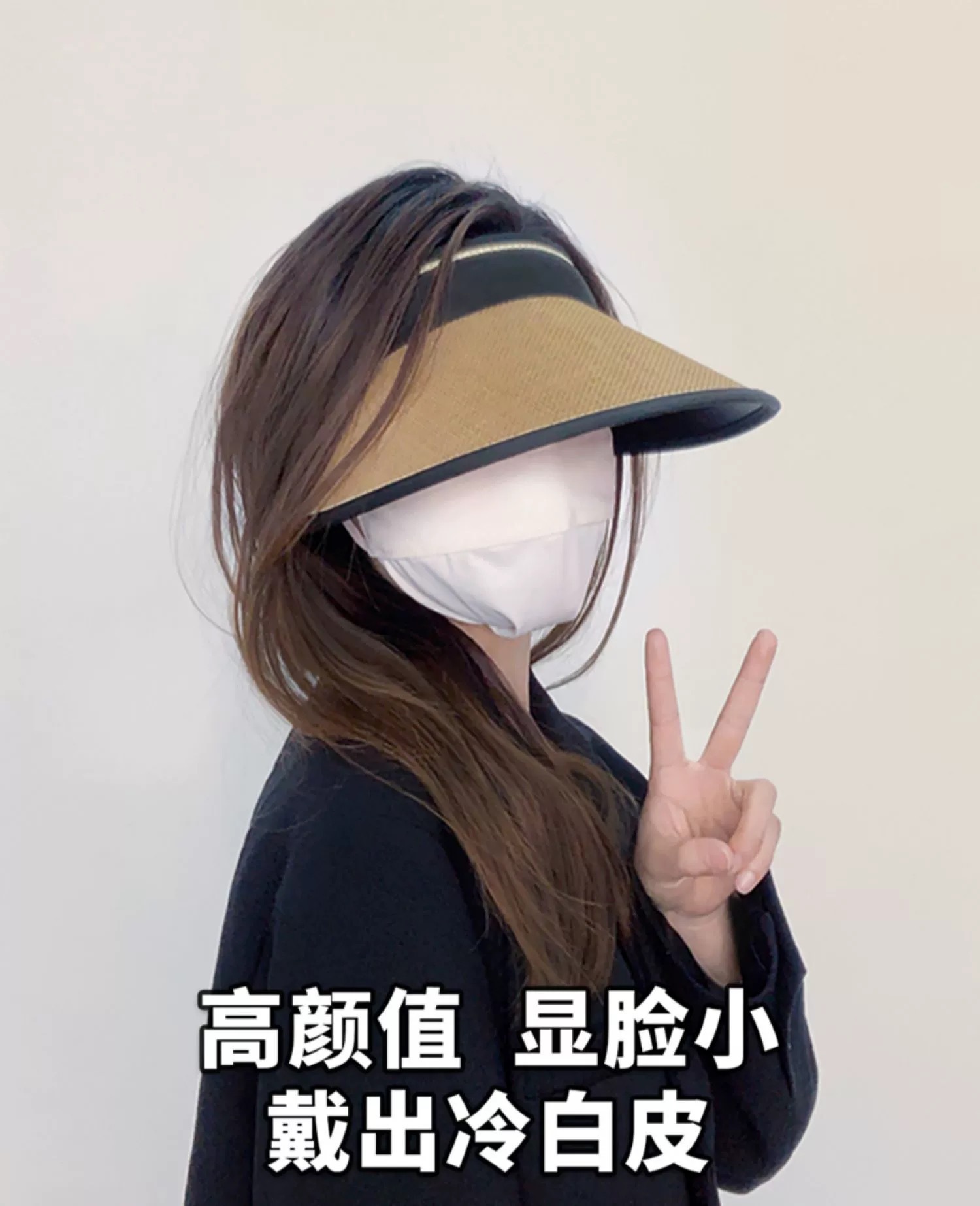 【可卷空顶帽❗不挑脸型】防晒遮阳帽女空顶大帽檐草编骑车帽防吹翻骑行可调节可卷收纳帽子。rh
