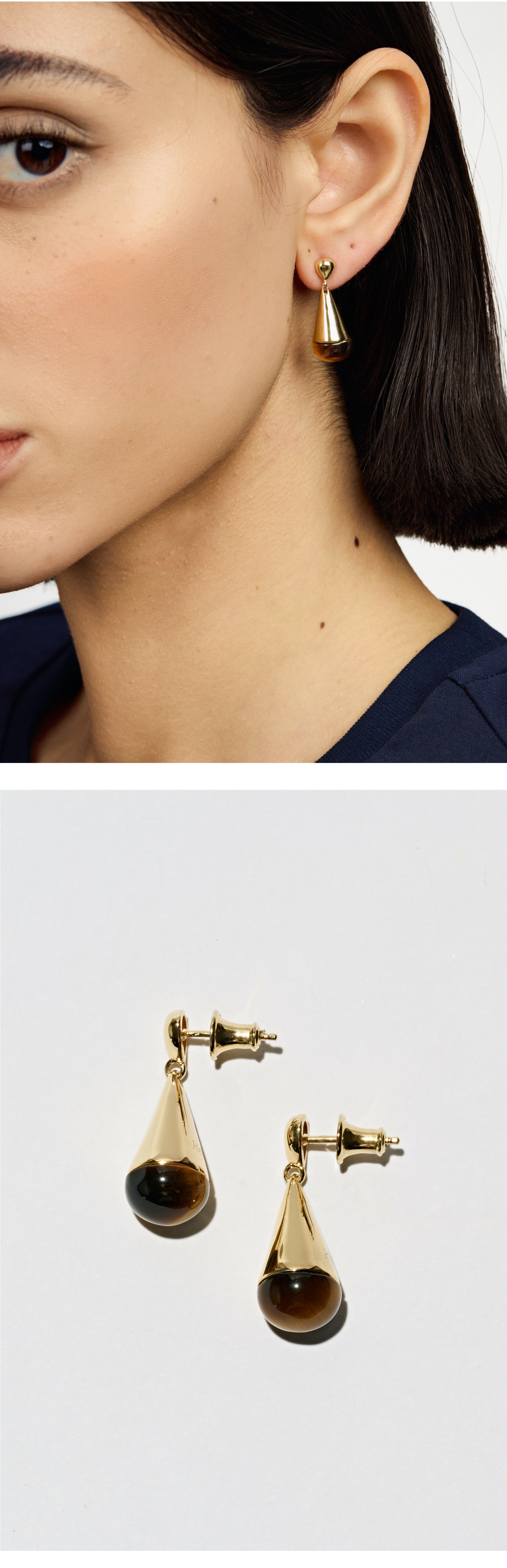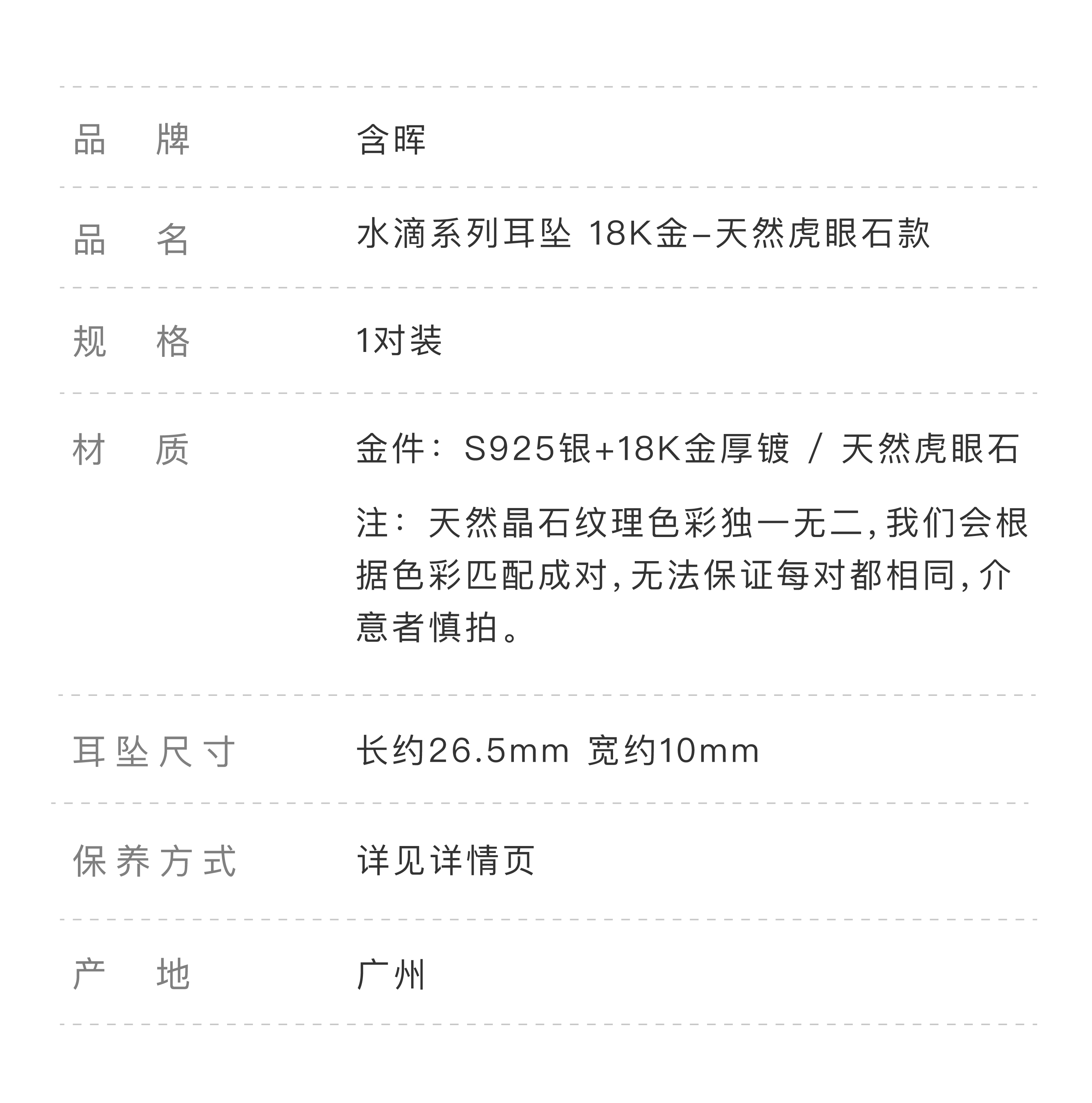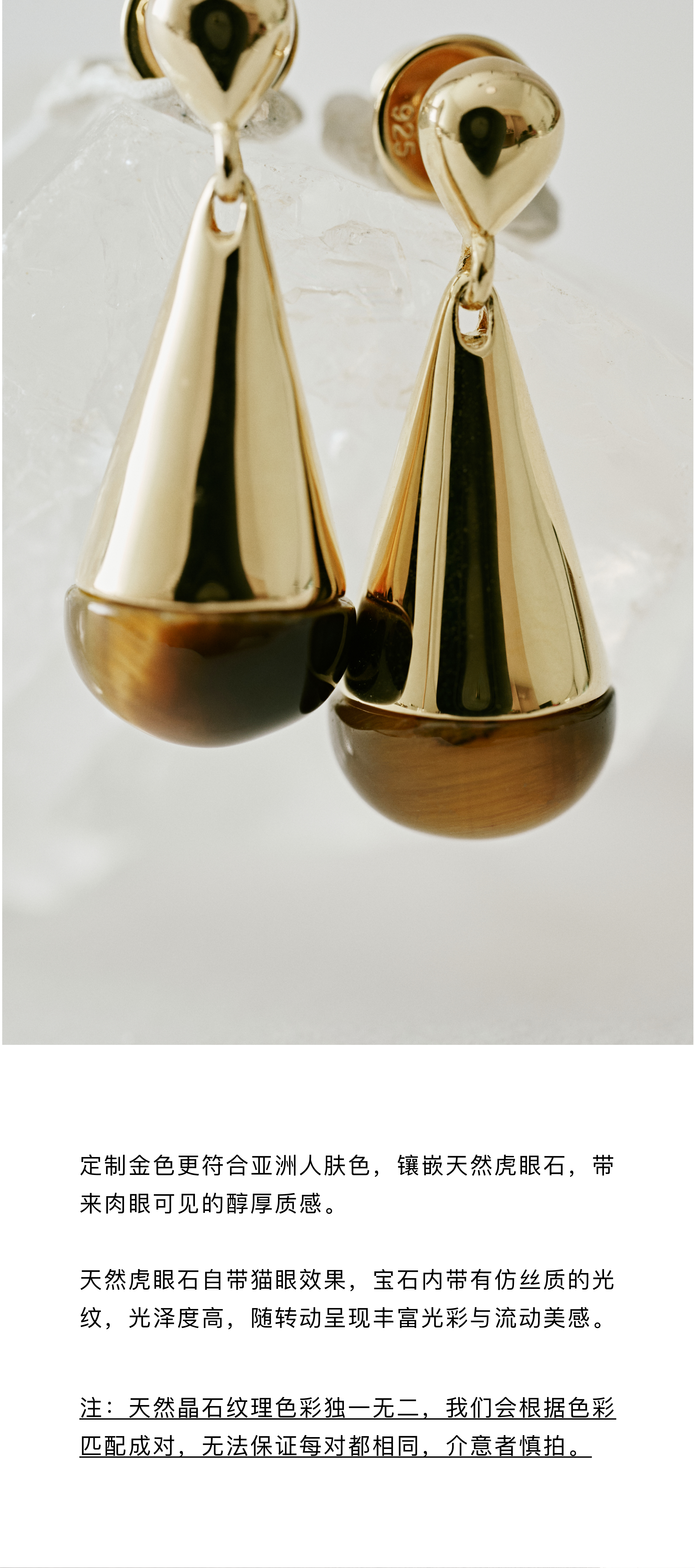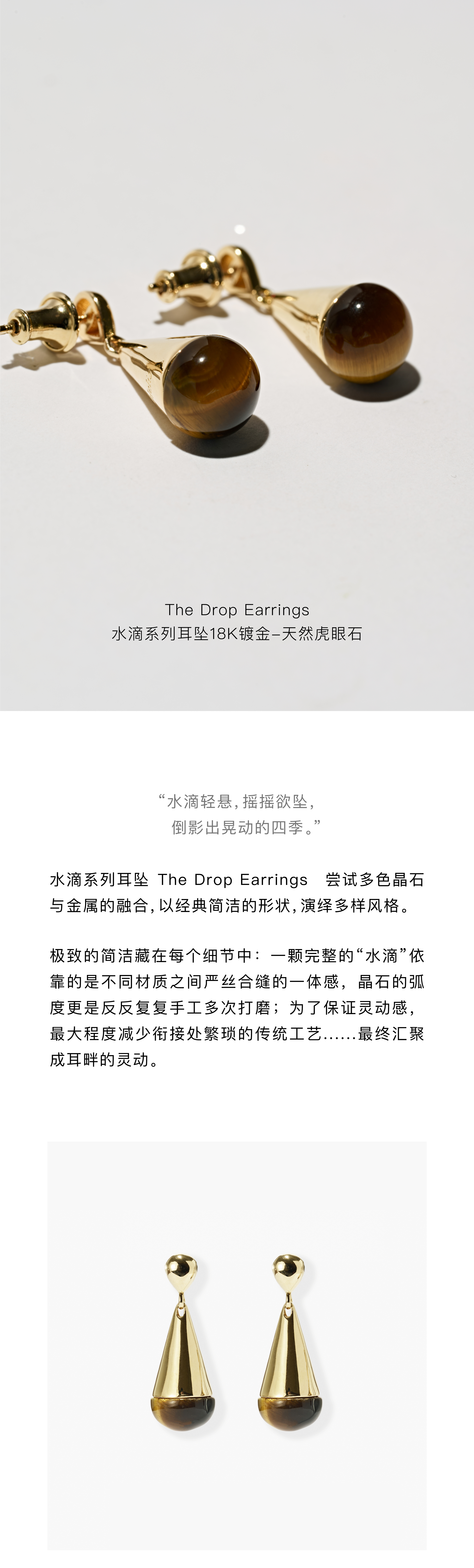 含晖·水滴系列耳坠 18K镀金-天然虎眼石