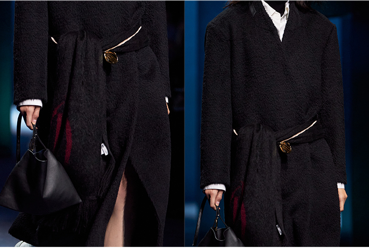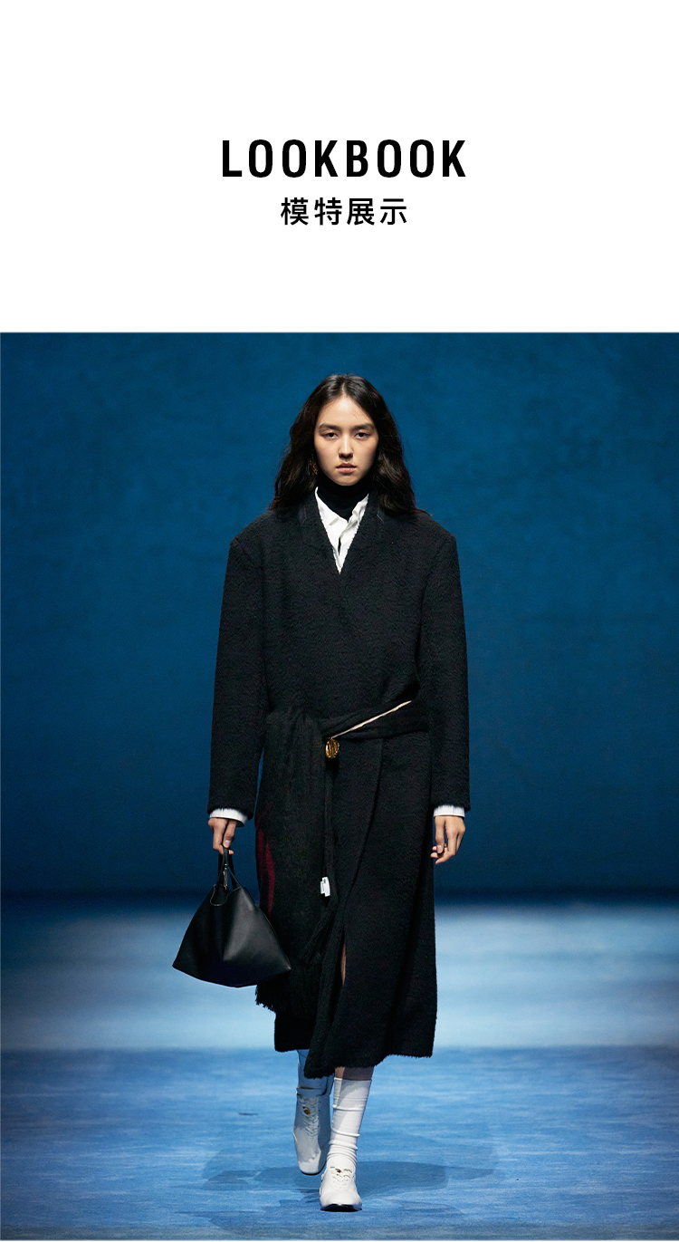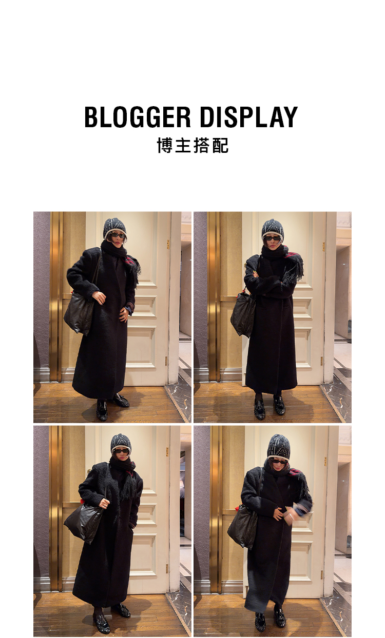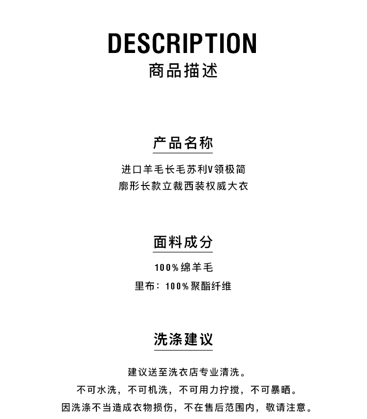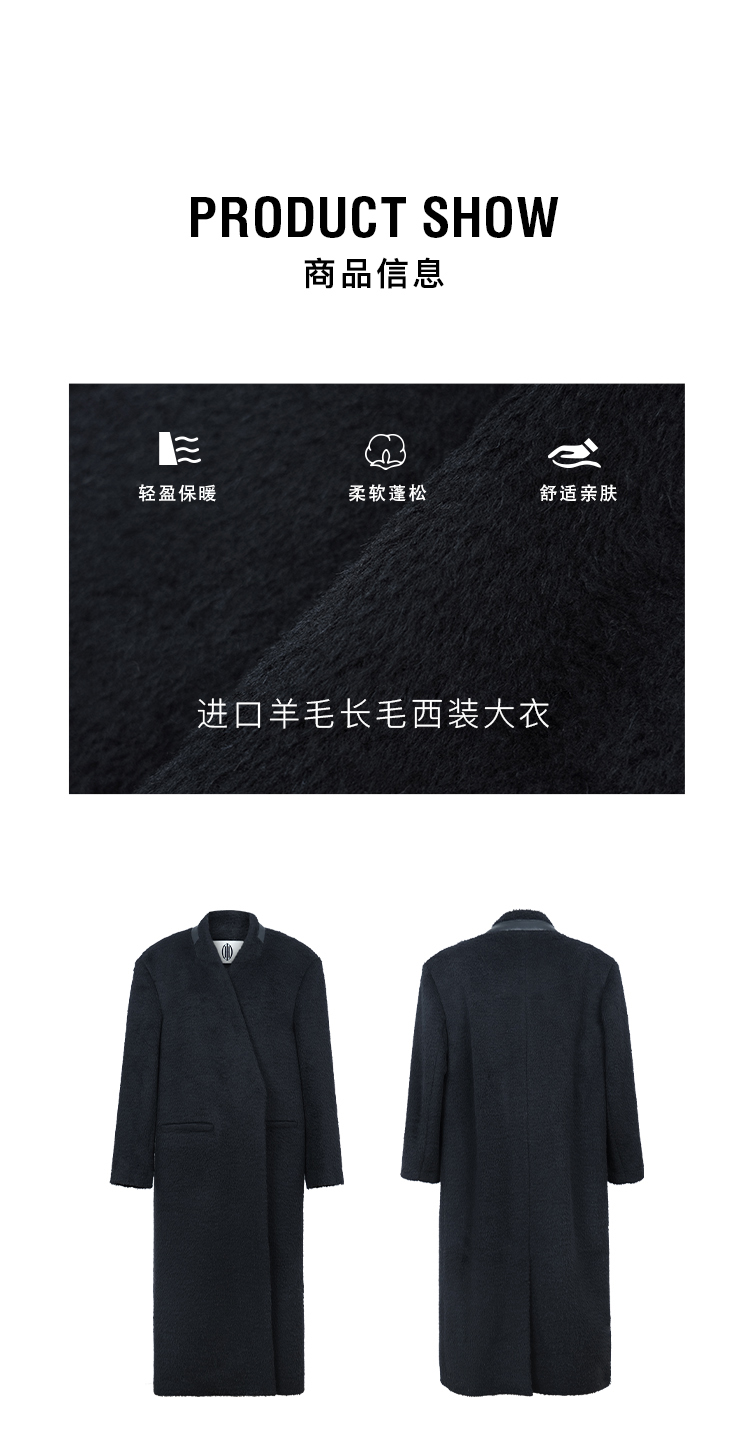 HIDEMI 大秀款进口羊毛长毛苏利V领极简廓形长款立裁西装权威大衣