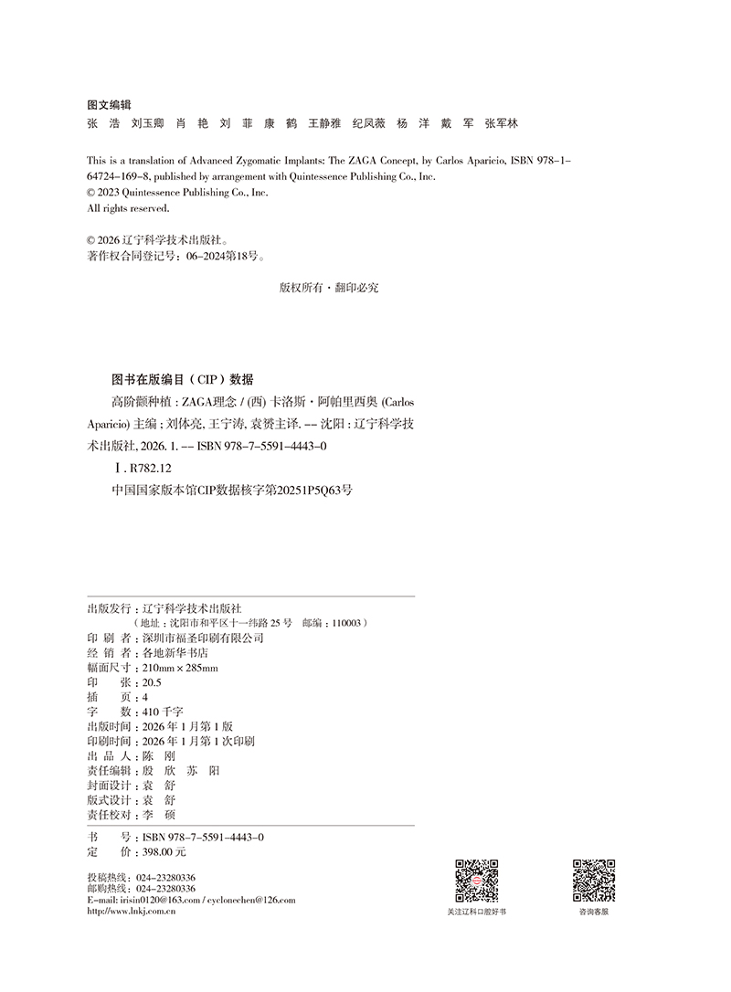 【出版社代发】高阶颧种植 ZAGA理念 刘体亮 王宁涛 袁赟 主译 ZAGA解剖引导个体化入路 精准把控颧解剖结构等 辽宁科学技术出版社