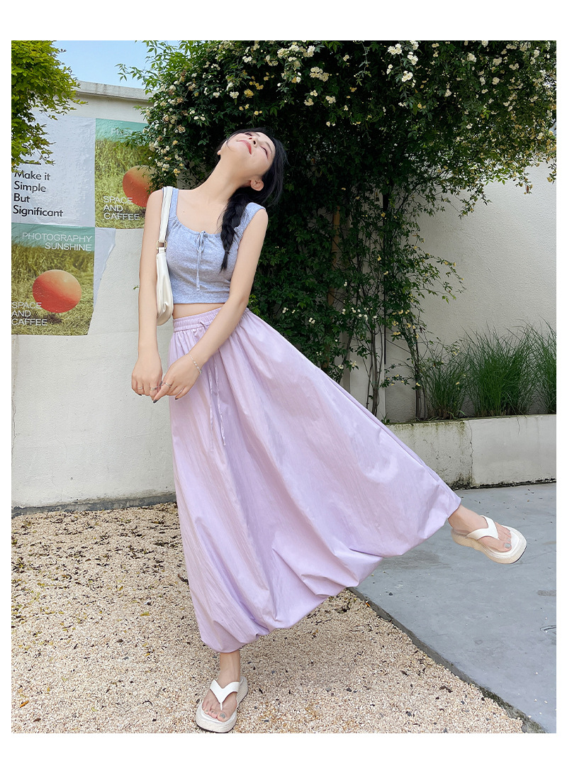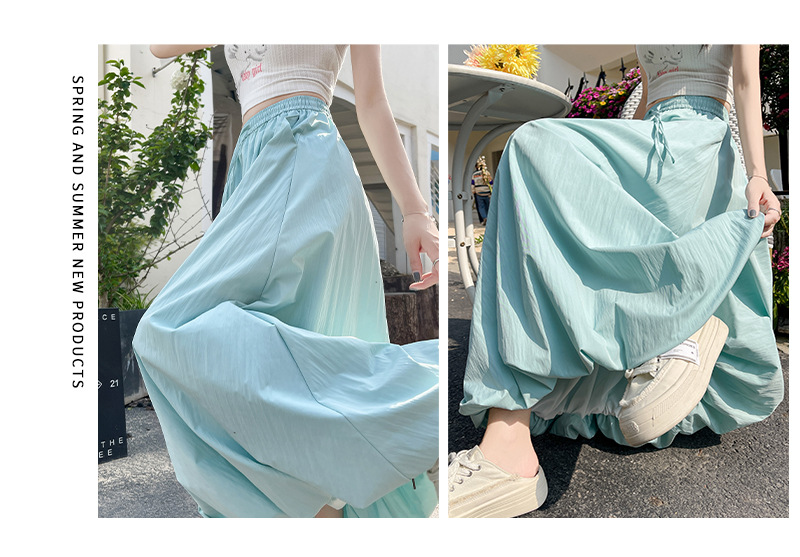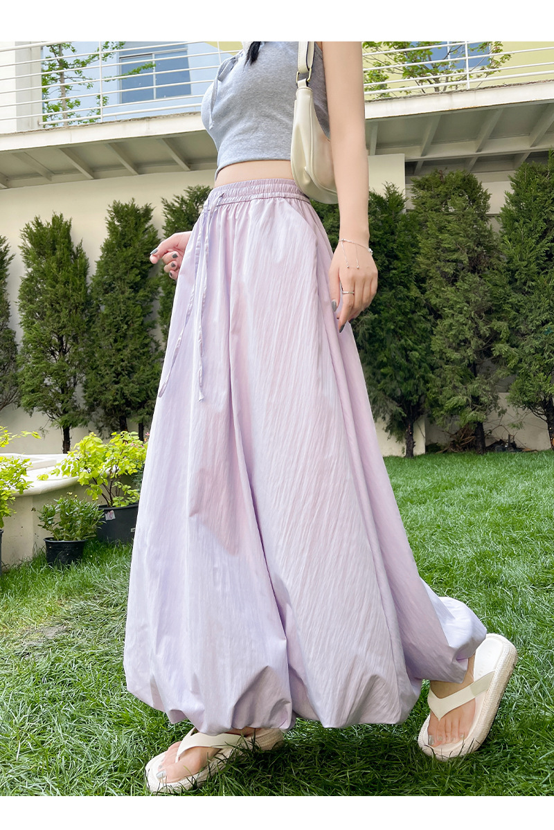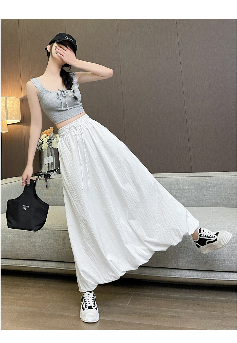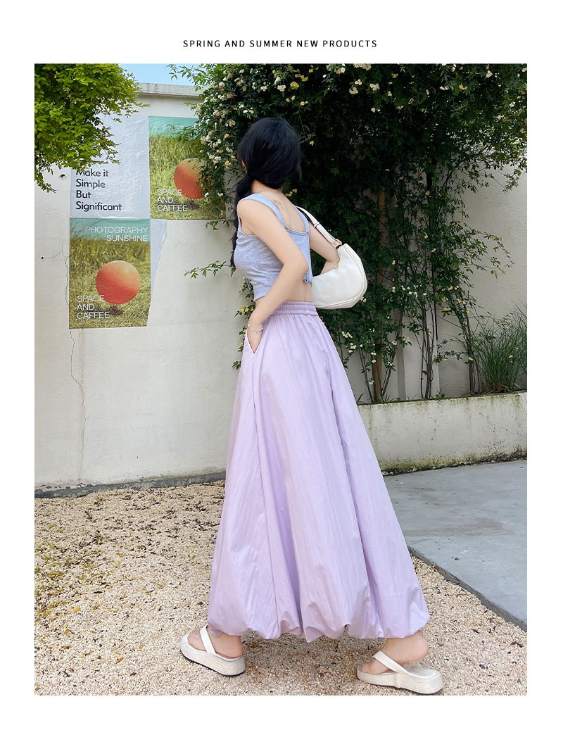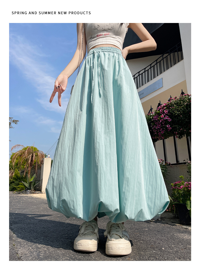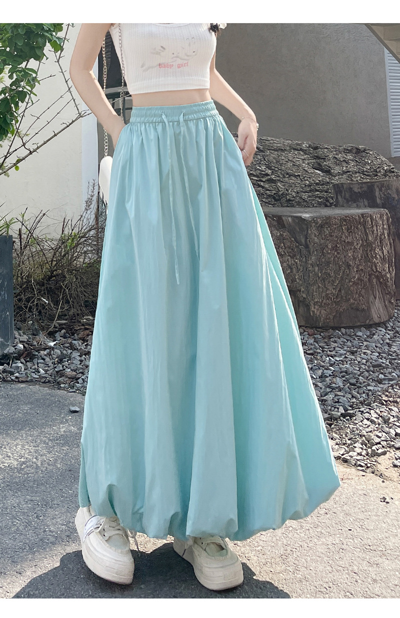 【YW】无忧购韩版松紧高腰垂感显瘦A字长裙甜美蓬蓬灯笼裙H-1385(截单后7天发货)
