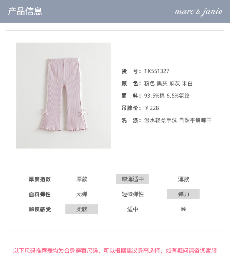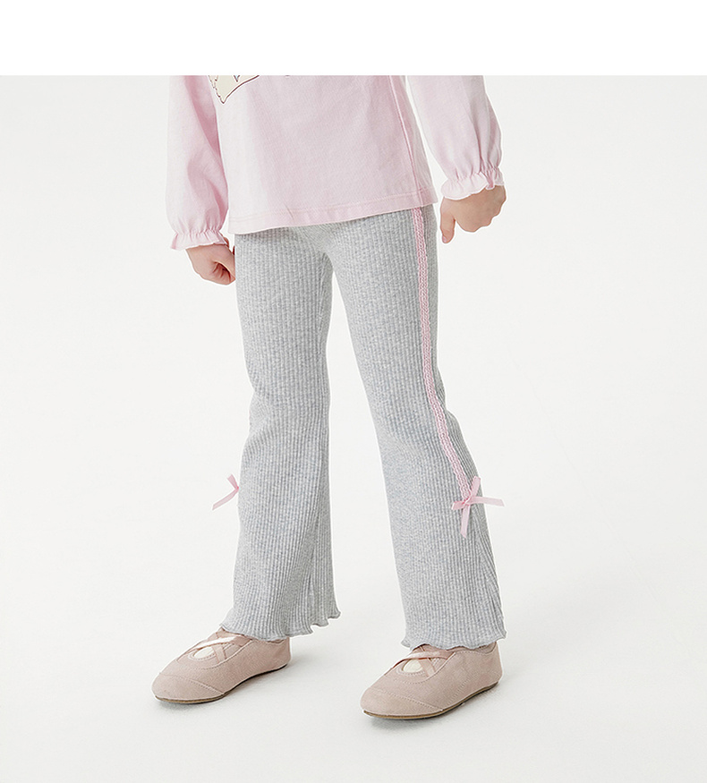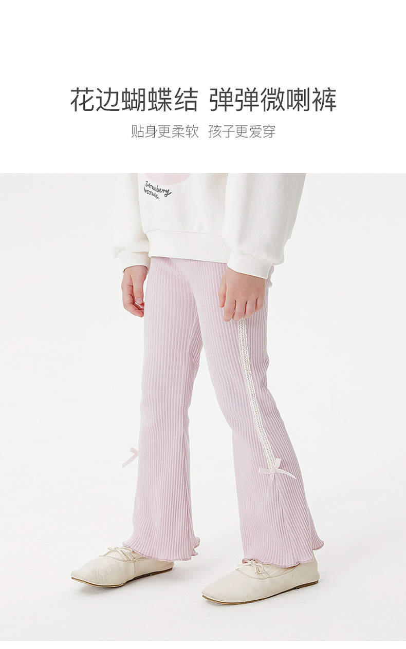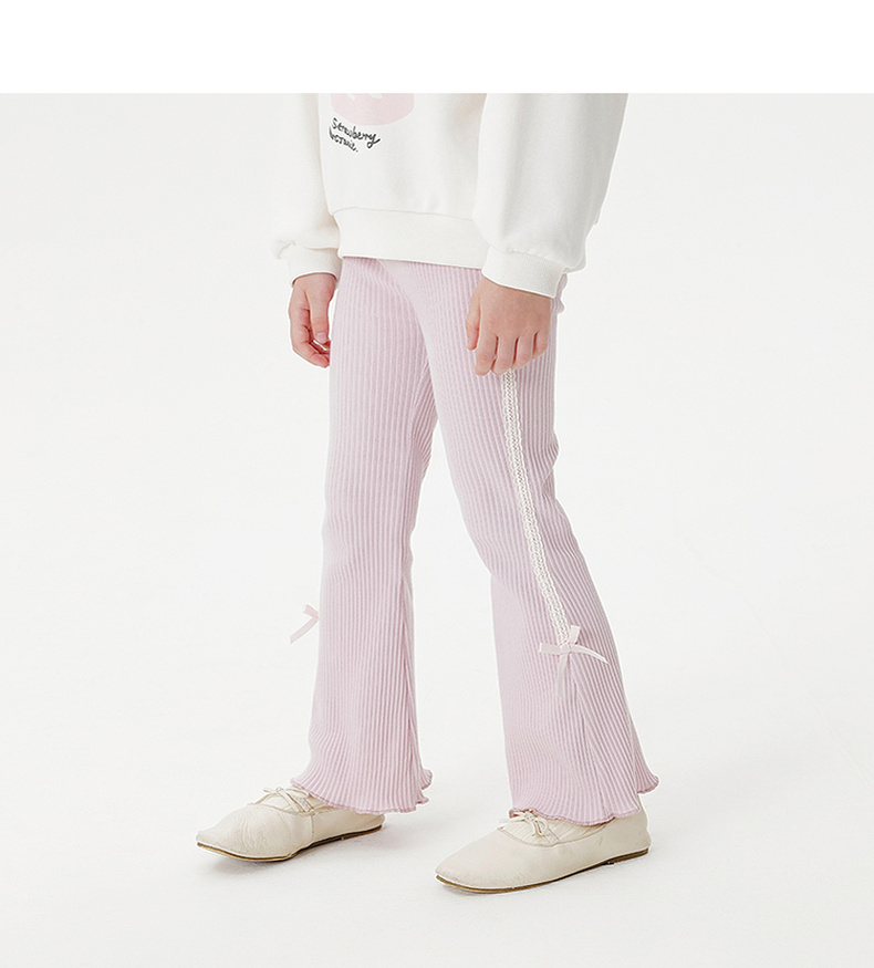 马克珍妮女童花边蝴蝶结弹弹微喇裤 宝宝打底裤子 秋装新款551327