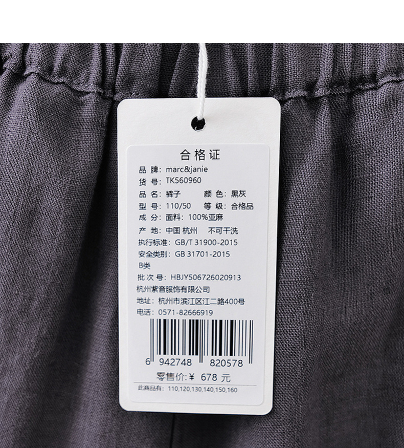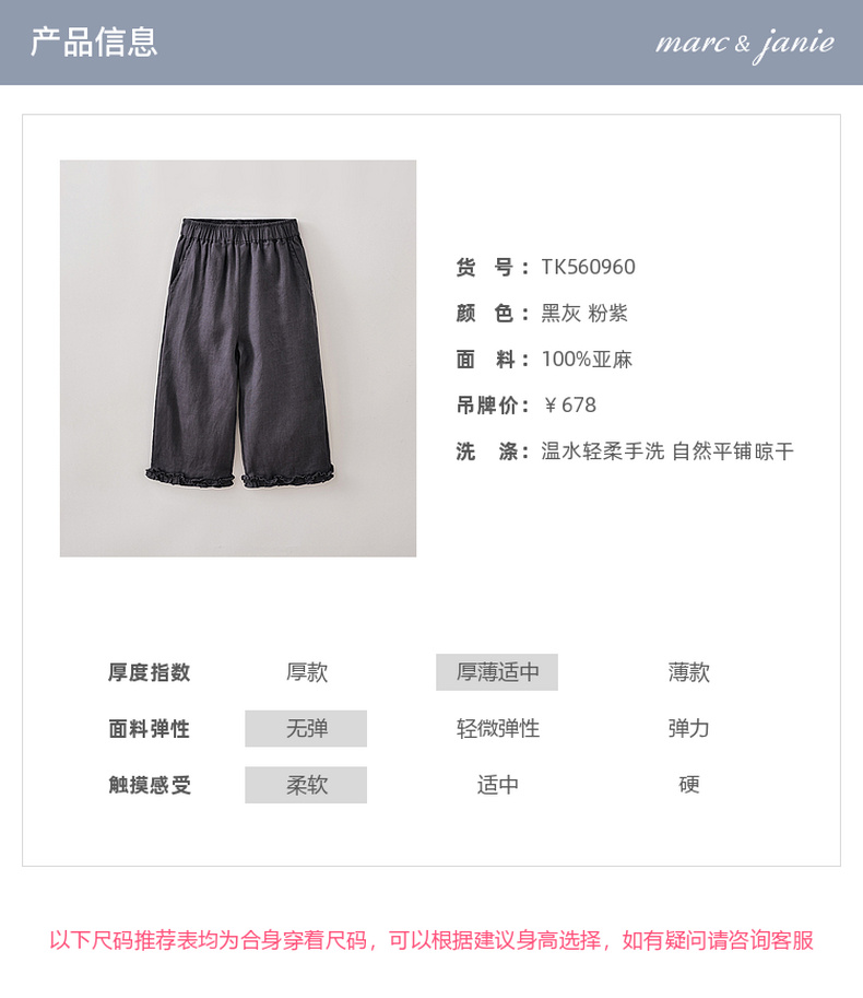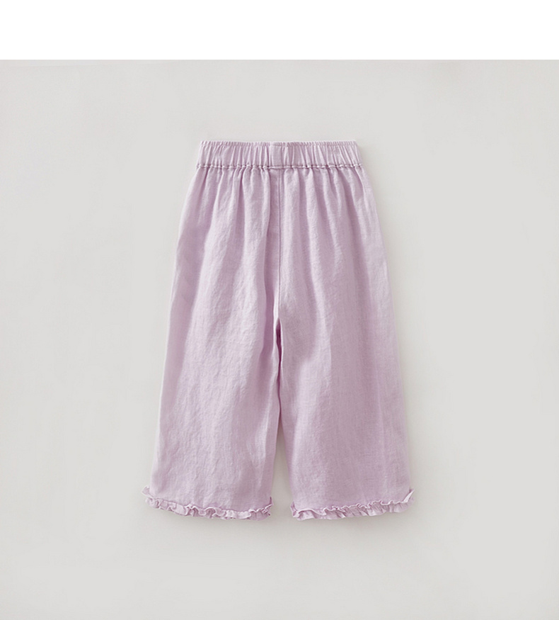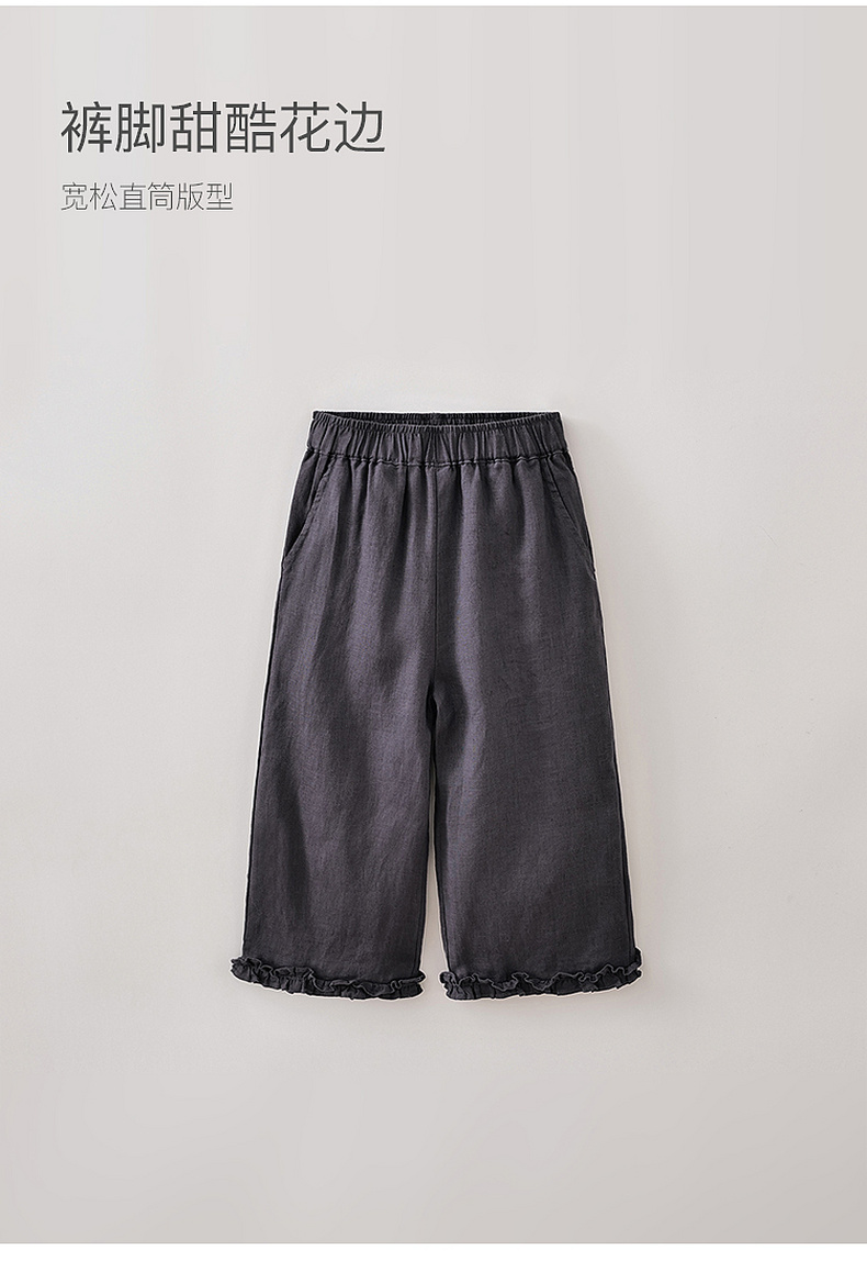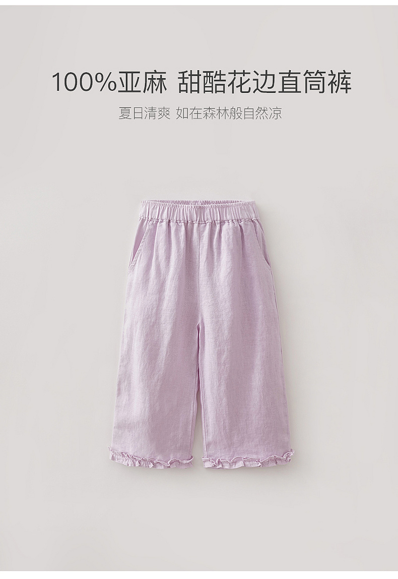 马克珍妮100%亚麻女童甜酷花边直筒裤2026年夏装新款560960