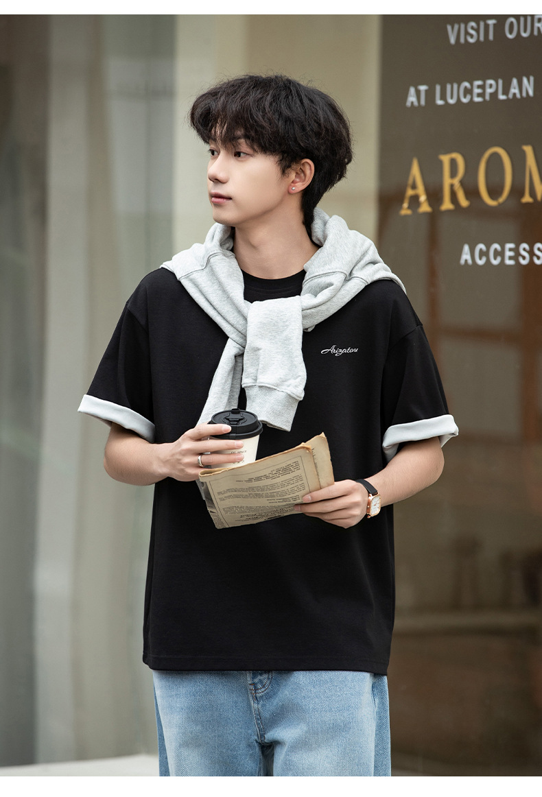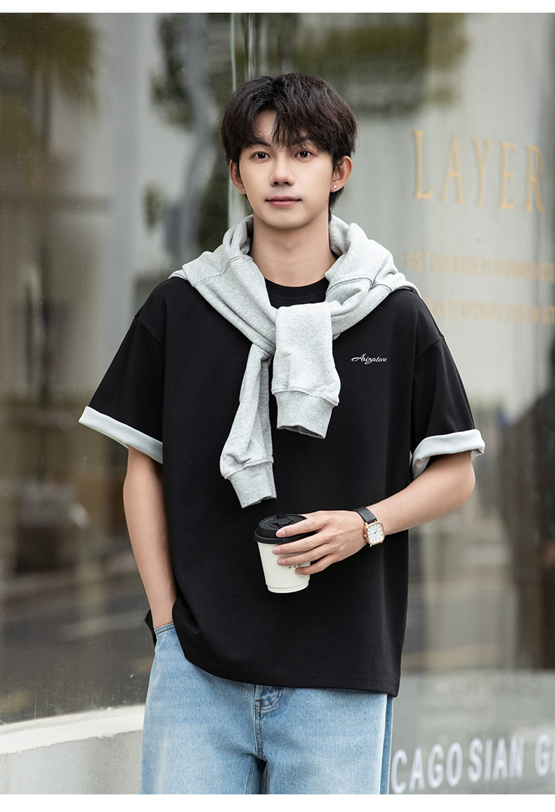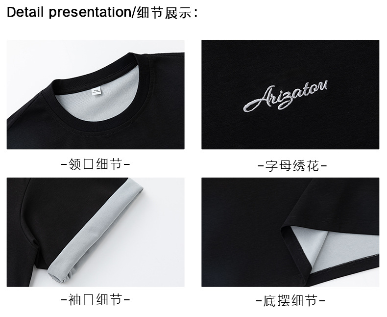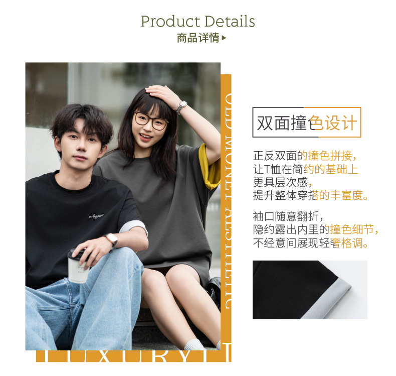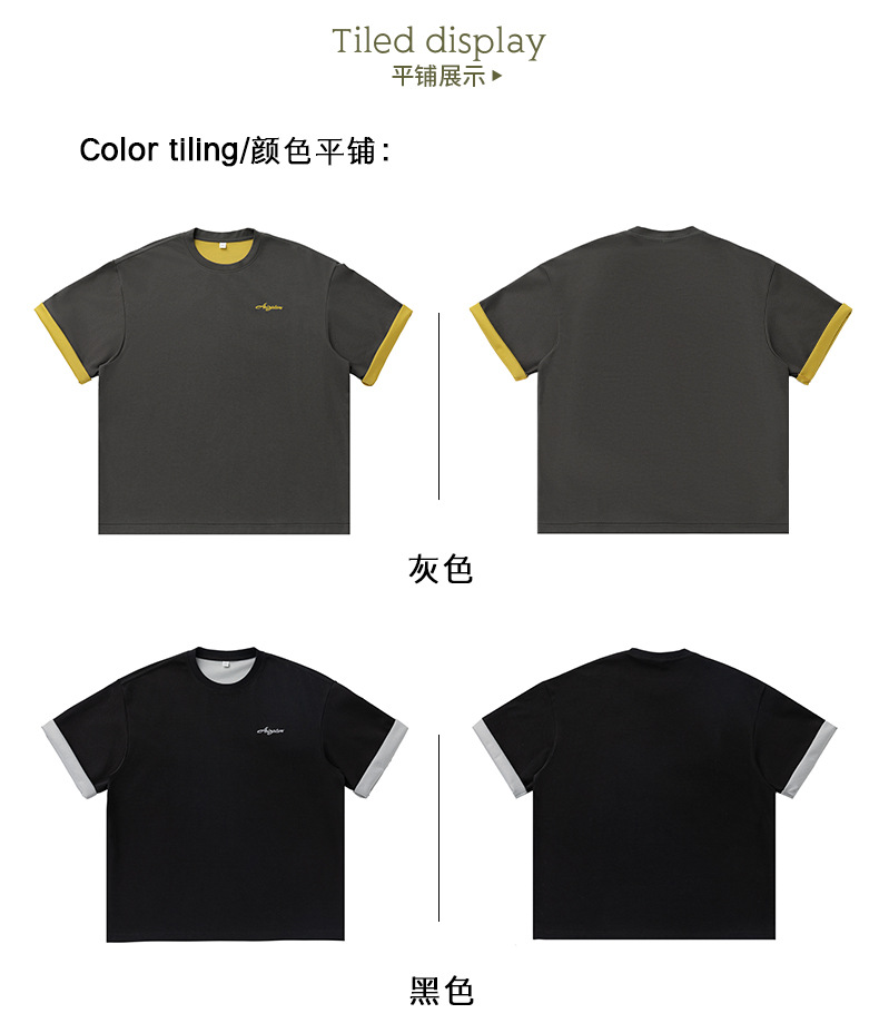【YW】无忧购“清仓大促”轻奢老钱撞色字母刺绣情侣宽松休闲半袖体恤衫MT7214(截单后3-5天发货)