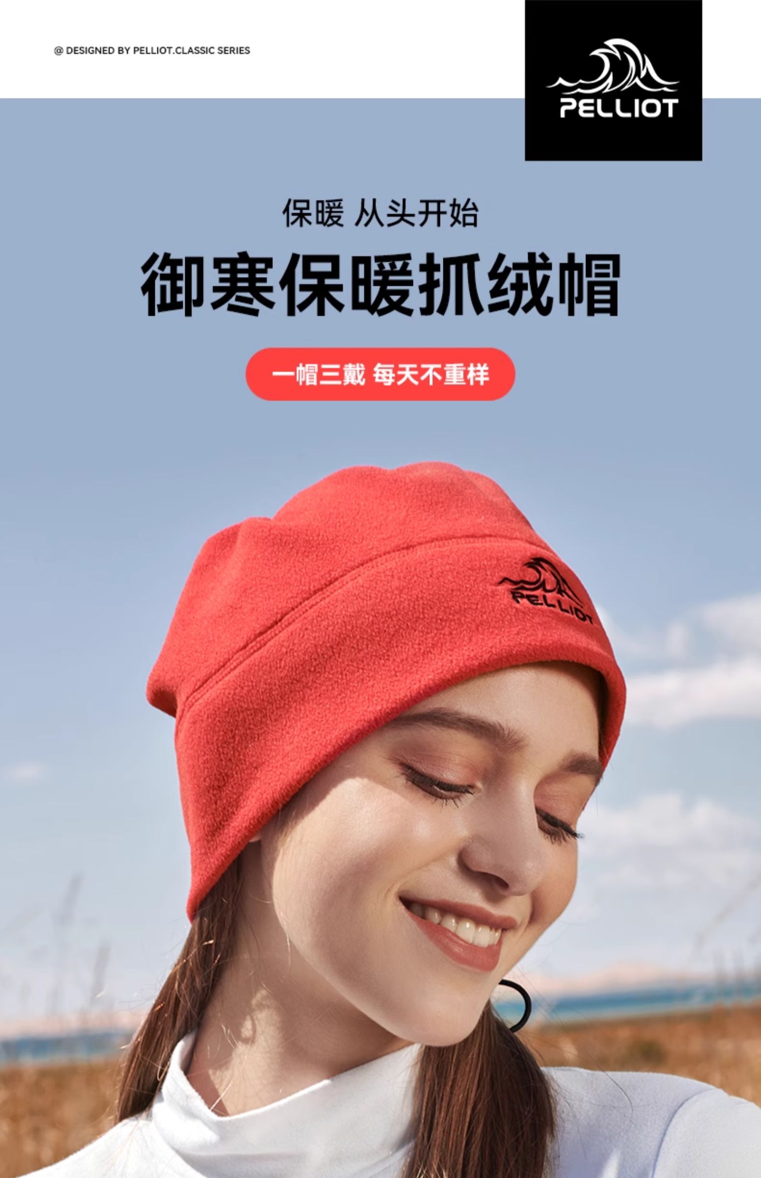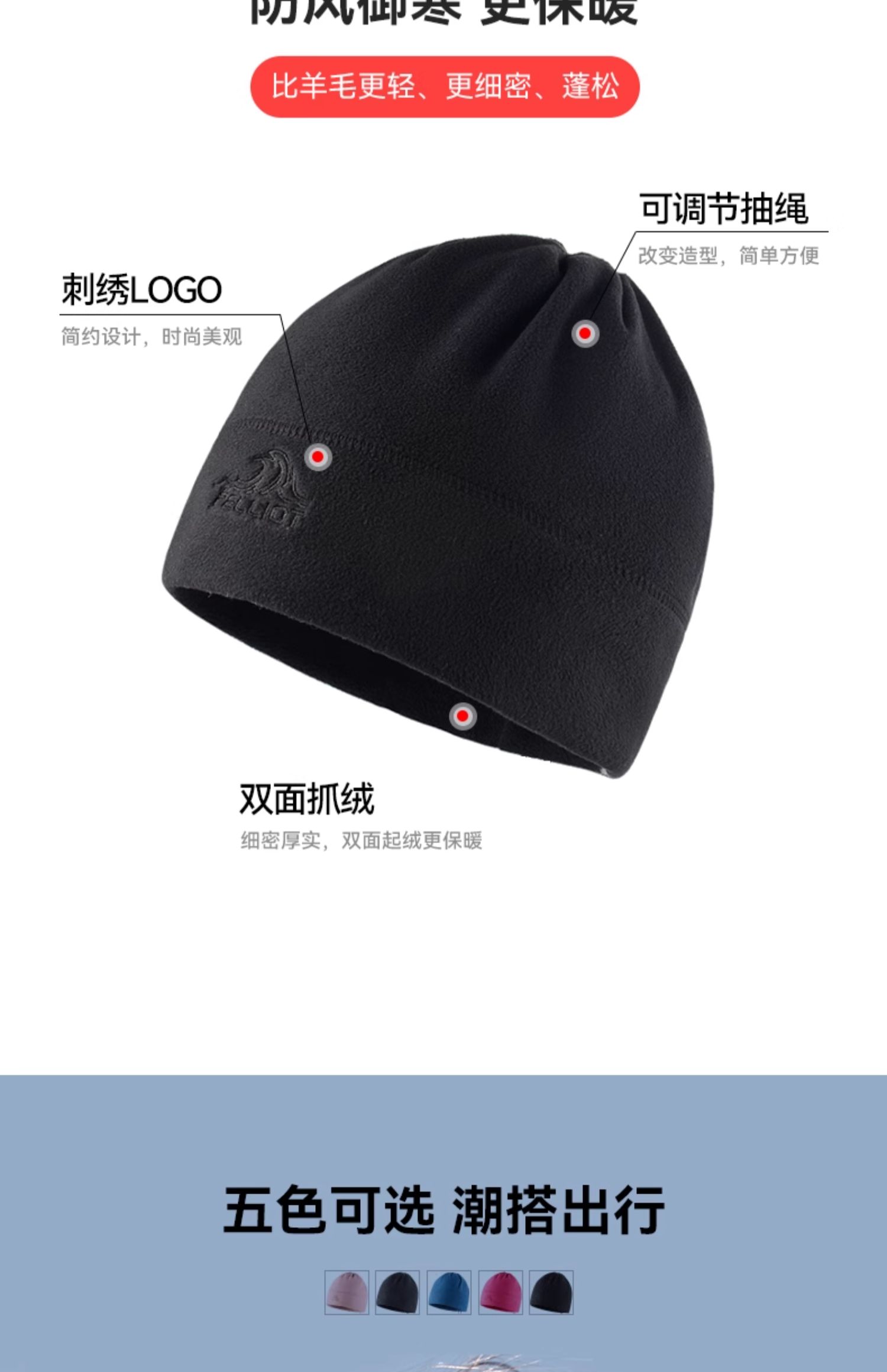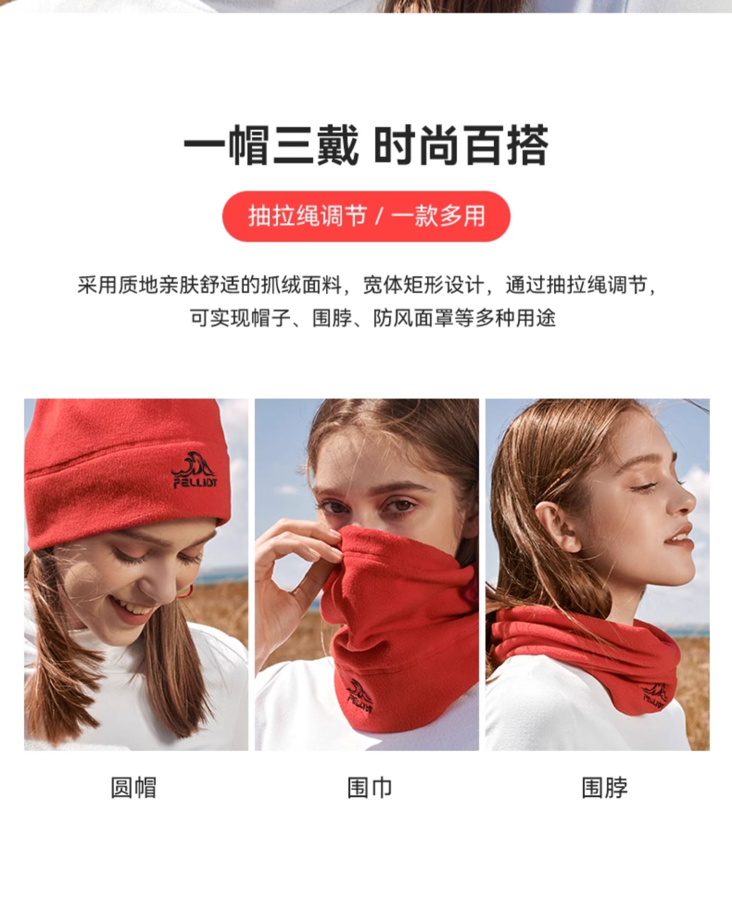 伯希和户外抓绒帽子男防风骑行摇粒绒脖套跑步冷帽防风围脖女