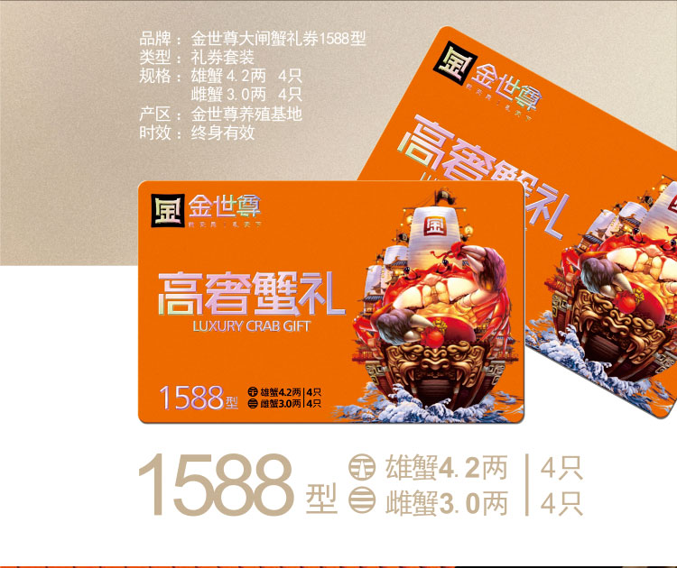 金世尊大闸蟹1588型 雄蟹4.2两 4只/雌蟹3.0两 4只【LY】【包邮直发】