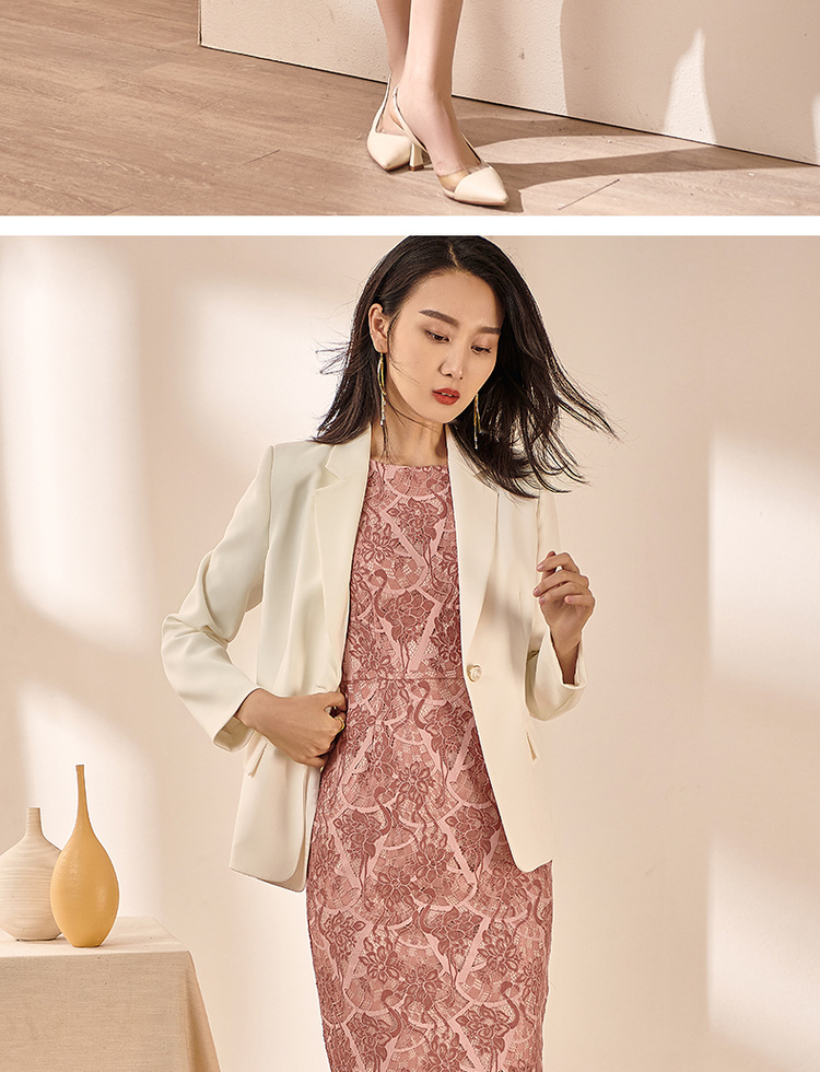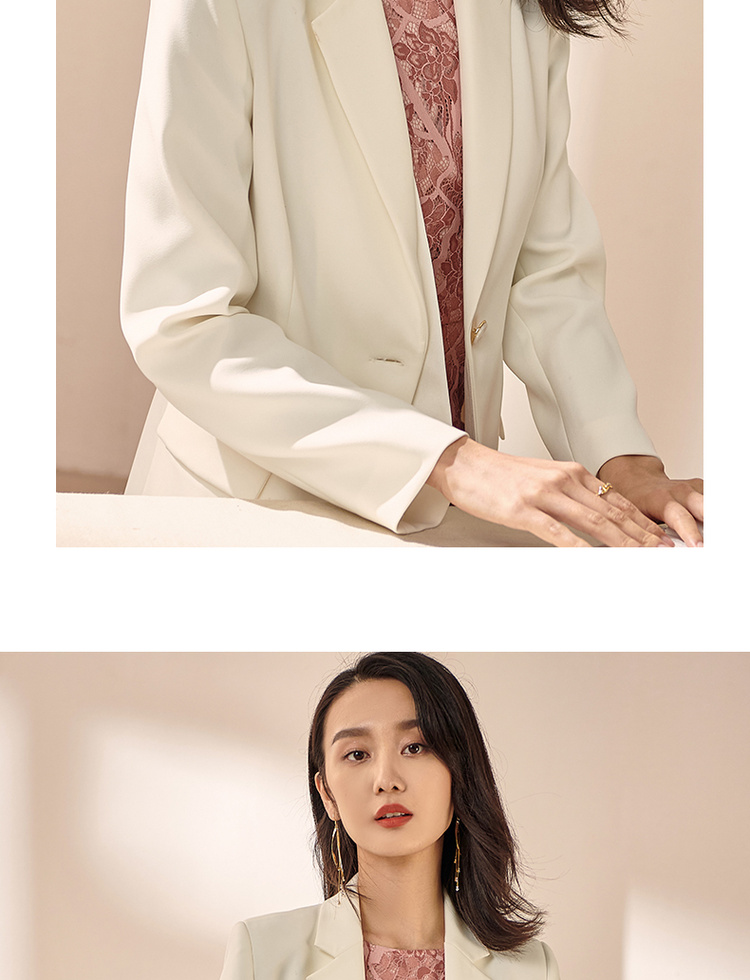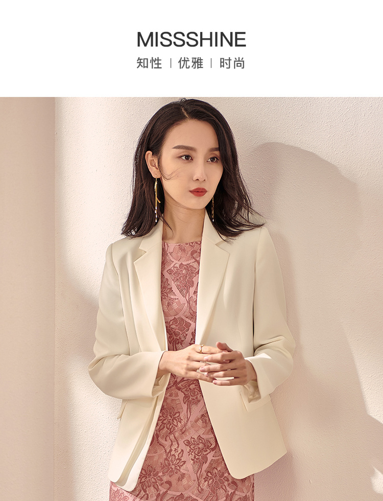 剩XL 米思阳2022春装新款通勤宽松百搭白色一粒扣假两件西装外套女0889