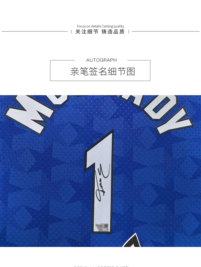 收藏系列 麦迪 魔术队1号蓝色 亲笔签名球衣