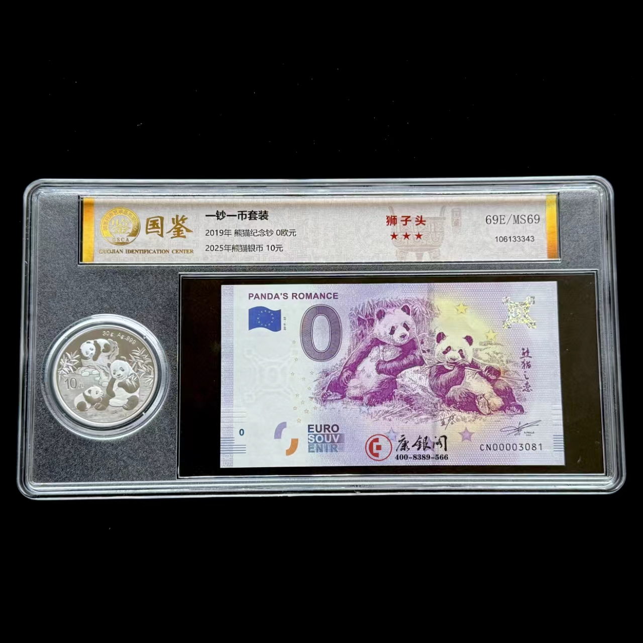 评级版《2019年0欧元熊猫纪念钞&2025年熊猫银币(30克)套装》