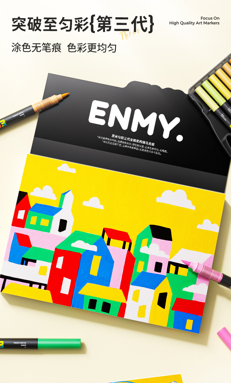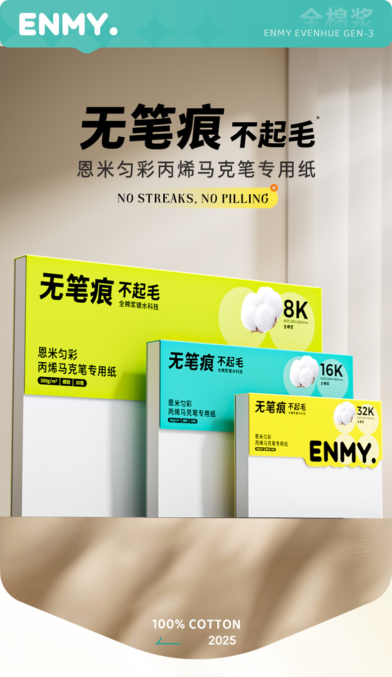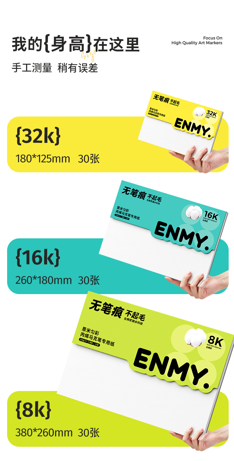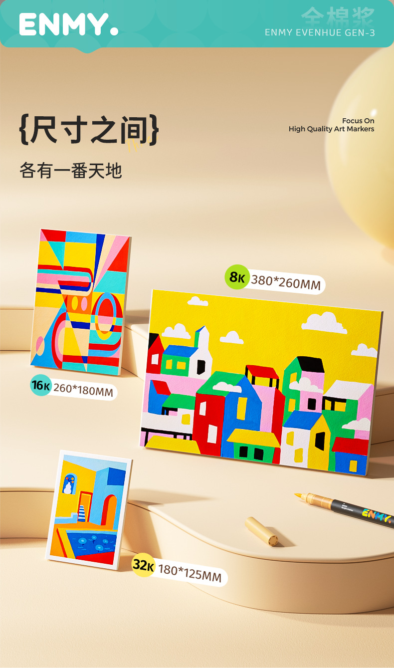 【丙烯马克笔专用纸】恩米ENMY匀彩丙烯马克笔专用纸300g 无笔痕专用绘画纸全棉浆水彩纸