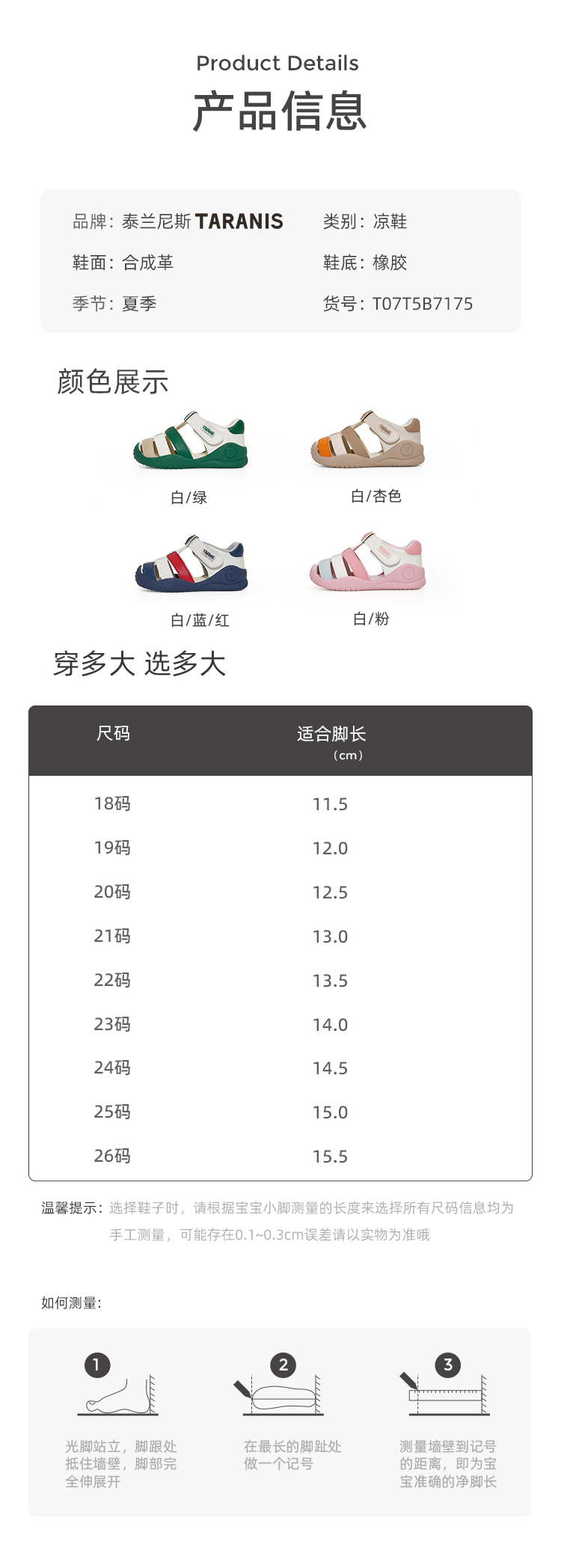 泰兰尼斯夏季婴童段包头镂空学步鞋凉鞋T07T5B7175