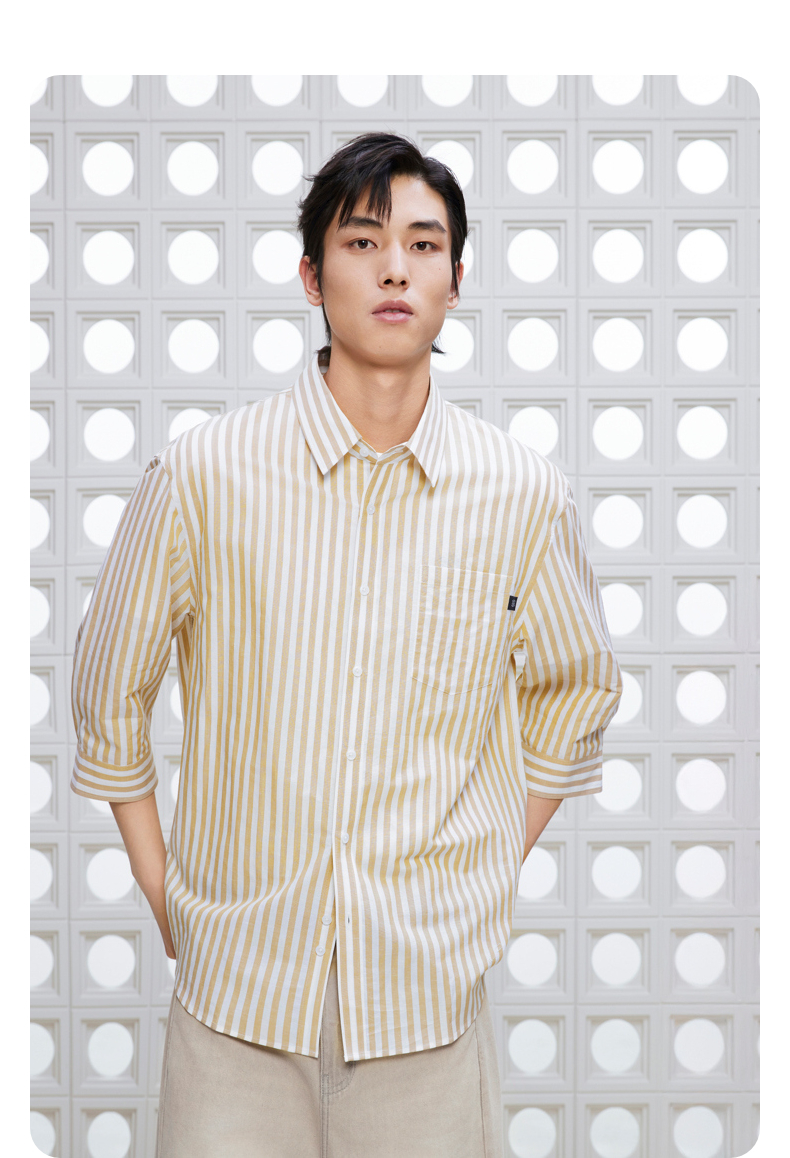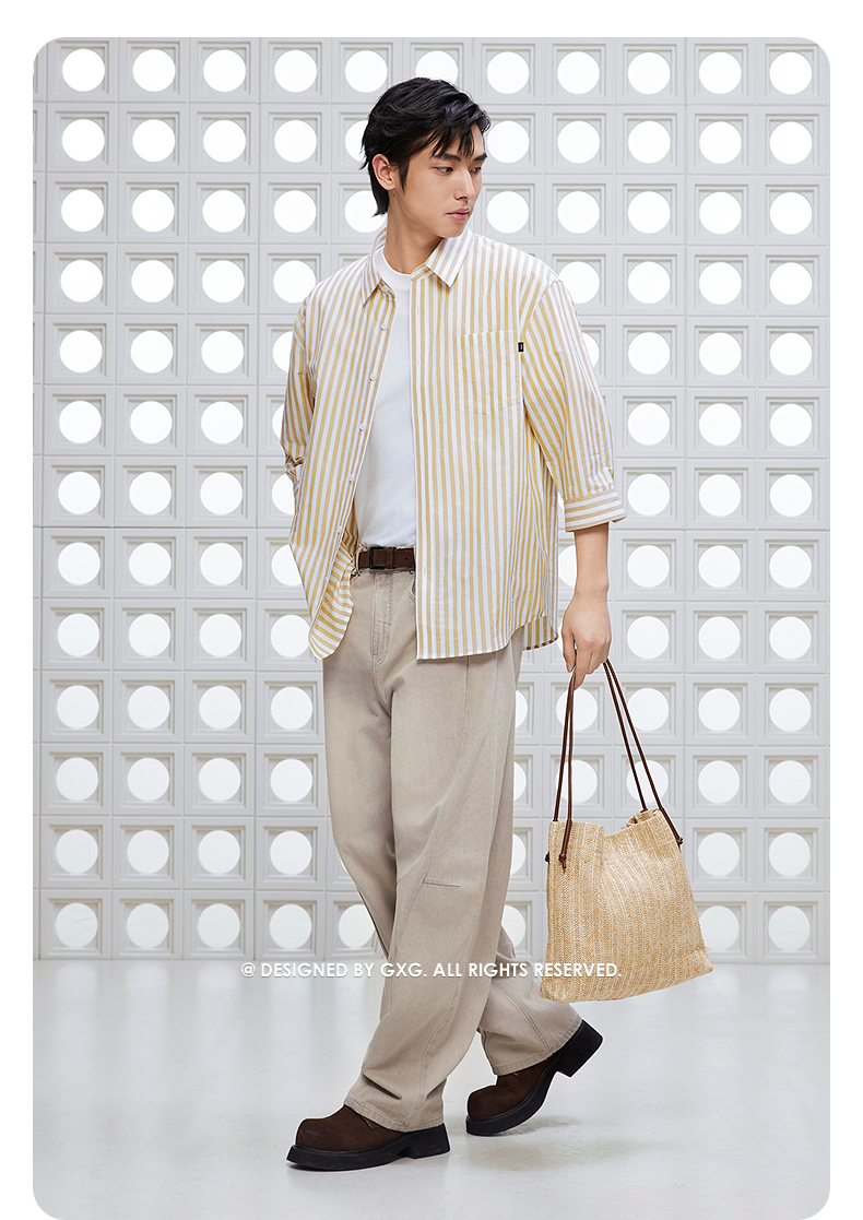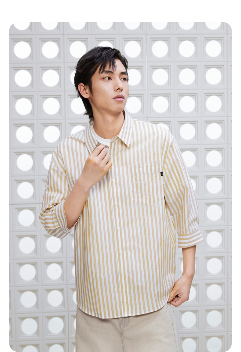 GXG男装 双色条纹设计衬衫通勤七分袖衬衣休闲上装 2025夏季新品