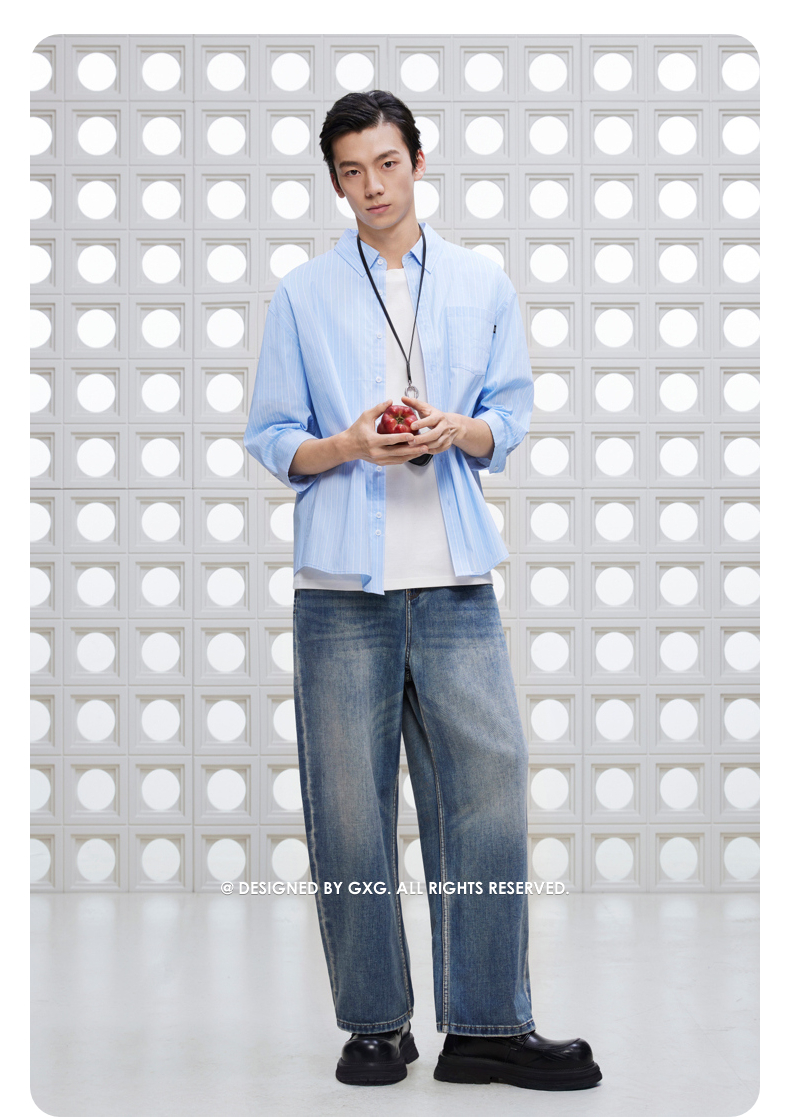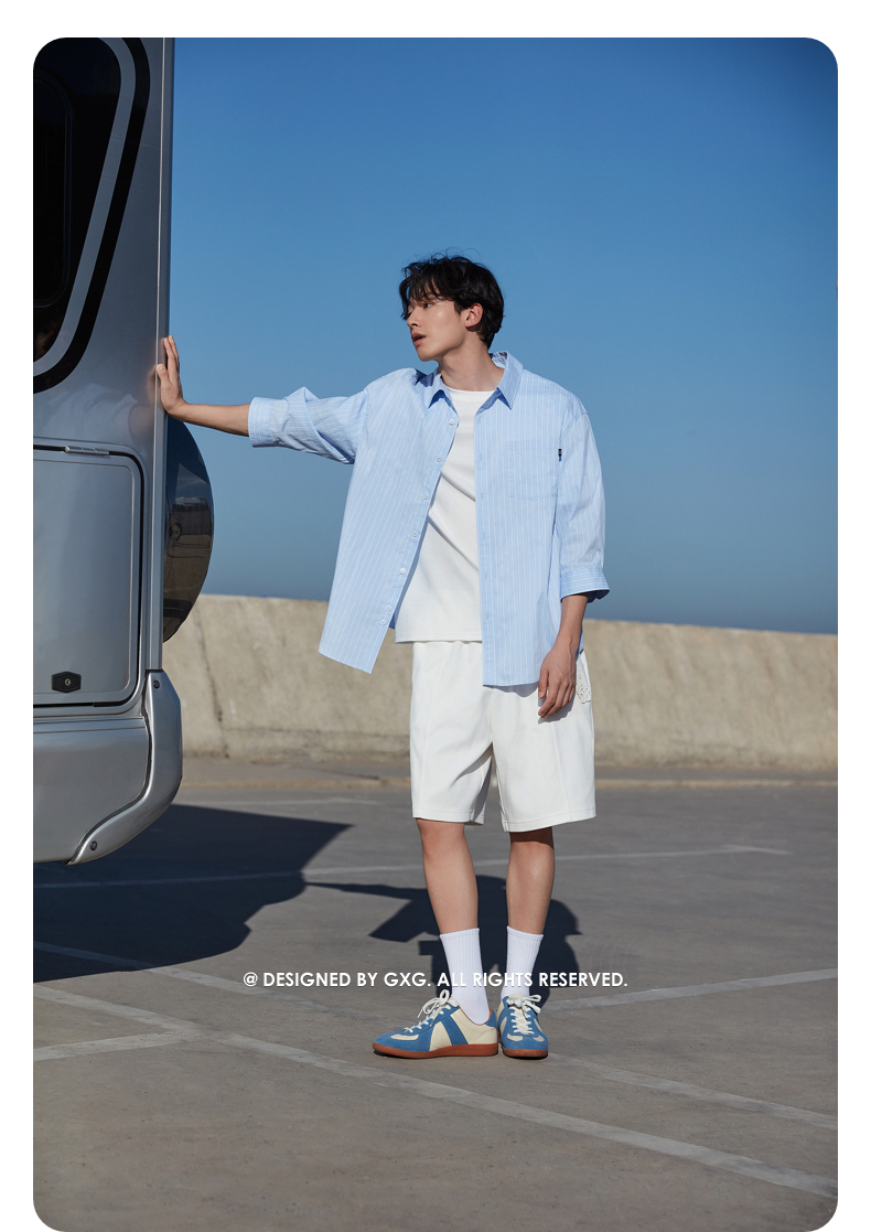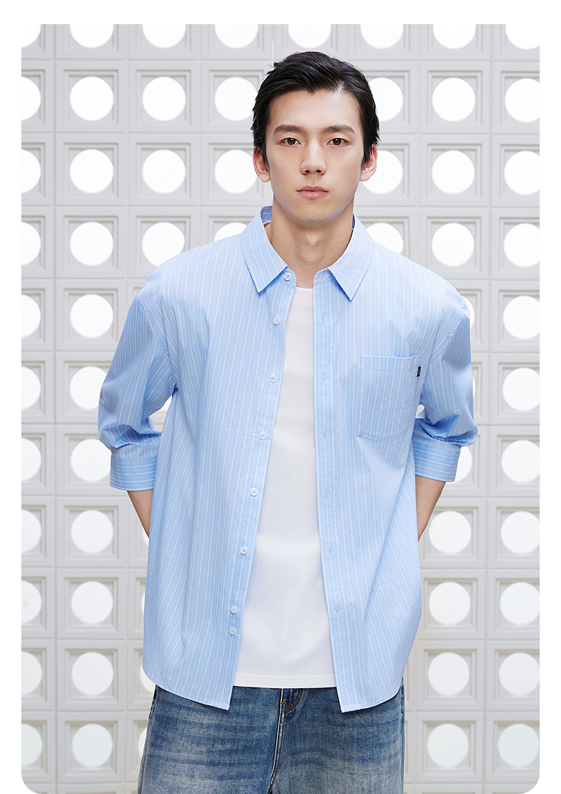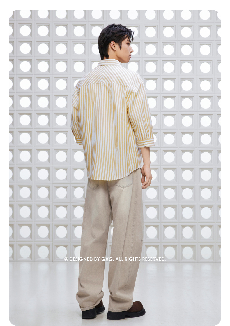 GXG男装 双色条纹设计衬衫通勤七分袖衬衣休闲上装 2025夏季新品