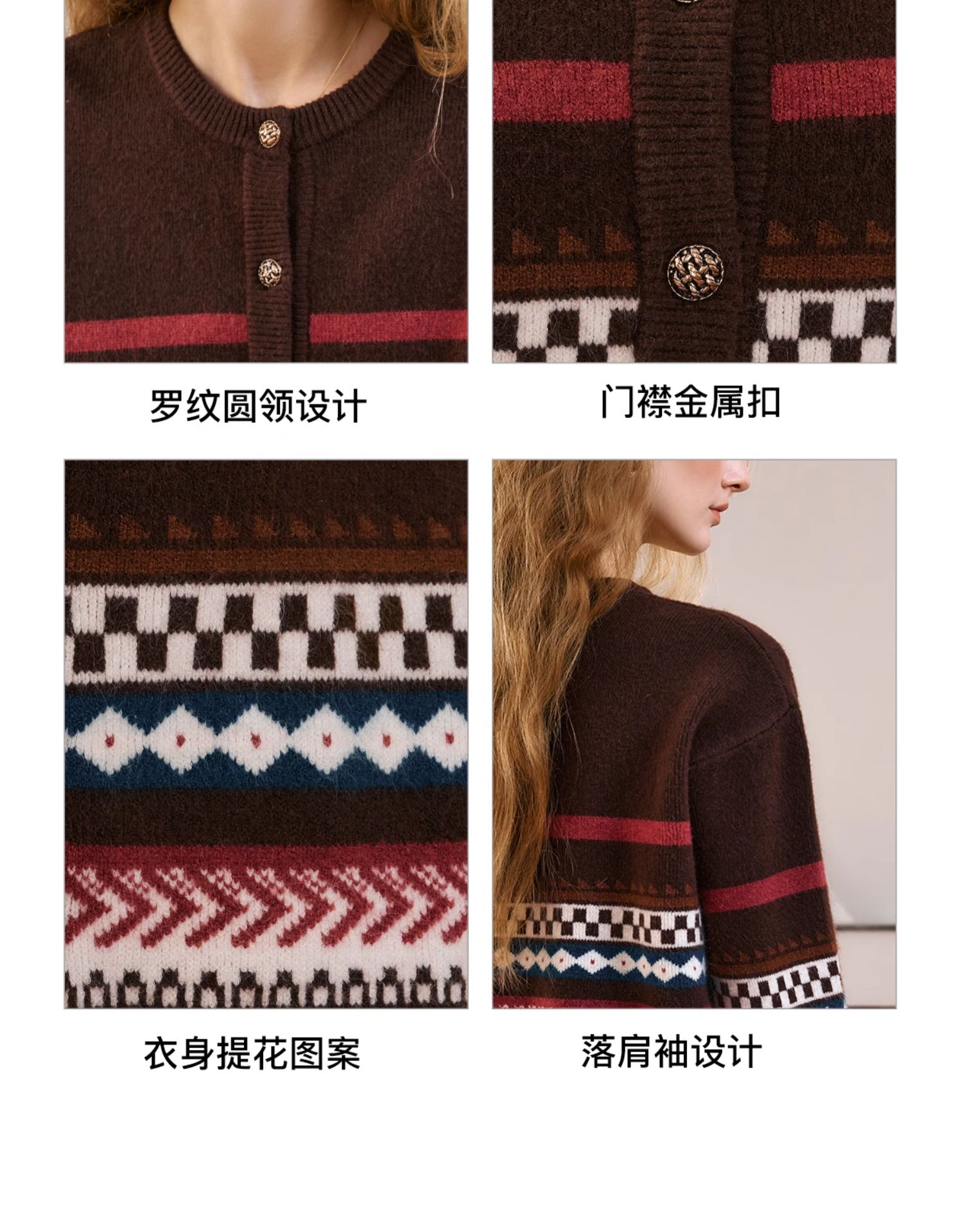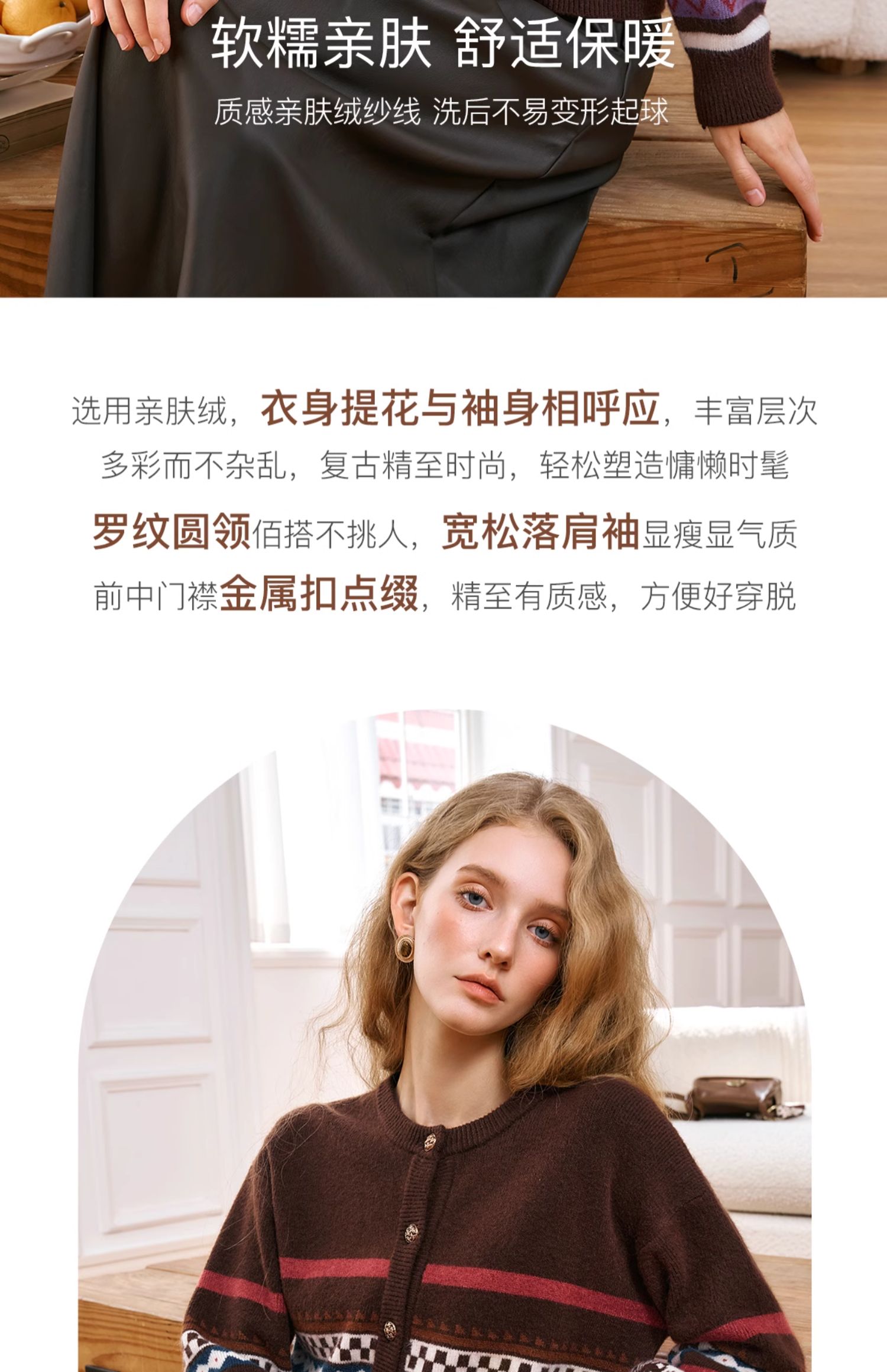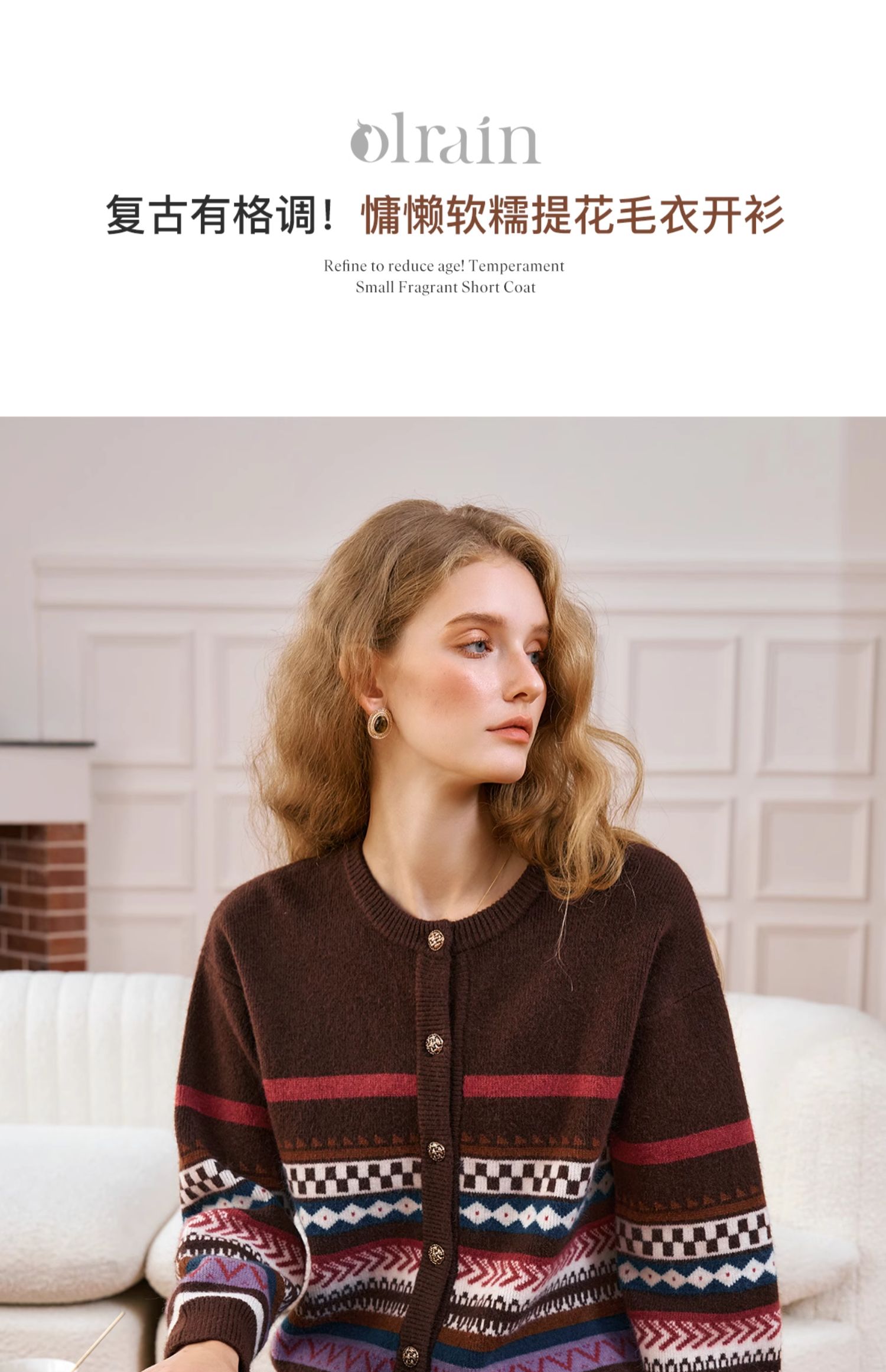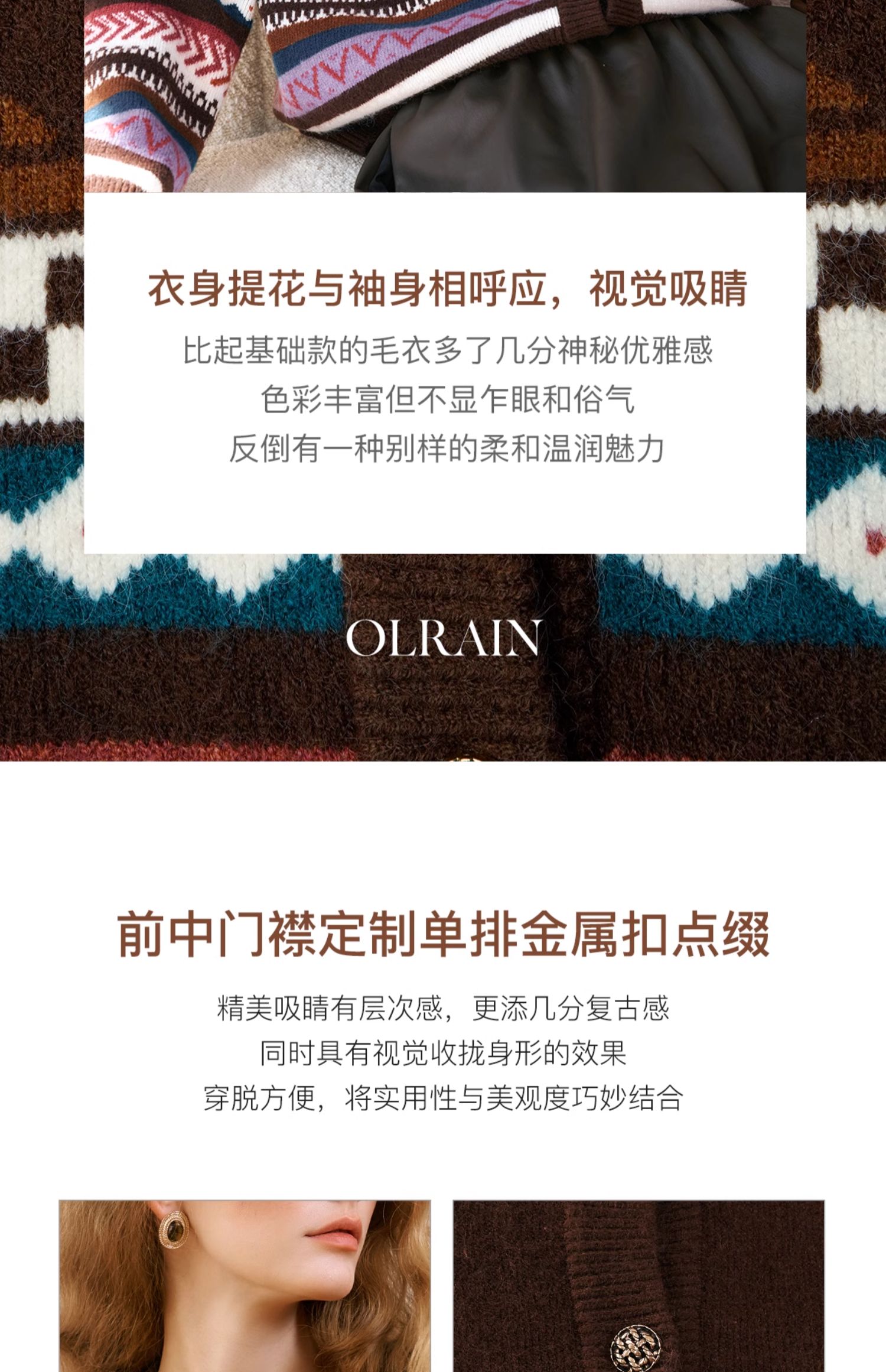 OLrain欧芮儿法式咖色毛衣女秋季2024年新款慵懒软糯提花针织开衫