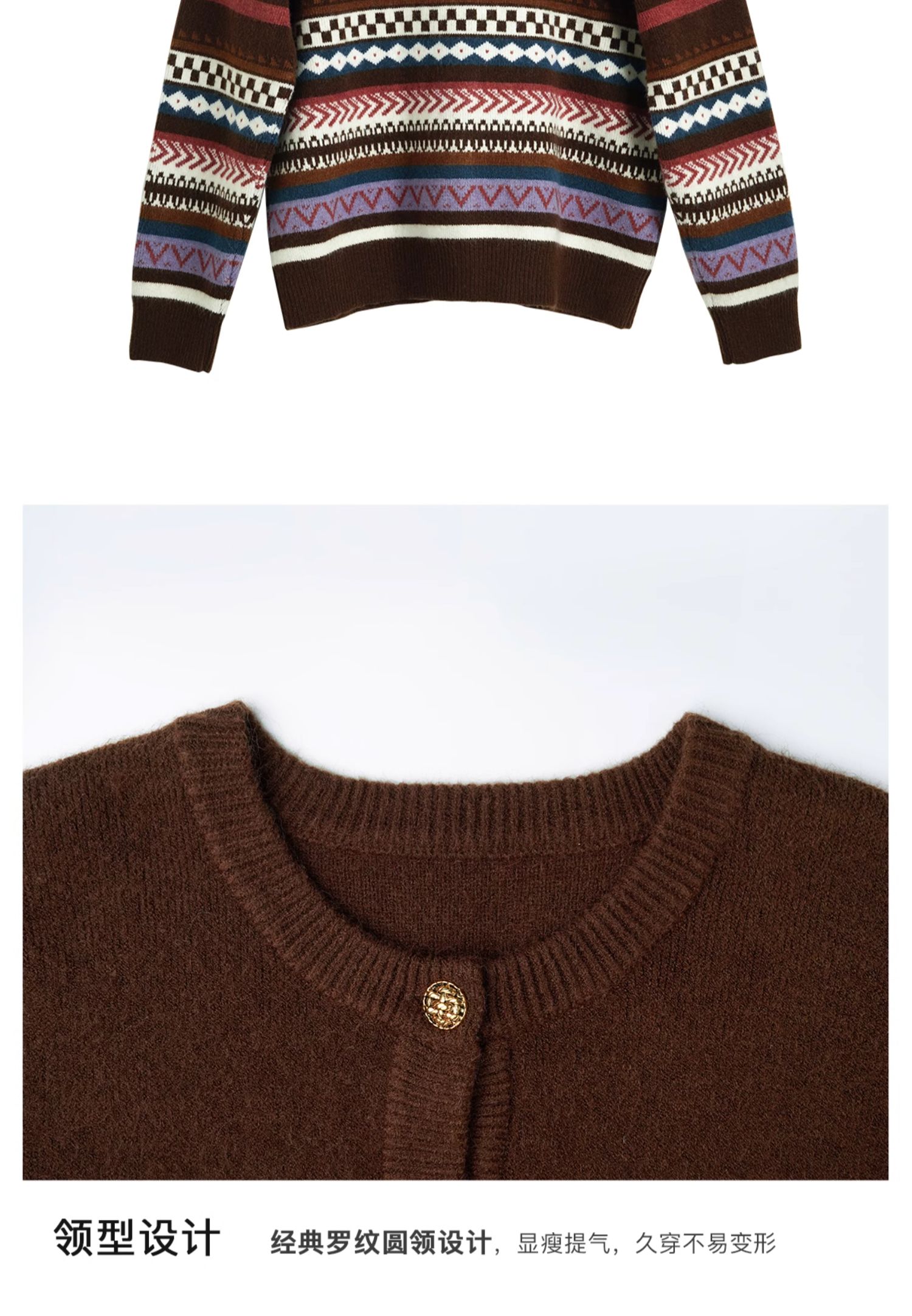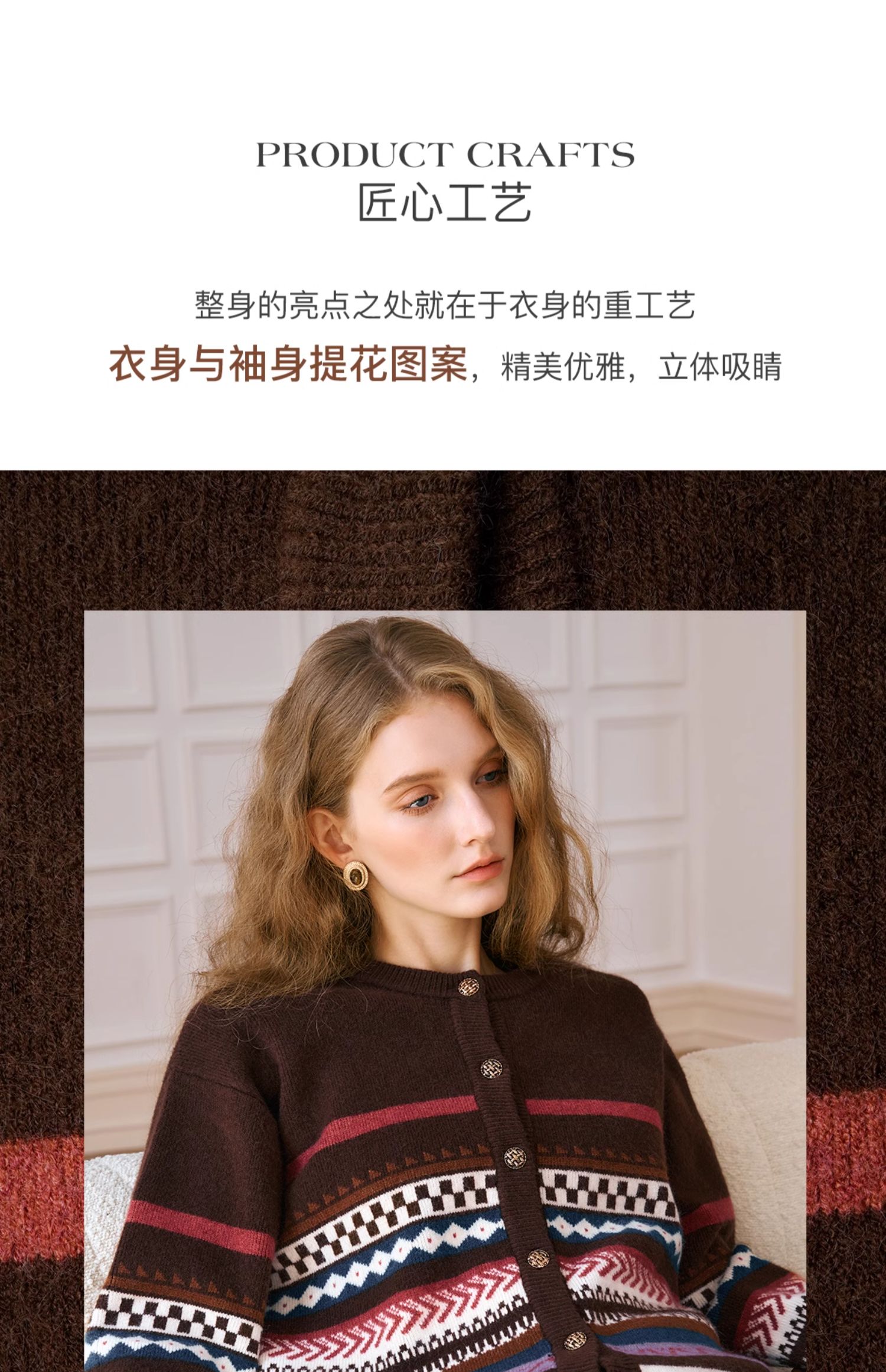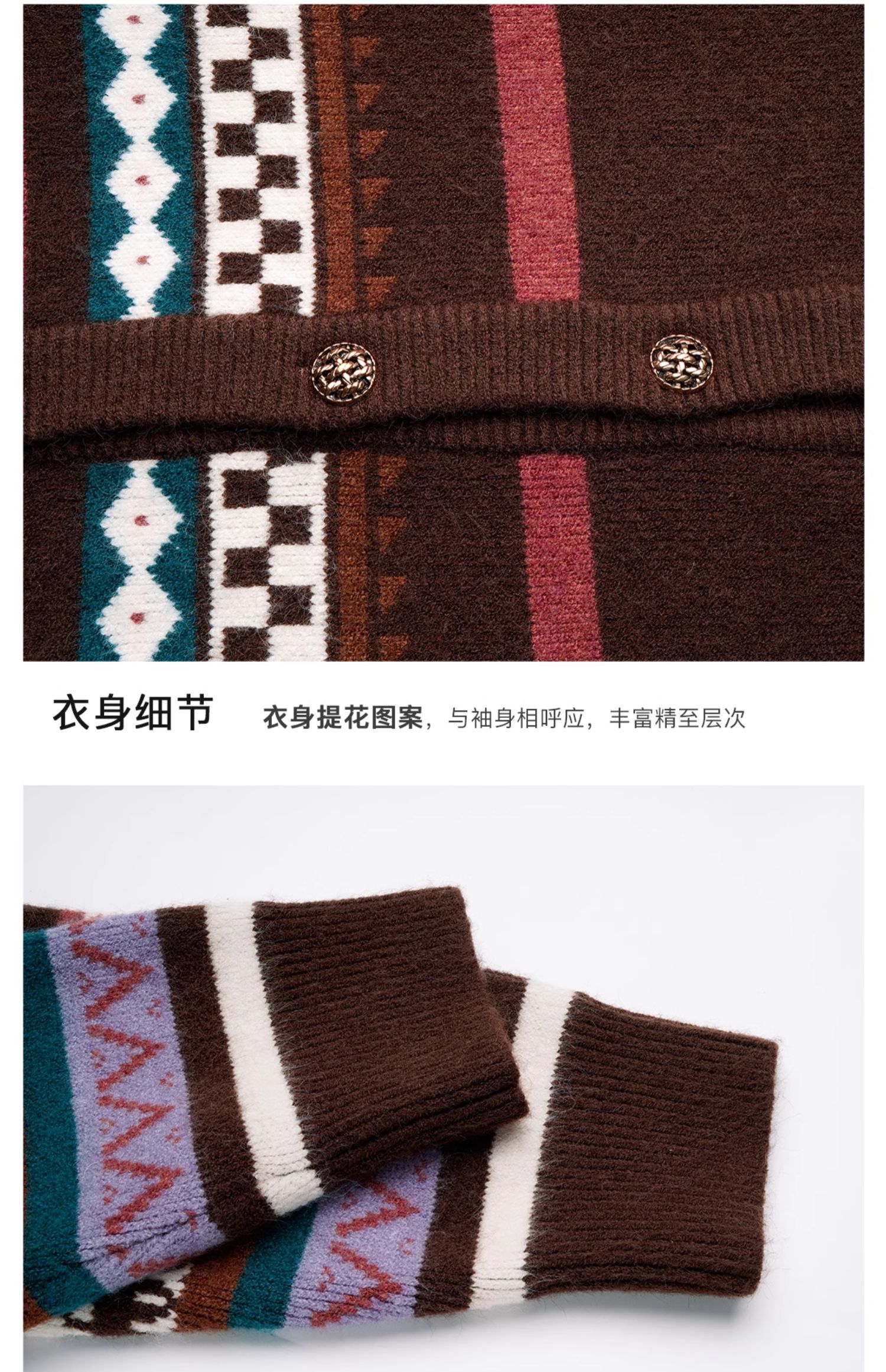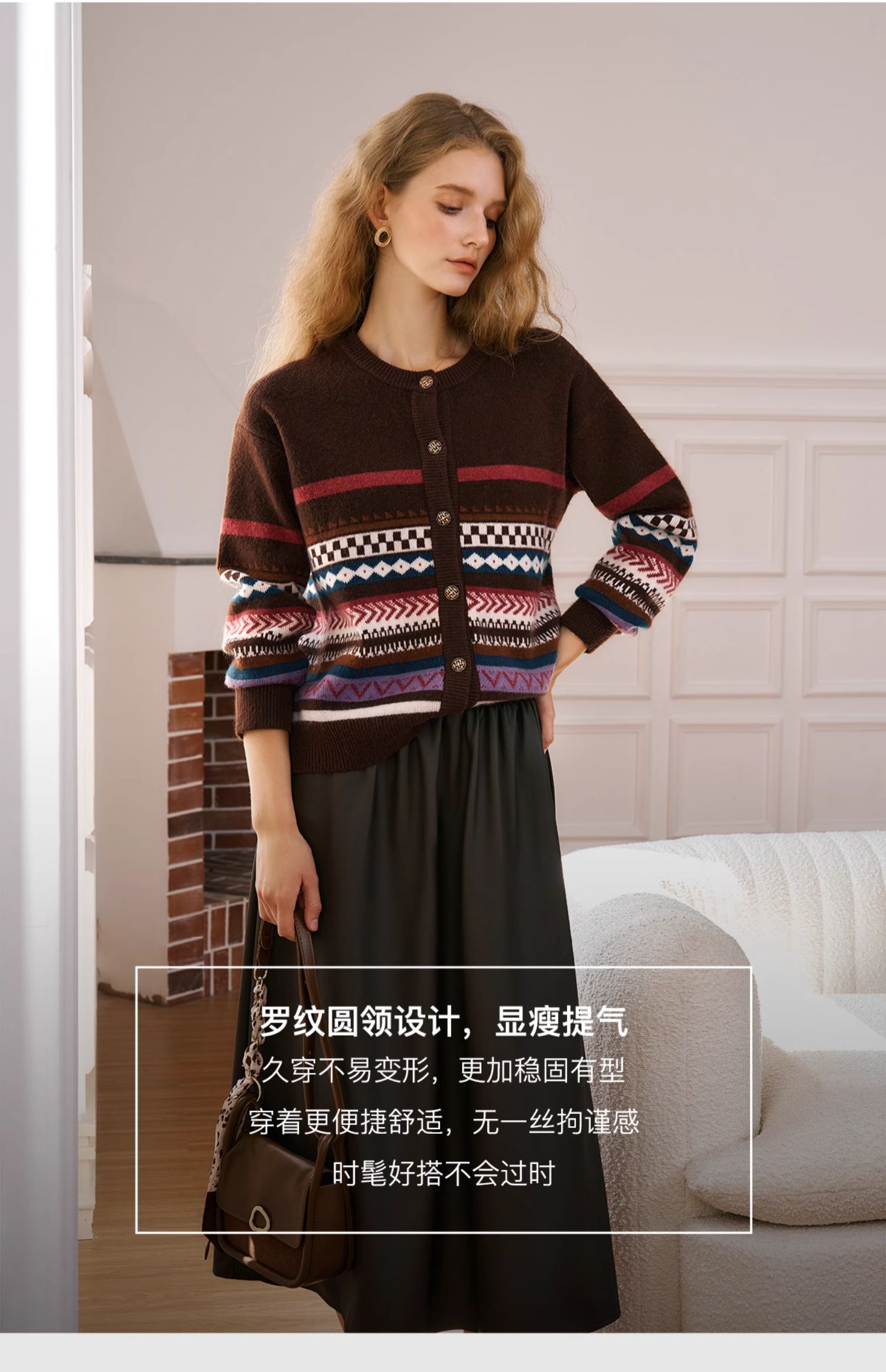 OLrain欧芮儿法式咖色毛衣女秋季2024年新款慵懒软糯提花针织开衫