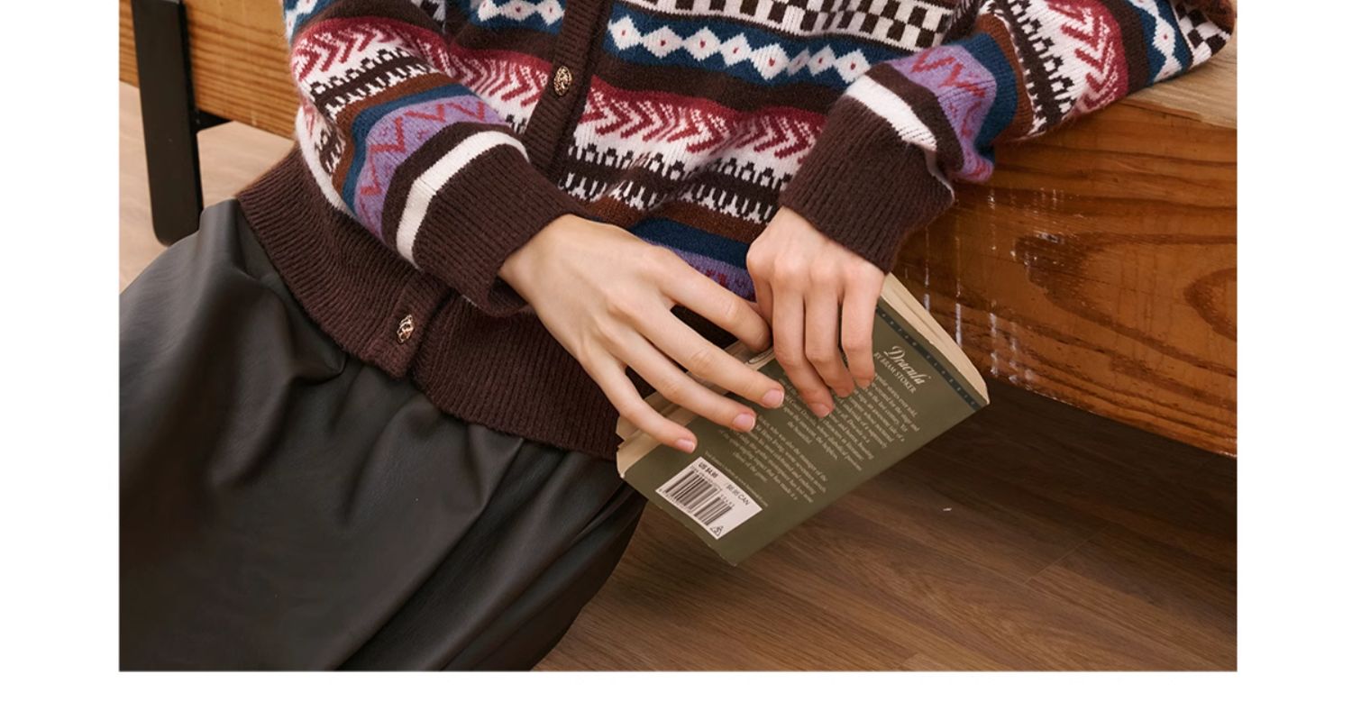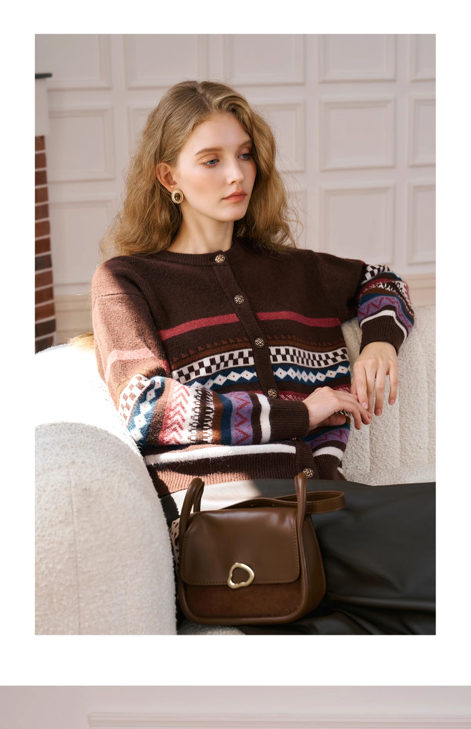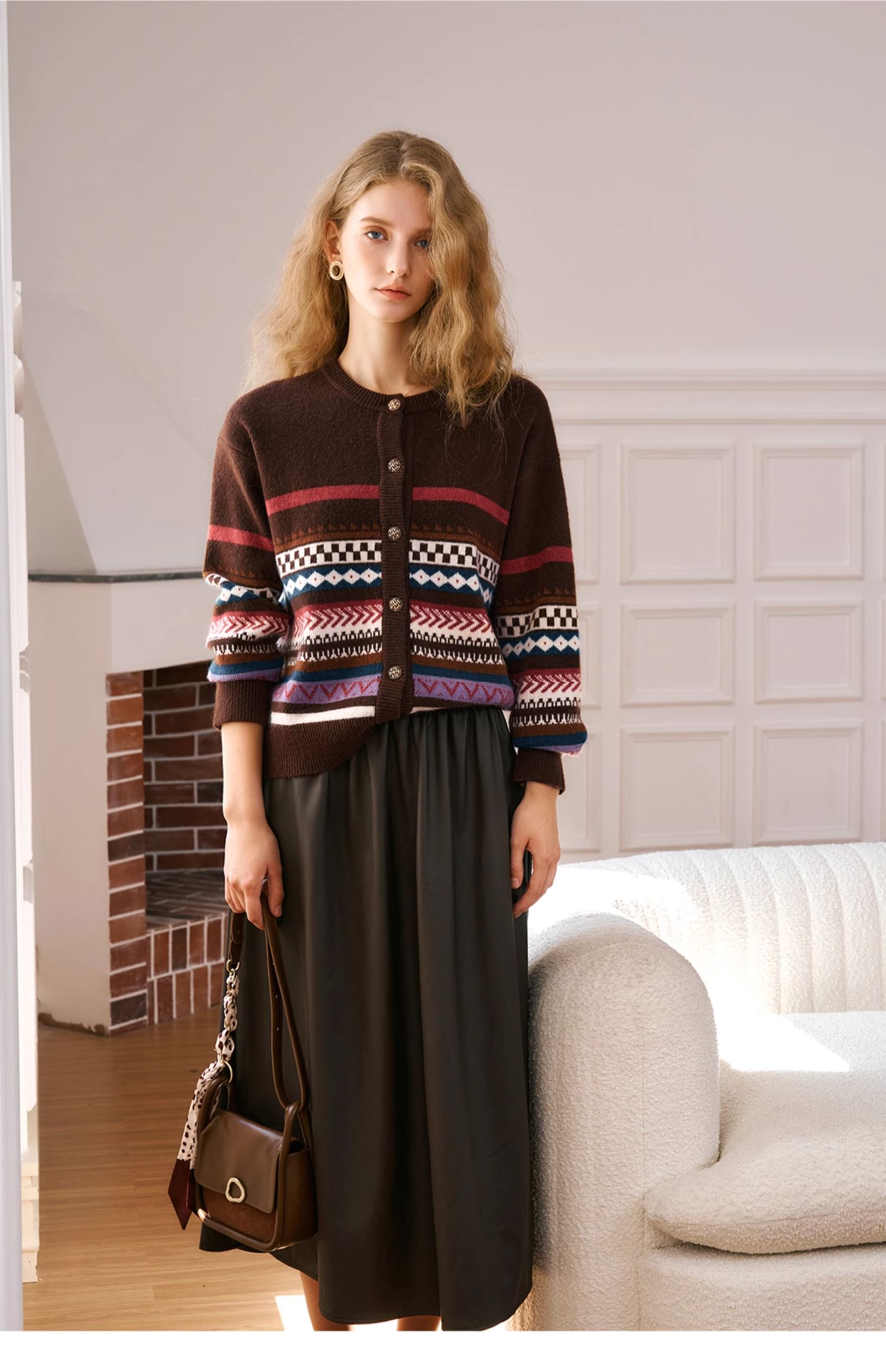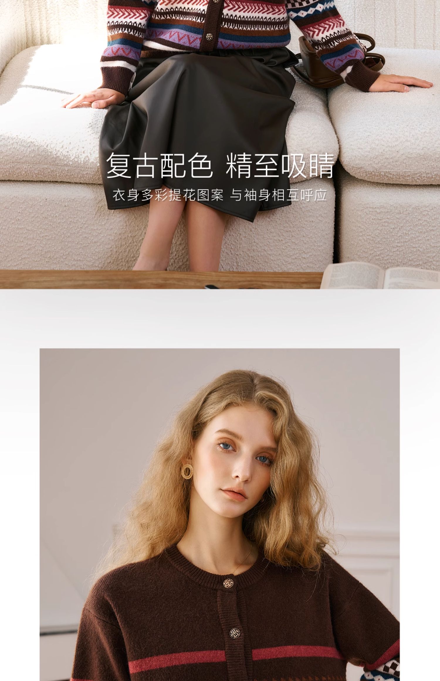 OLrain欧芮儿法式咖色毛衣女秋季2024年新款慵懒软糯提花针织开衫
