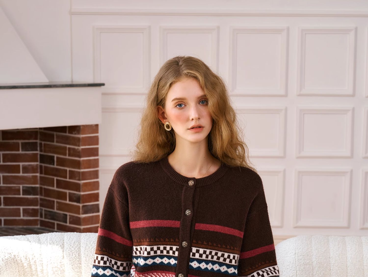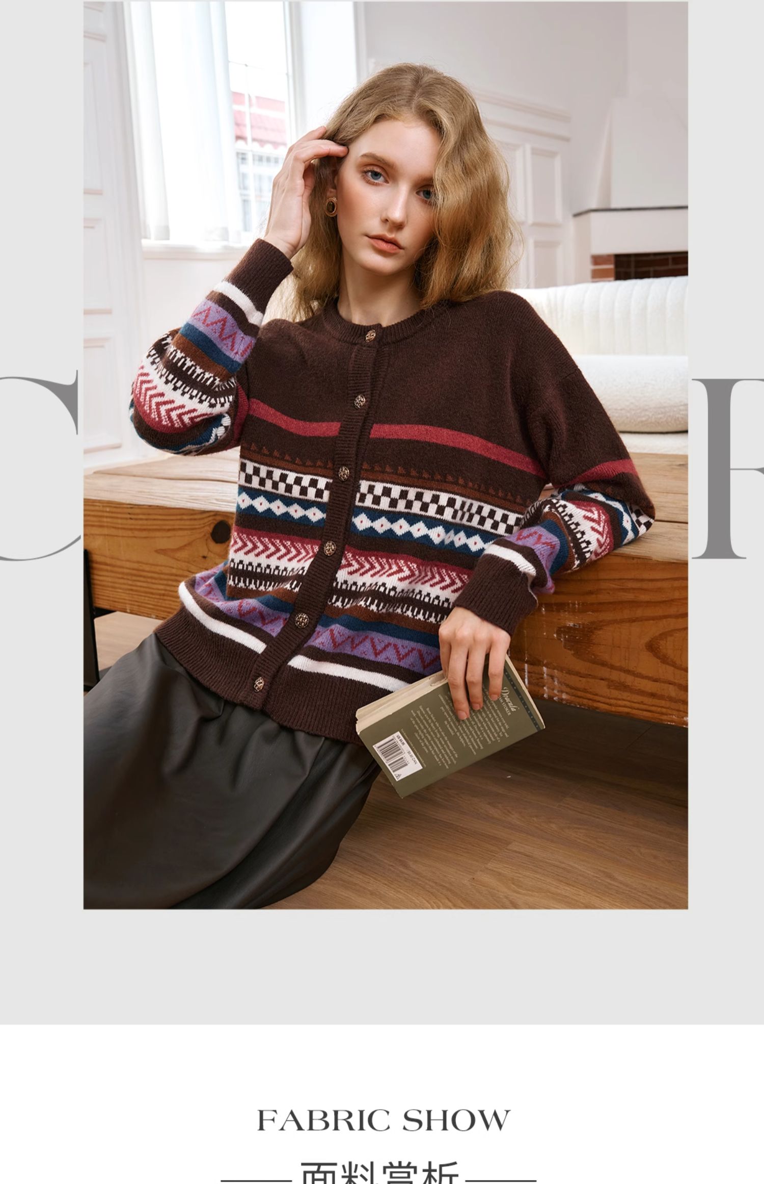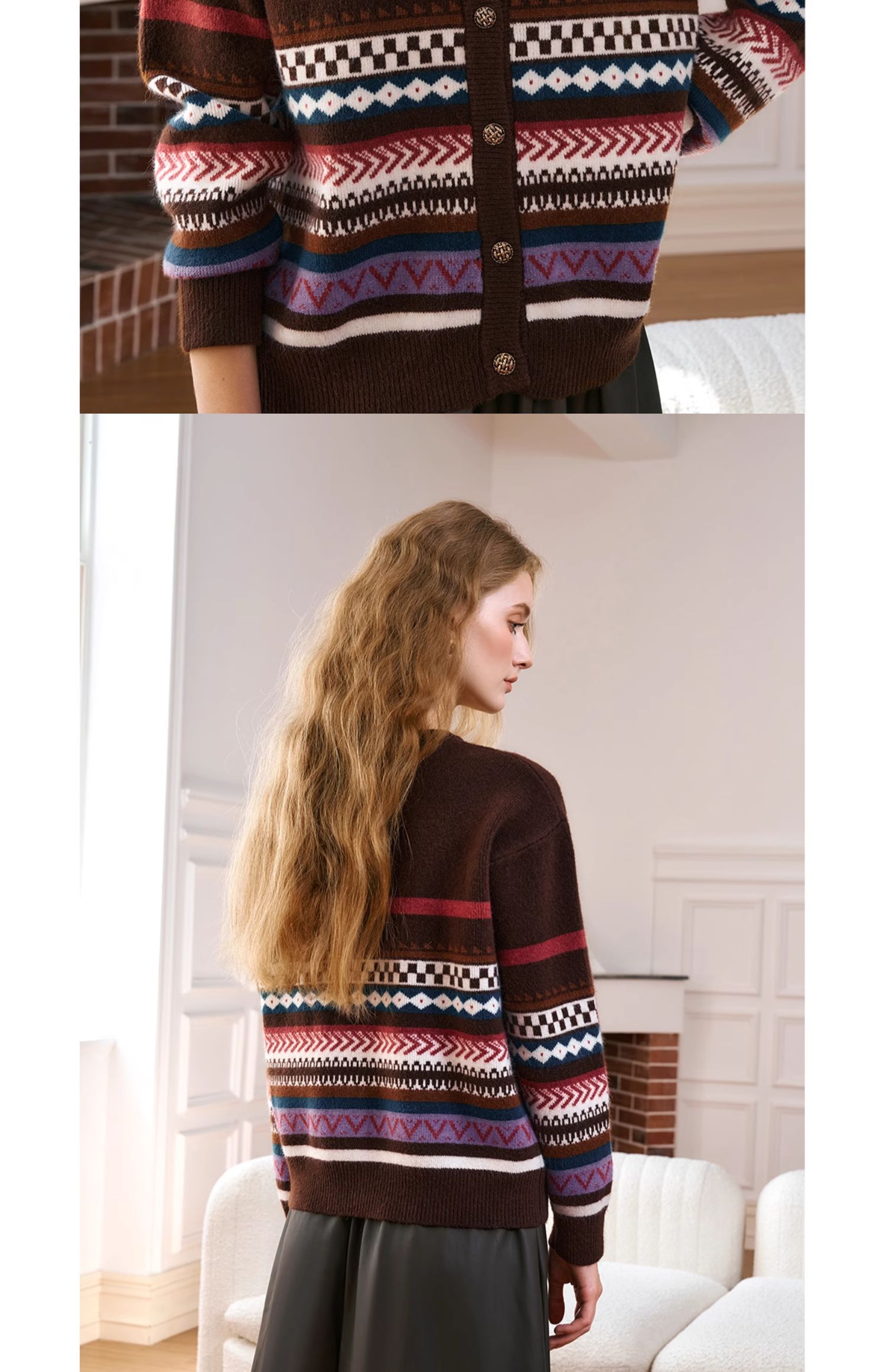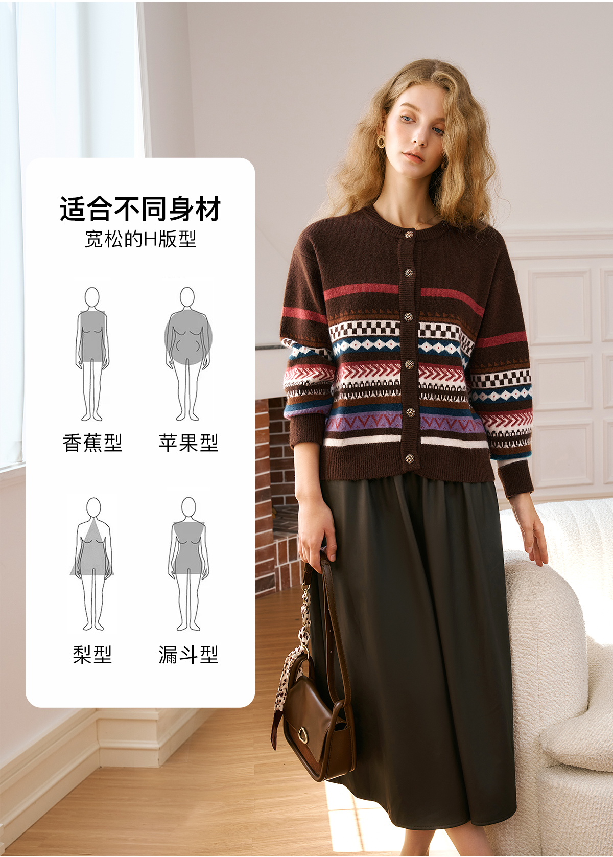 OLrain欧芮儿法式咖色毛衣女秋季2024年新款慵懒软糯提花针织开衫