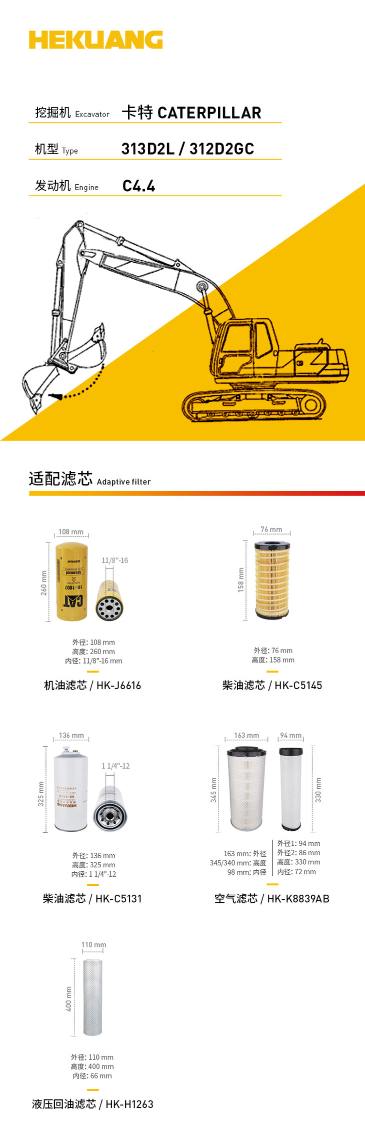 卡特313D2L/312D2GC(C4.4)挖掘机滤芯 机油柴油空气滤芯 液压油先导滤芯